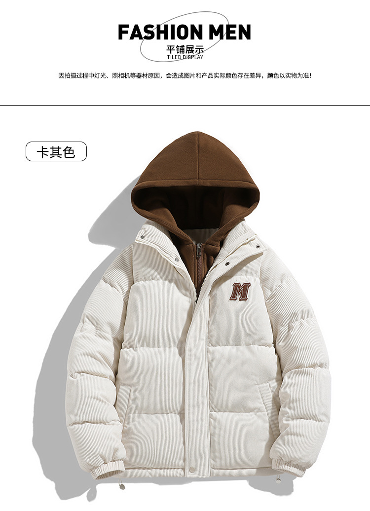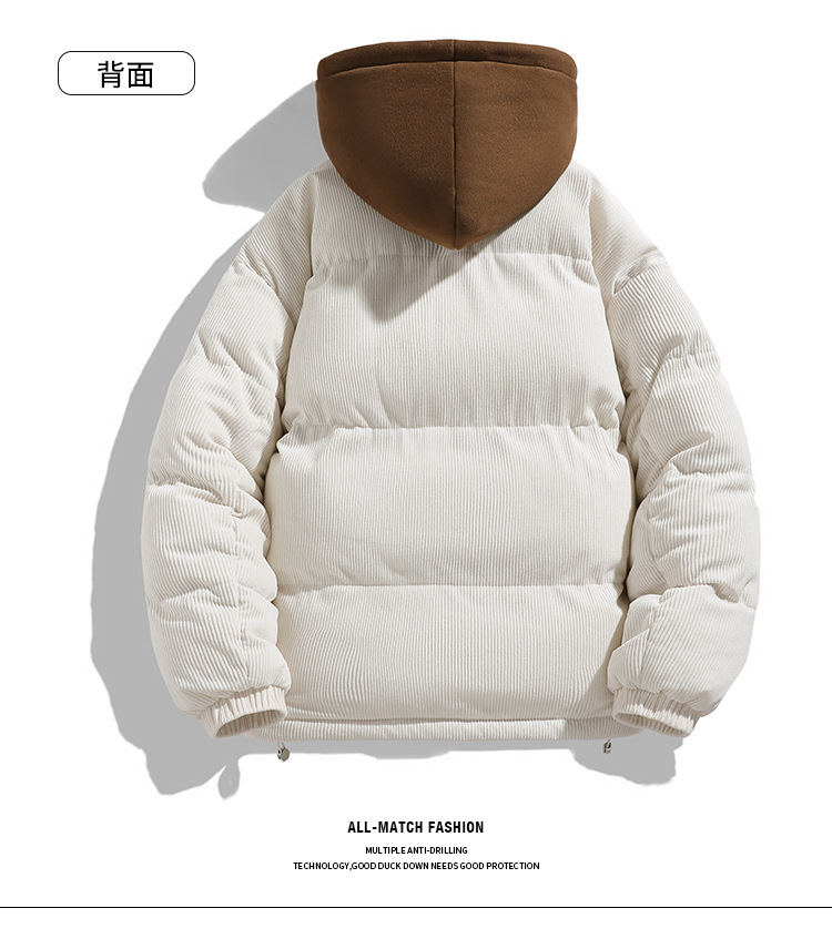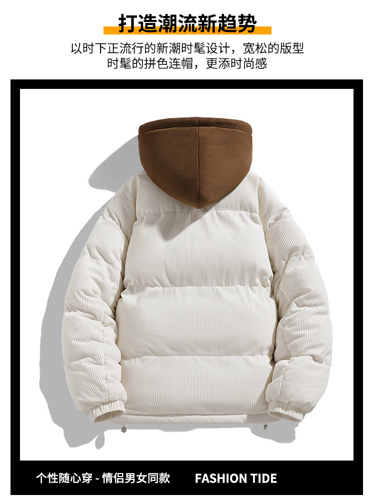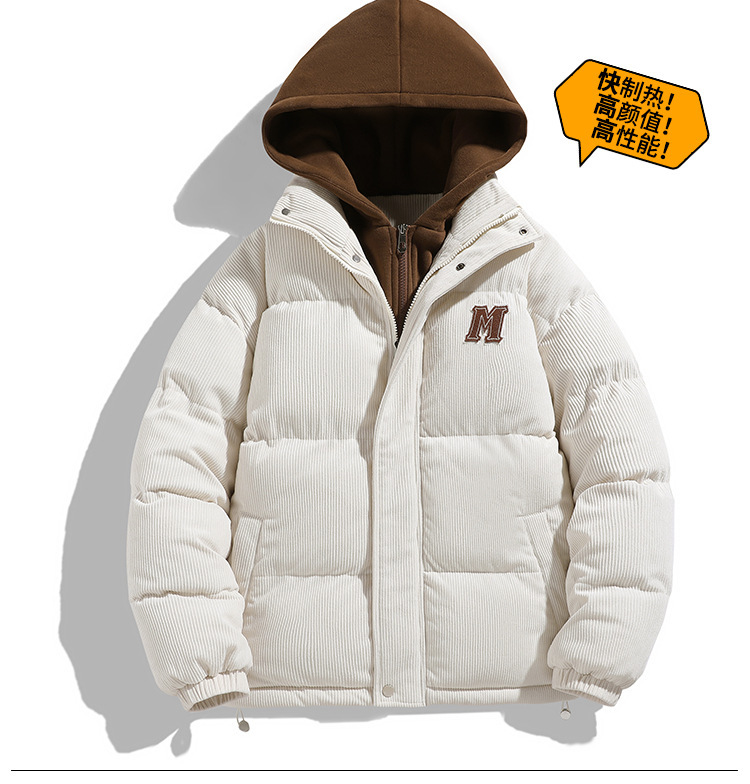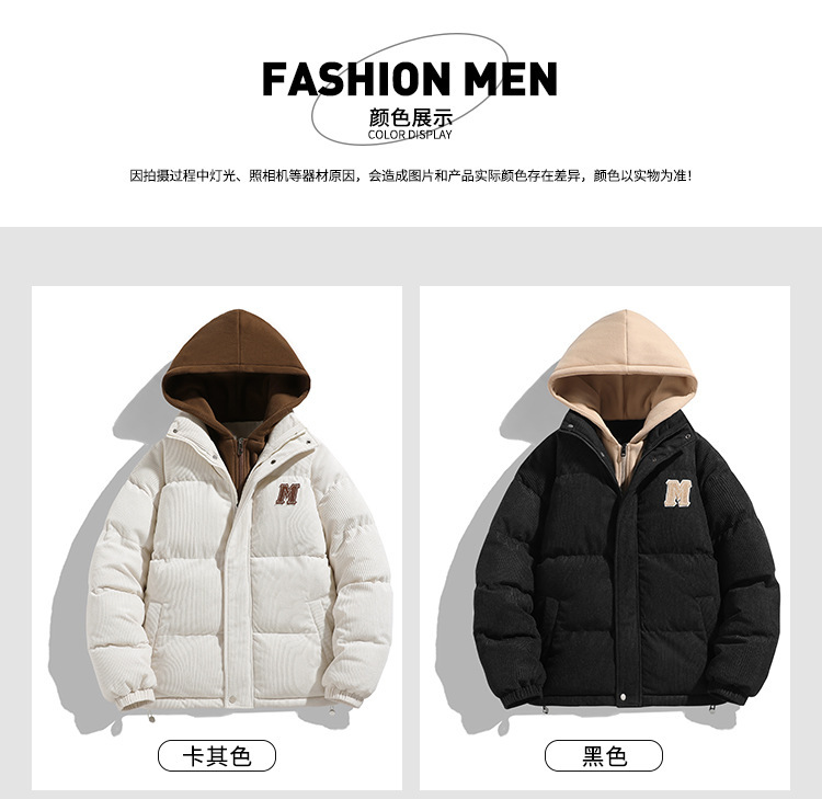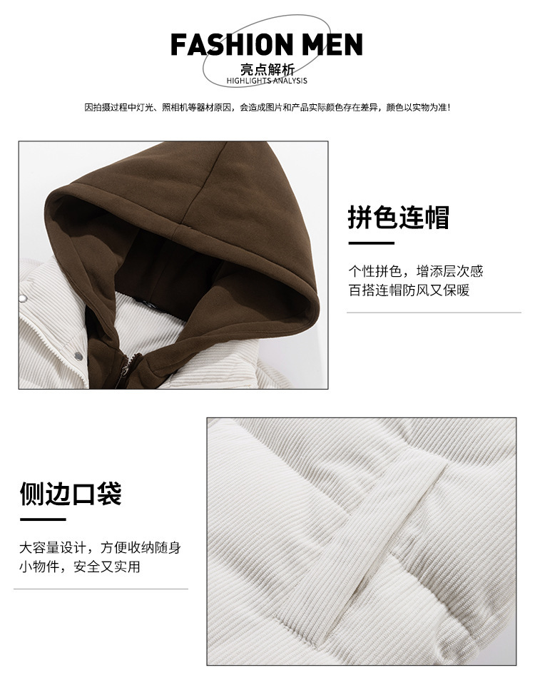 일본 겨울 후드면 패딩 재킷 남성용 두꺼운 따뜻한 짧은면 패딩 재킷 남성면 패딩 재킷 코듀로이 패션 브랜드 도시