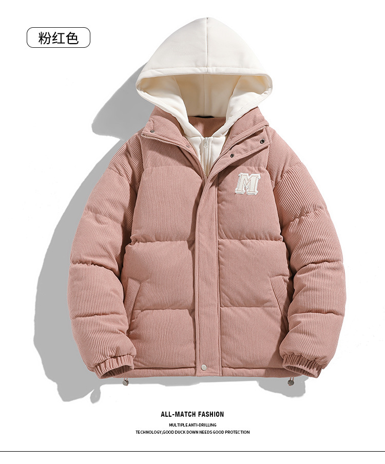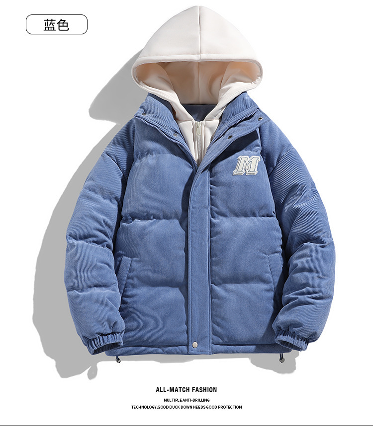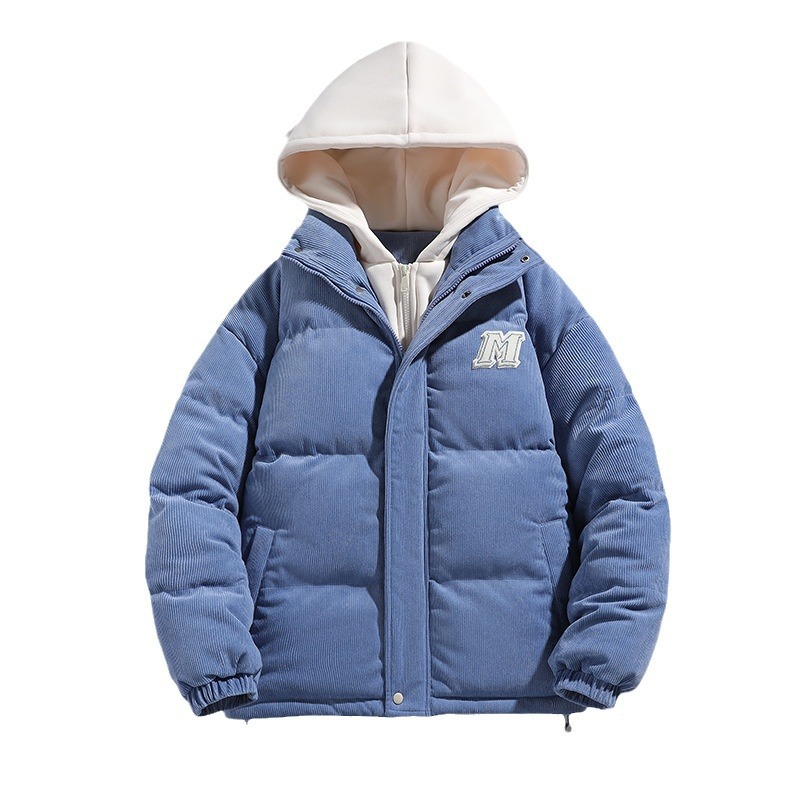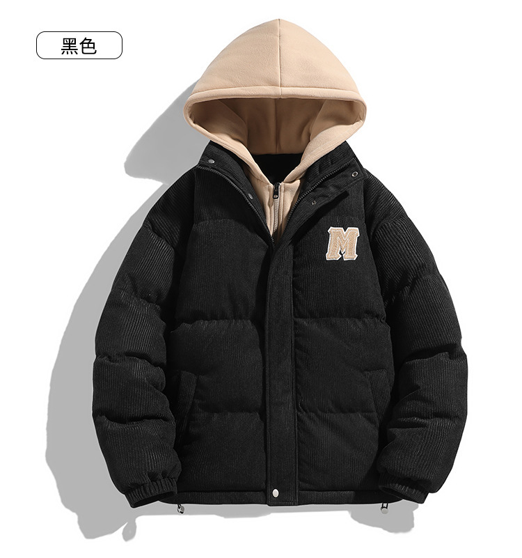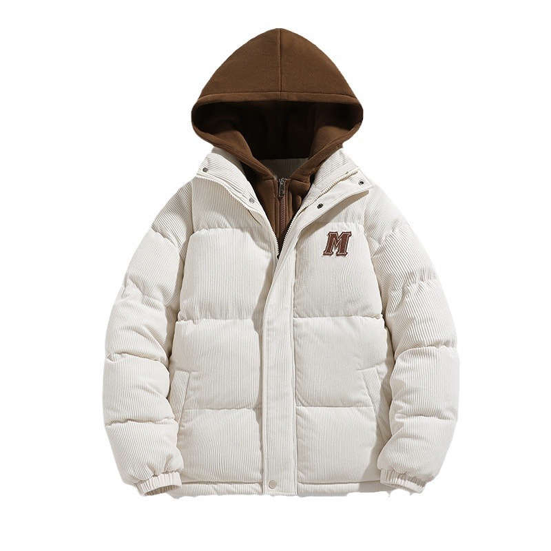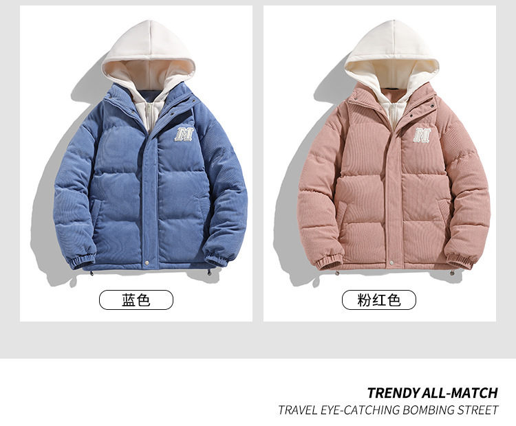 일본 겨울 후드면 패딩 재킷 남성용 두꺼운 따뜻한 짧은면 패딩 재킷 남성면 패딩 재킷 코듀로이 패션 브랜드 도시
