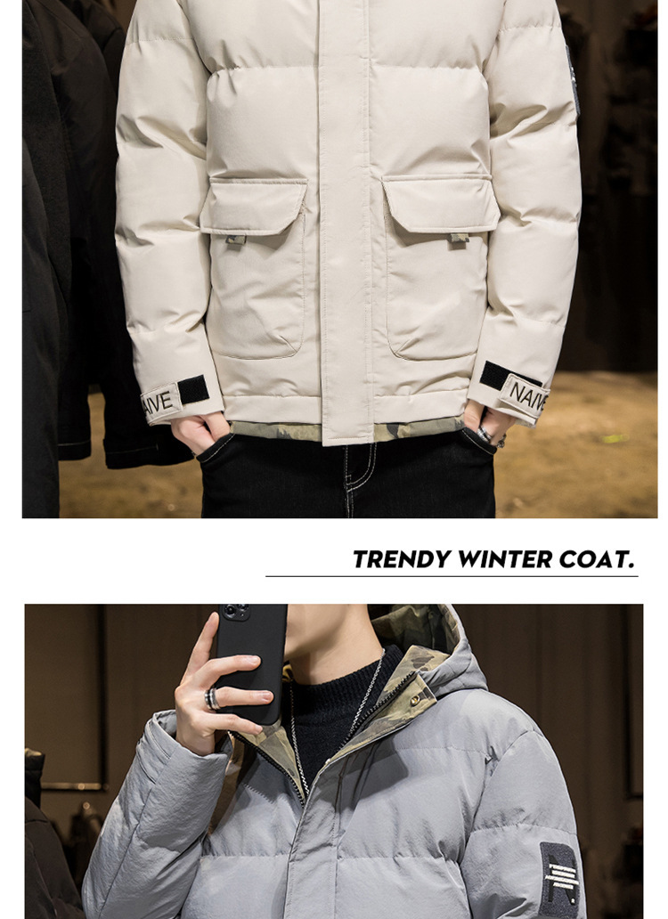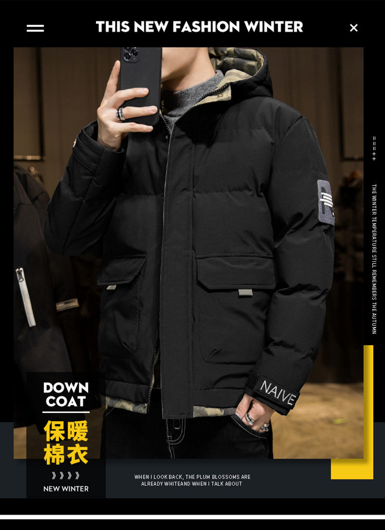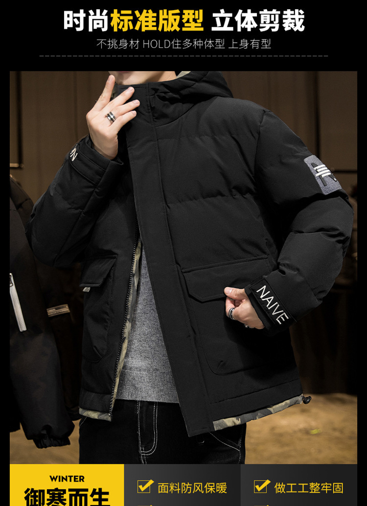 코튼 패딩 남성 2023 패션 새로운 한국 스타일의 트렌디 한 겨울 코튼 패딩 재킷 남성 코트 잘 생긴 패딩 겨울 의류