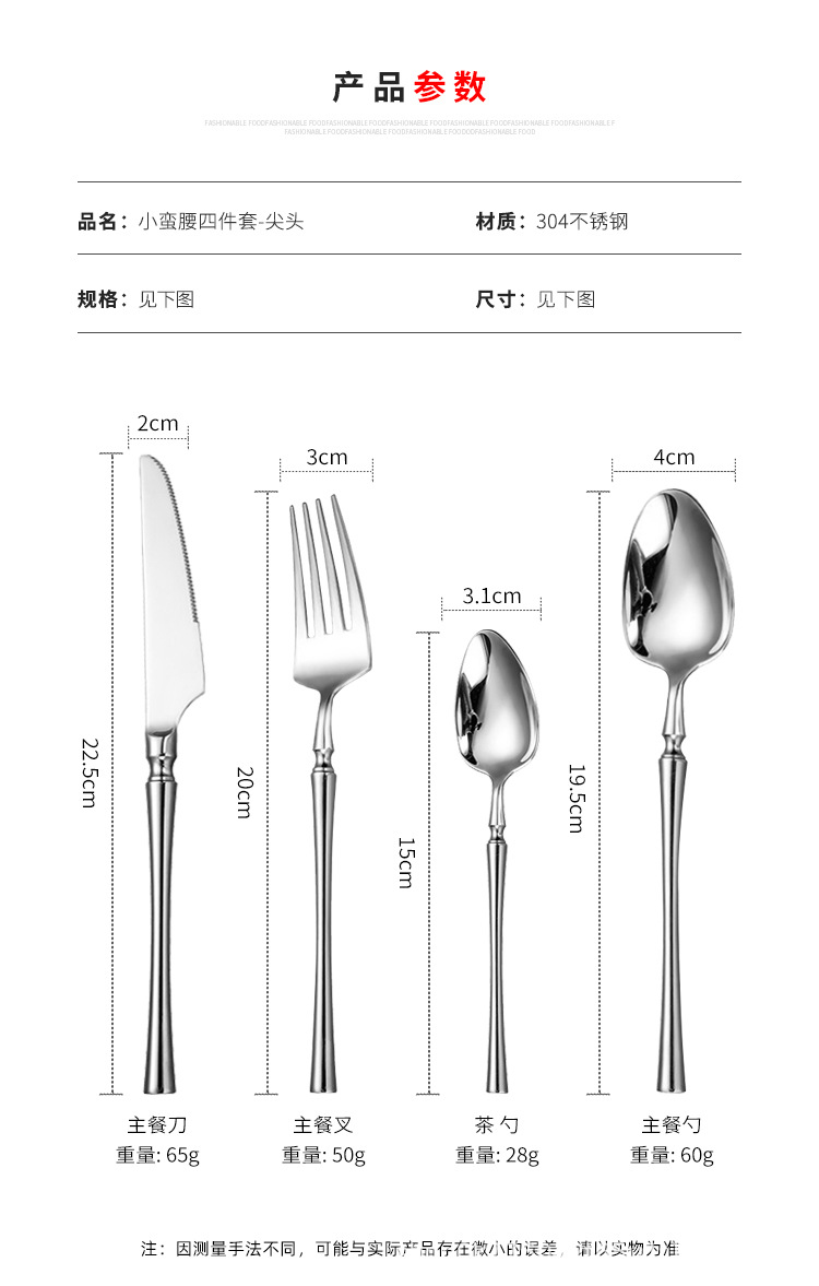 가벼운 럭셔리 304 스테인레스 스틸 식기 작은 허리 칼, 포크 및 스푼 4 피스 세트 하이 엔드 광택 매트 서양식 식기 세트