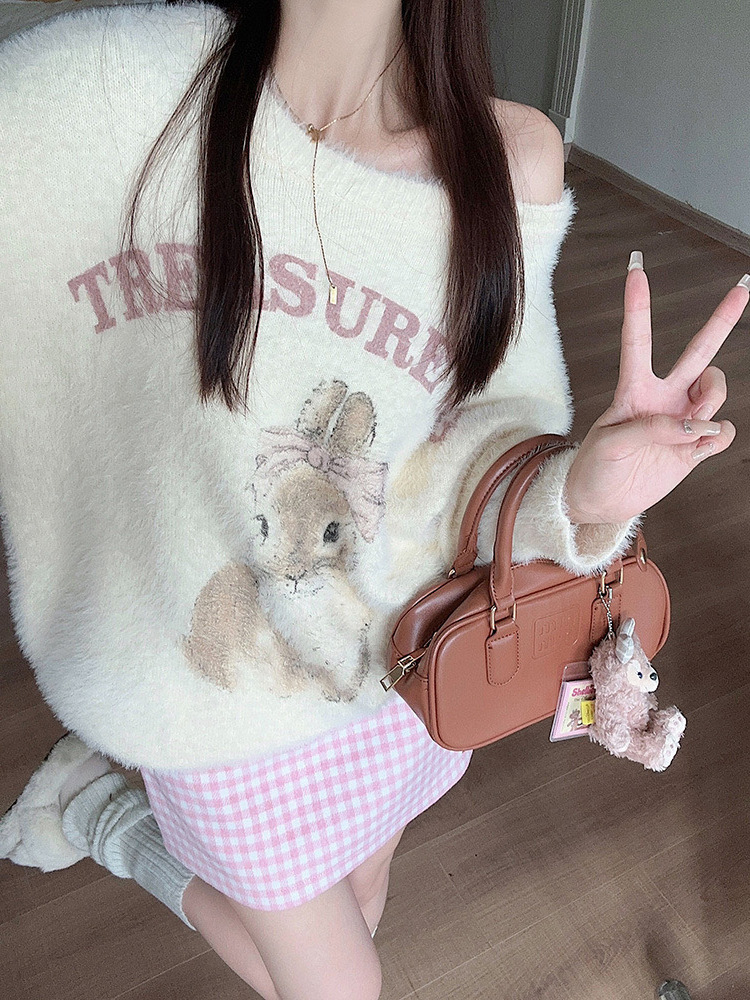 2024 가을과 겨울 새로운 모조 밍크 양털 인쇄 느슨한 풀오버 스웨터 여성 탑 소프트 왁스 스타일베이스 스웨터