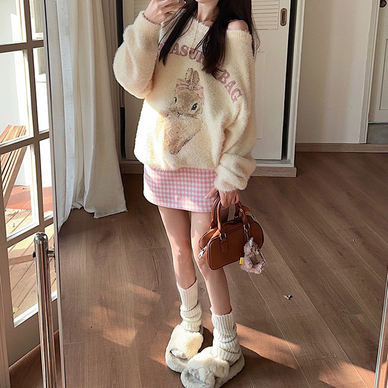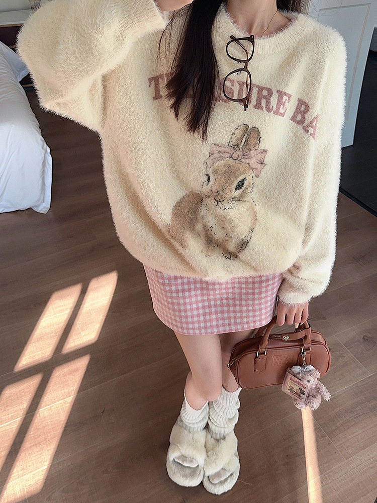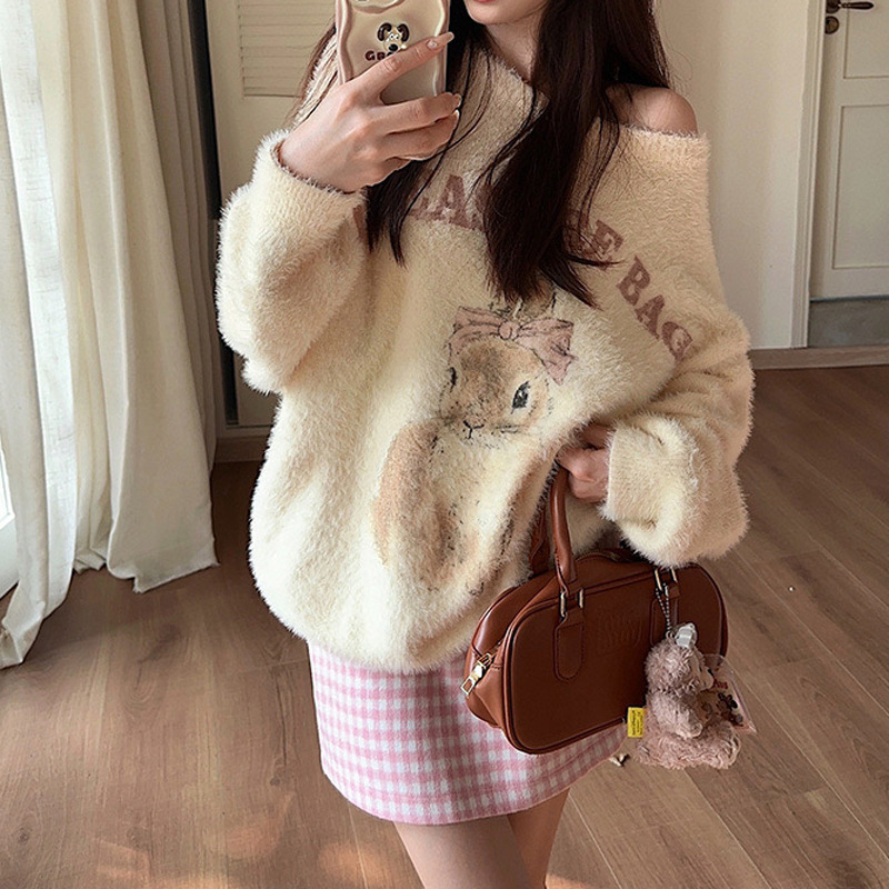 2024 가을과 겨울 새로운 모조 밍크 양털 인쇄 느슨한 풀오버 스웨터 여성 탑 소프트 왁스 스타일베이스 스웨터스토어 가기