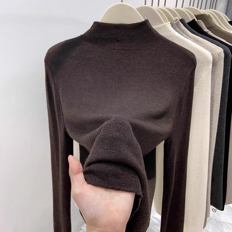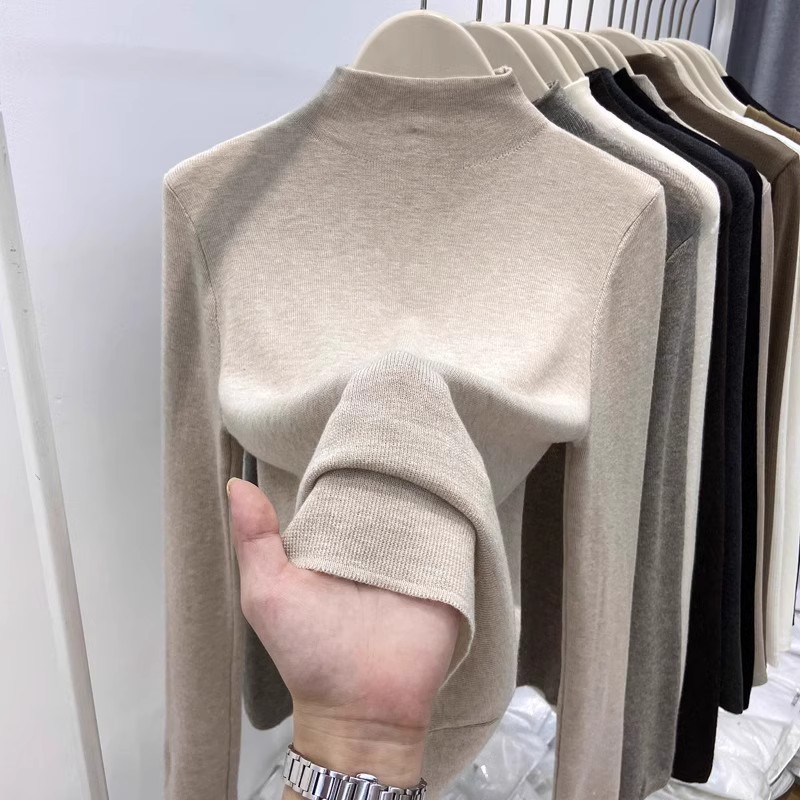 반 높이 칼라 봄과 가을 부드러운 왁스 얇은베이스 셔츠 여성의 2025 새로운 슬림 핏 서양식 미드 넥 스웨터 이너 탑