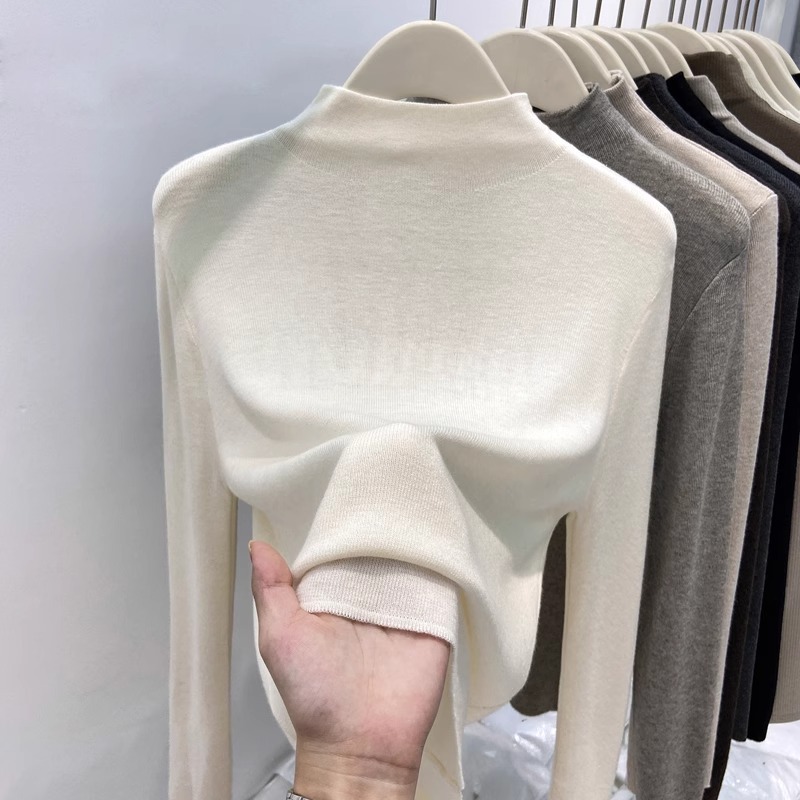 반 높이 칼라 봄과 가을 부드러운 왁스 얇은베이스 셔츠 여성의 2025 새로운 슬림 핏 서양식 미드 넥 스웨터 이너 탑스토어 가기