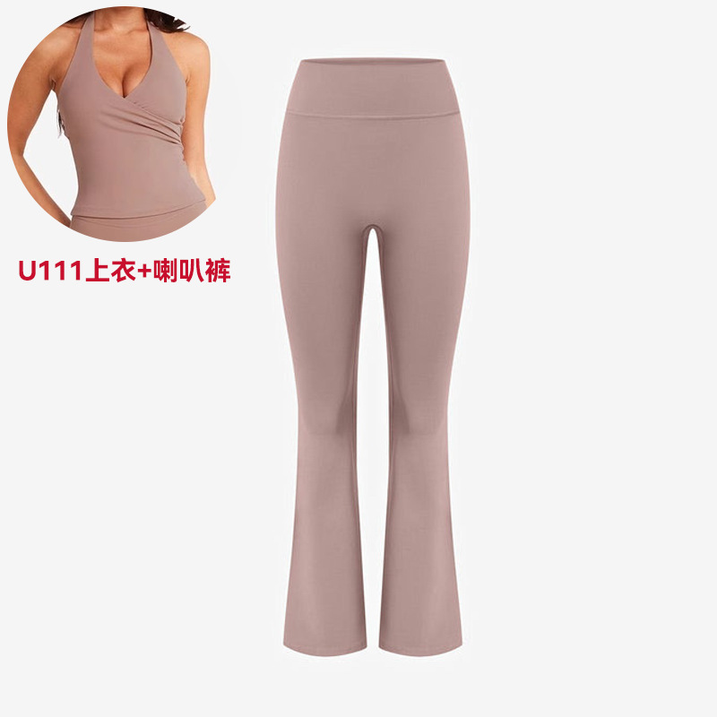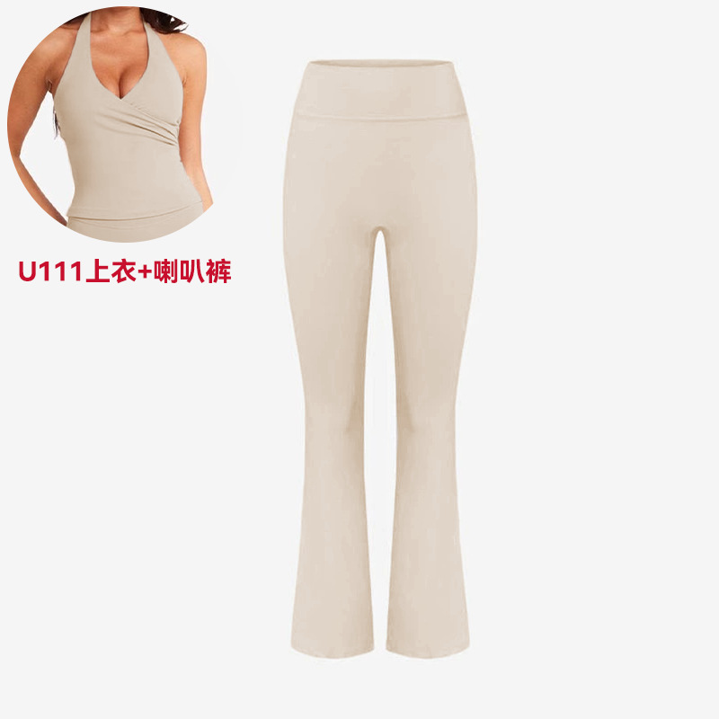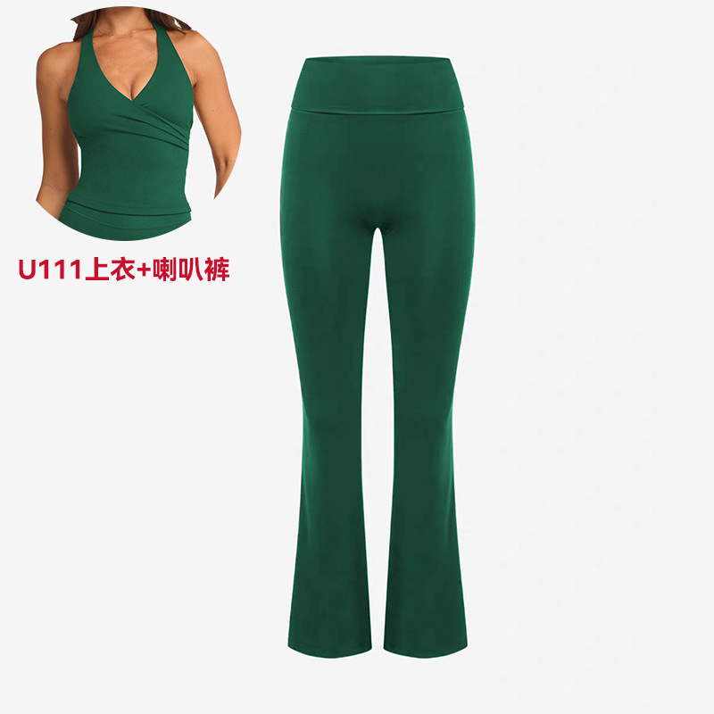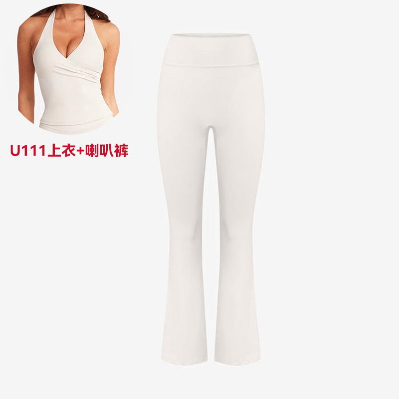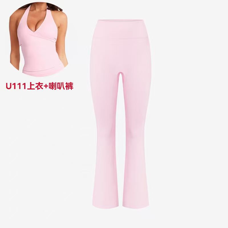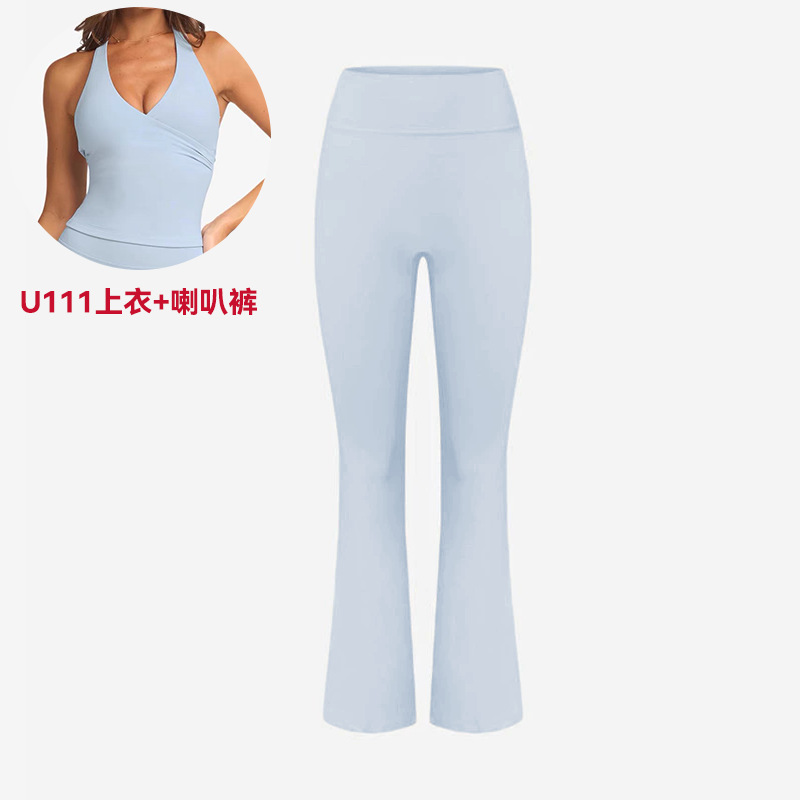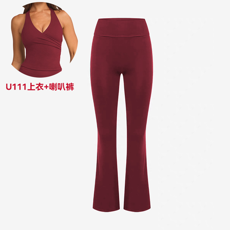 브이넥 크로스넥 스포츠 탱크탑 (가슴 패드 포함) 요가복 세트 여성용 고급 요가 플레어 팬츠