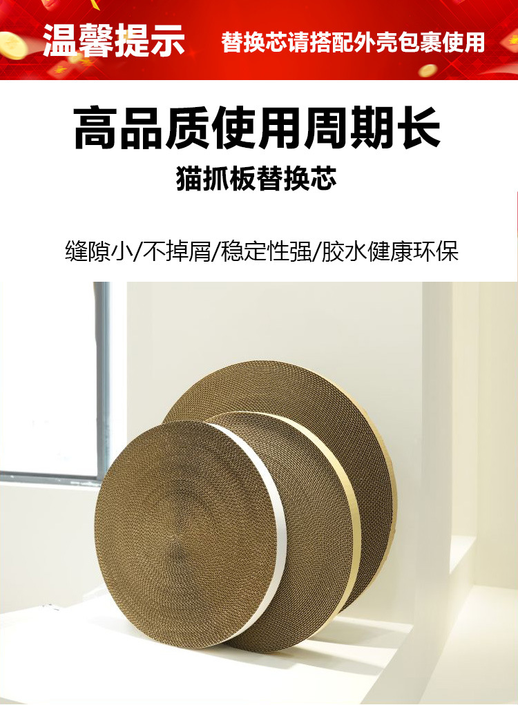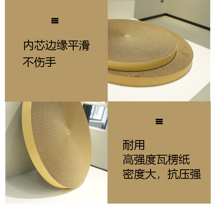 공장 재고 도매 고양이 스크래치 보드 교체 코어 둥근 고양이 둥지 하이 퀄리티 골판지 긁힘 방지 애완 동물 용품스토어 가기