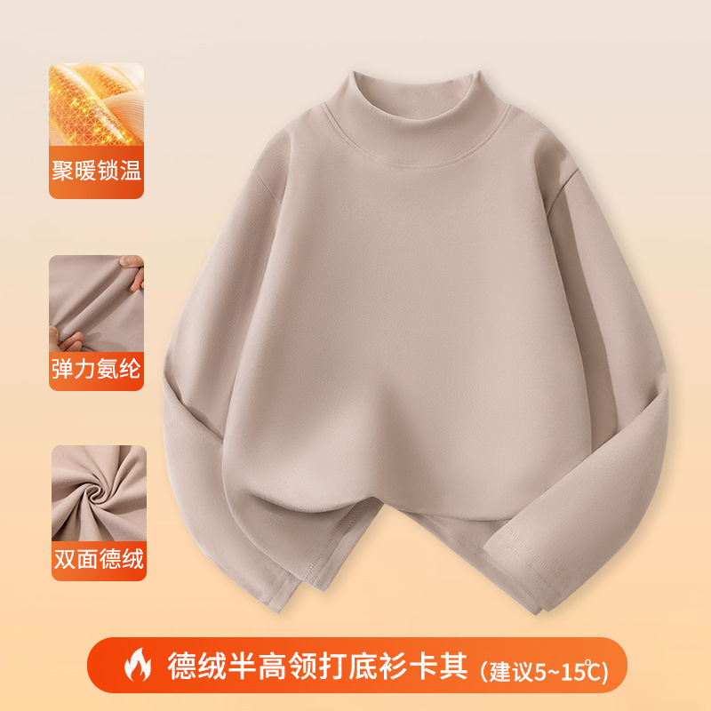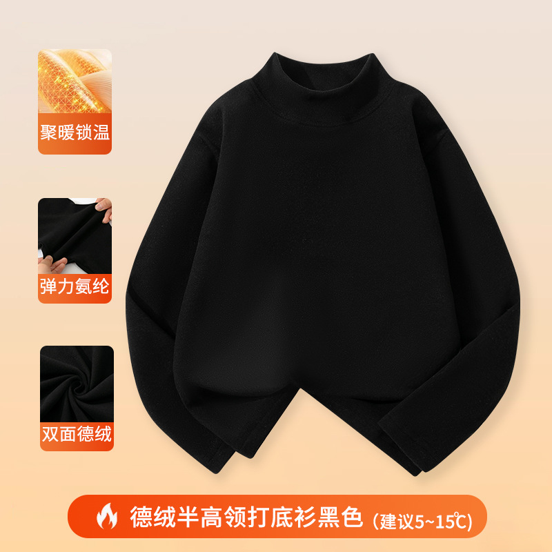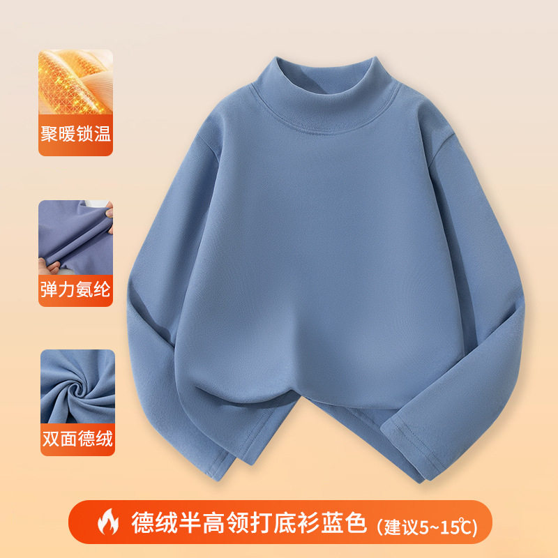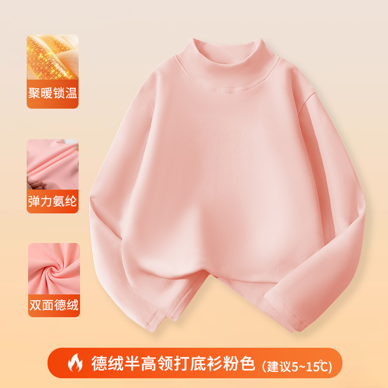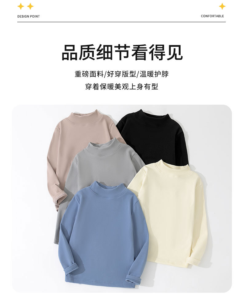 도매 아동복 소년 드 벨벳 하프 하이 칼라 바닥 셔츠 어린이 가을과 겨울 새로운 소녀 단색 따뜻한 옷 긴 소매