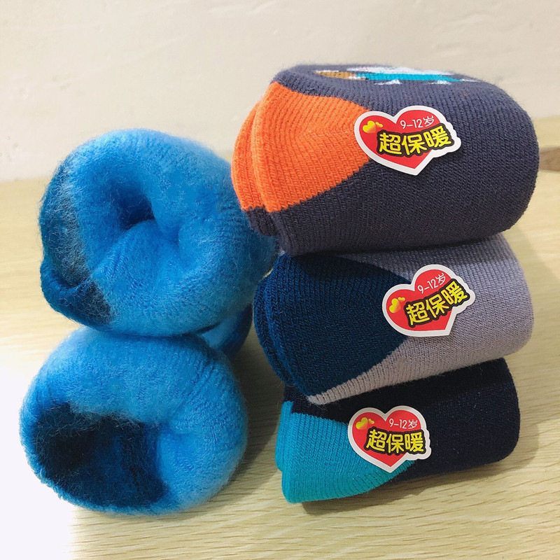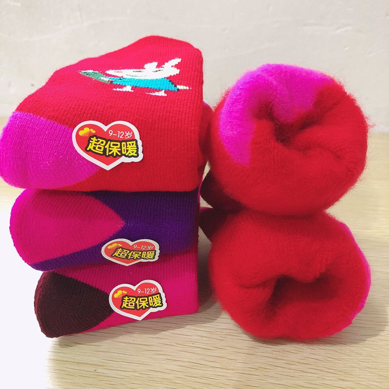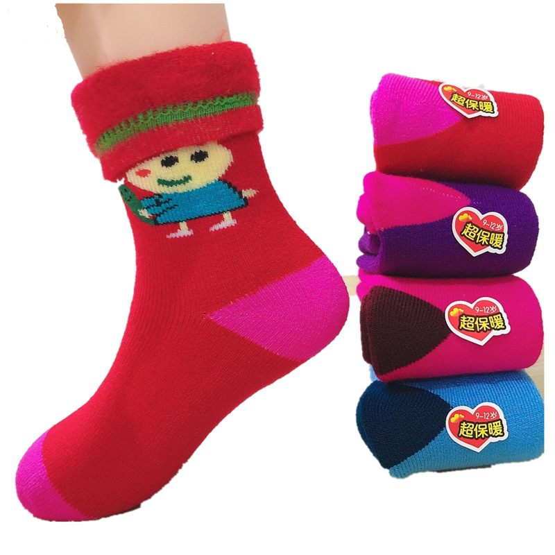 새로운 겨울 슈퍼 두꺼운 캐시미어 양말 남성과 여성의 어린이 만화 튜브 양말 자체 가열 벨벳 패딩 겨울 감기스토어 가기