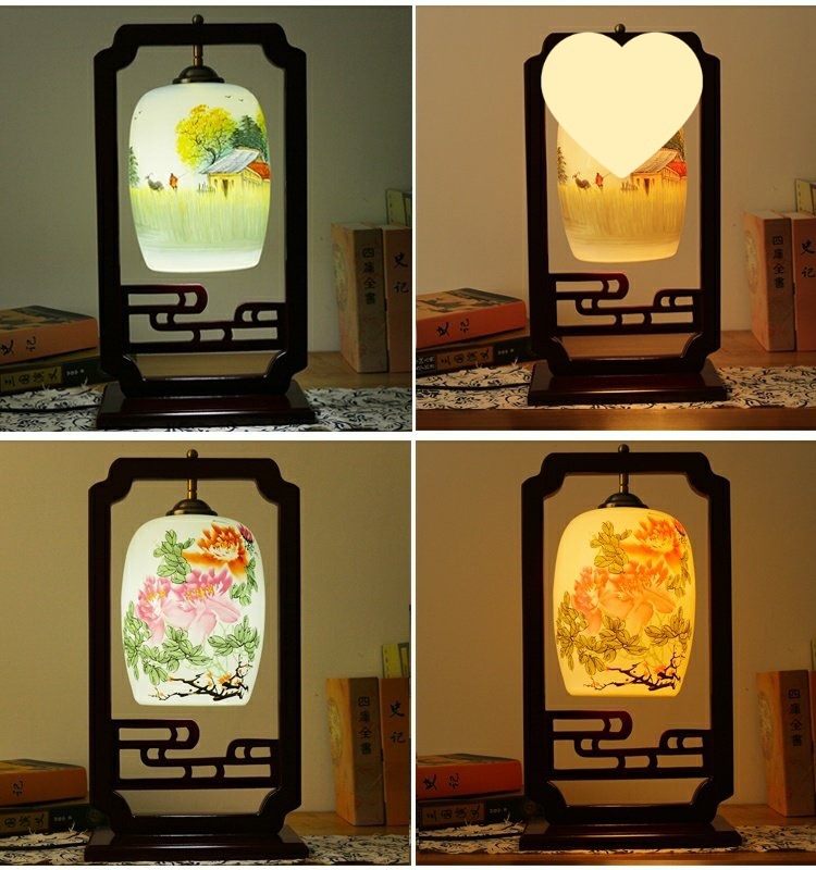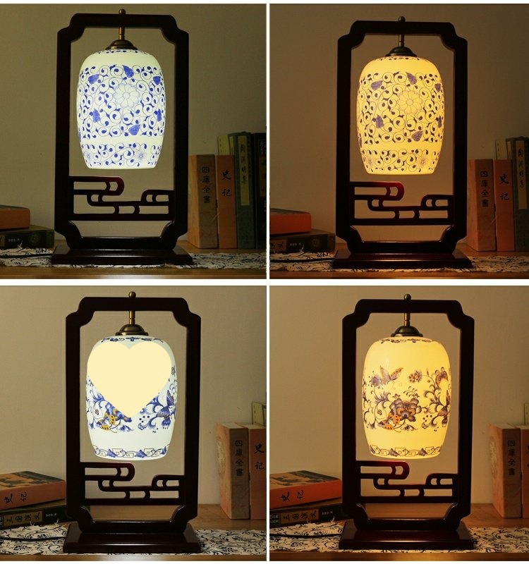 Jingdezhen 중국 창조적 인 얇은 타이어 세라믹 램프 침실 연구 거실 다이닝 룸 침실 옆 웨딩 장식 테이블 램프스토어 가기