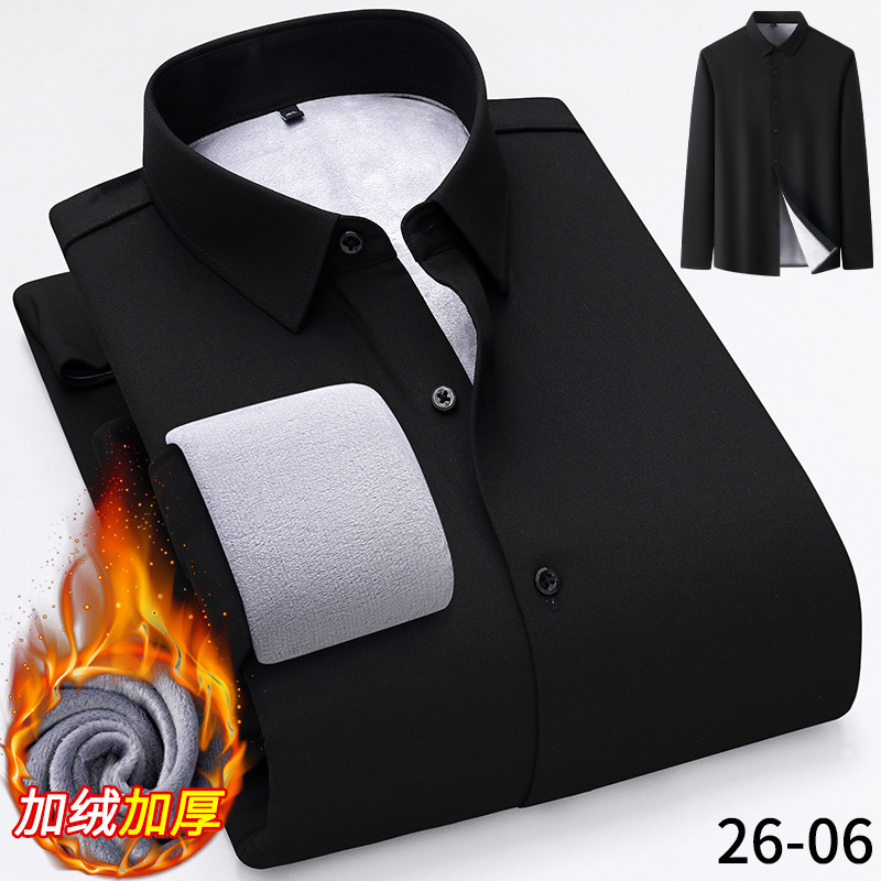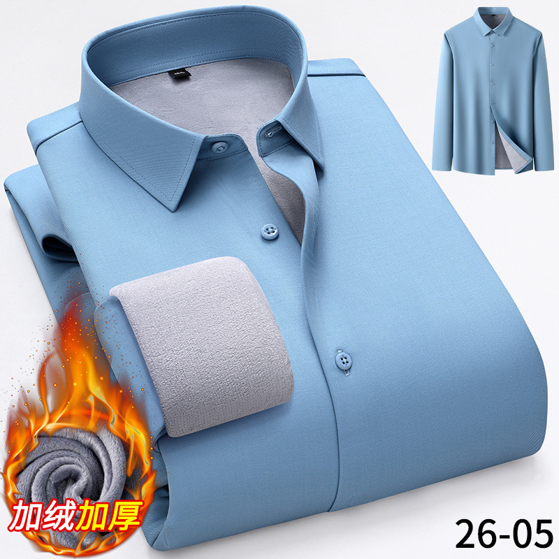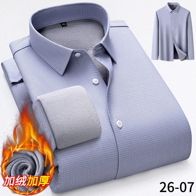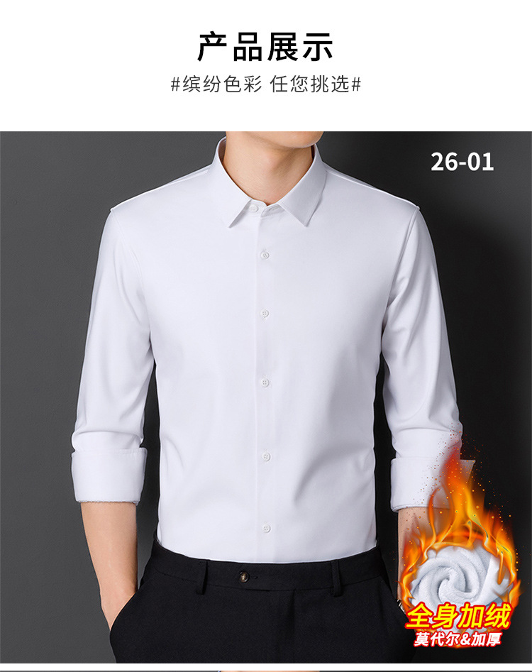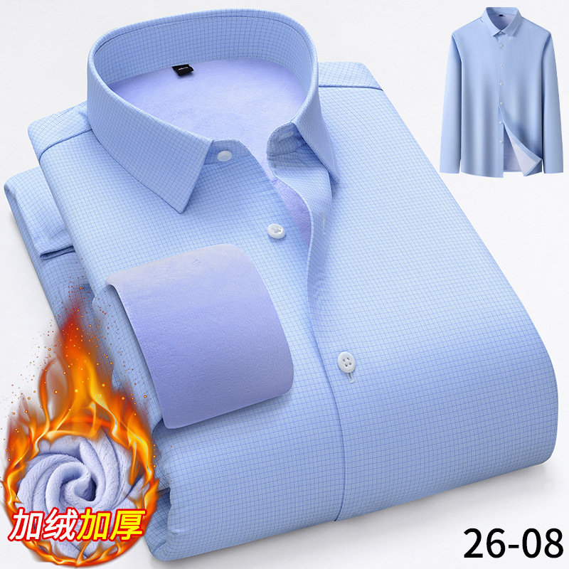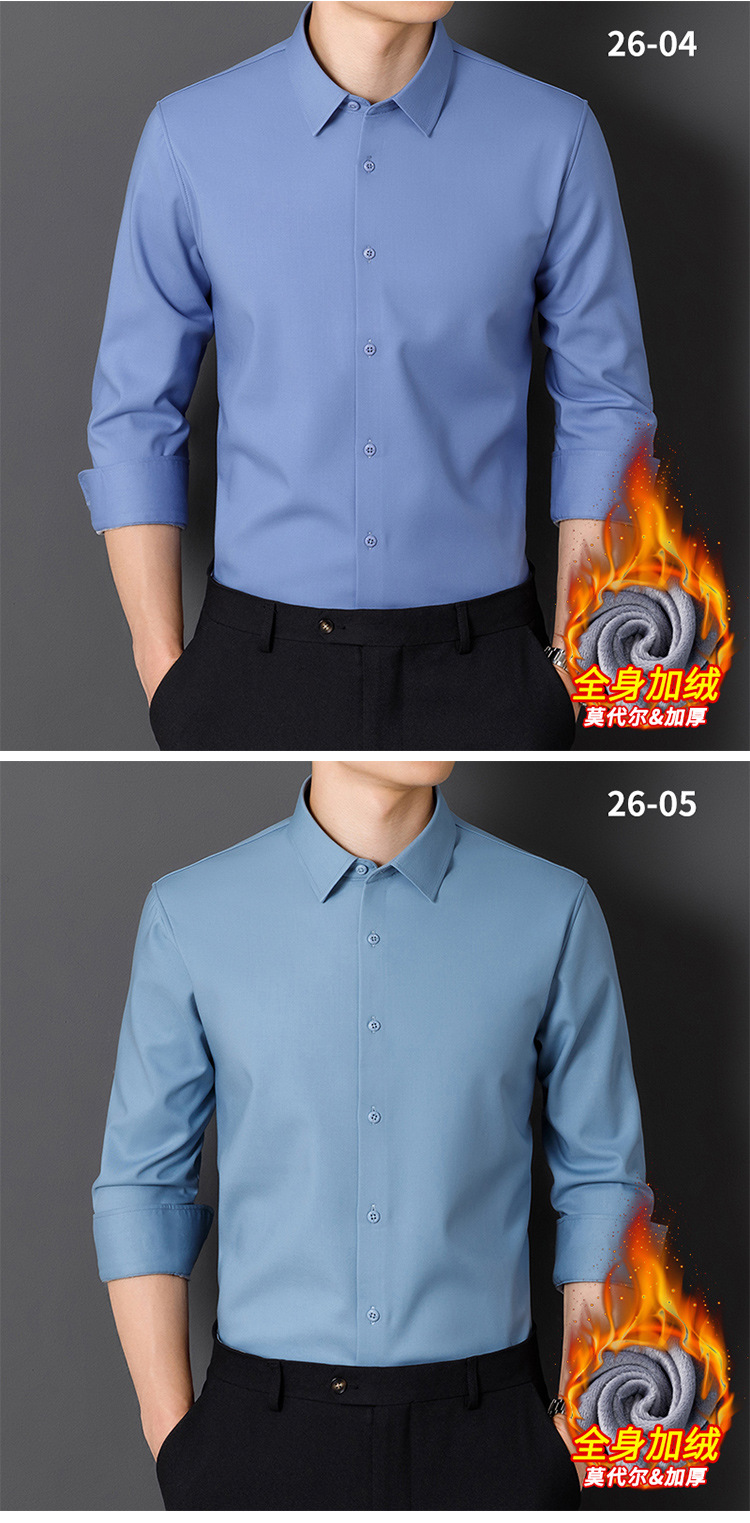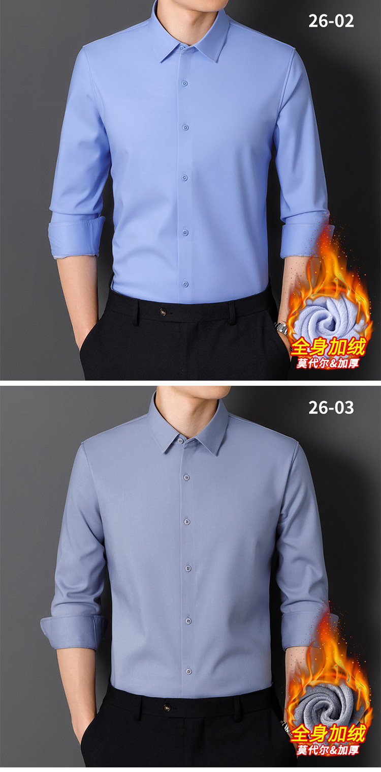 모달 남성용 열 셔츠 긴팔 두꺼운 비즈니스 다림질 전문 남성 하이 엔드 스트라이프 기모 셔츠