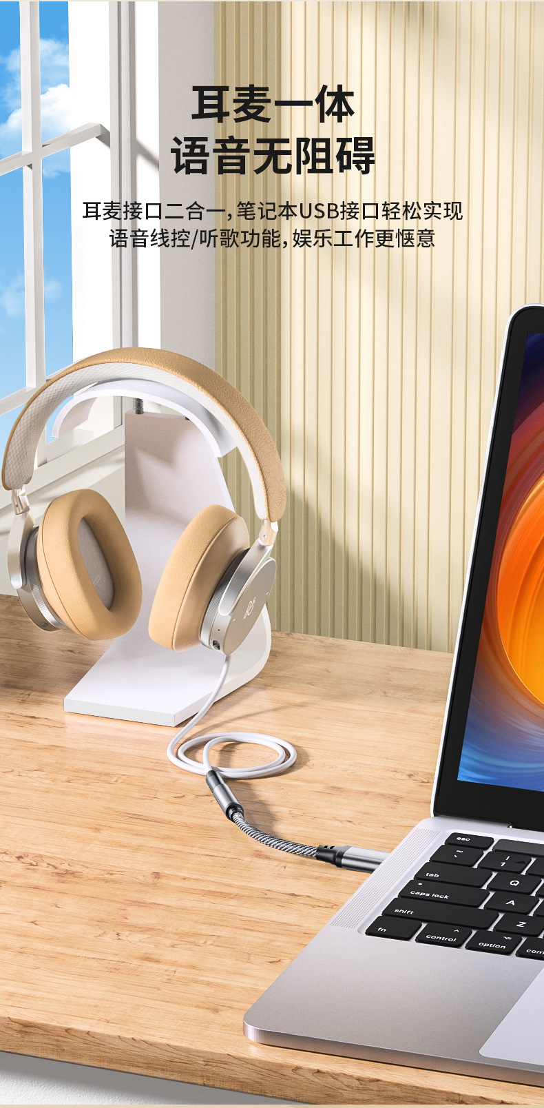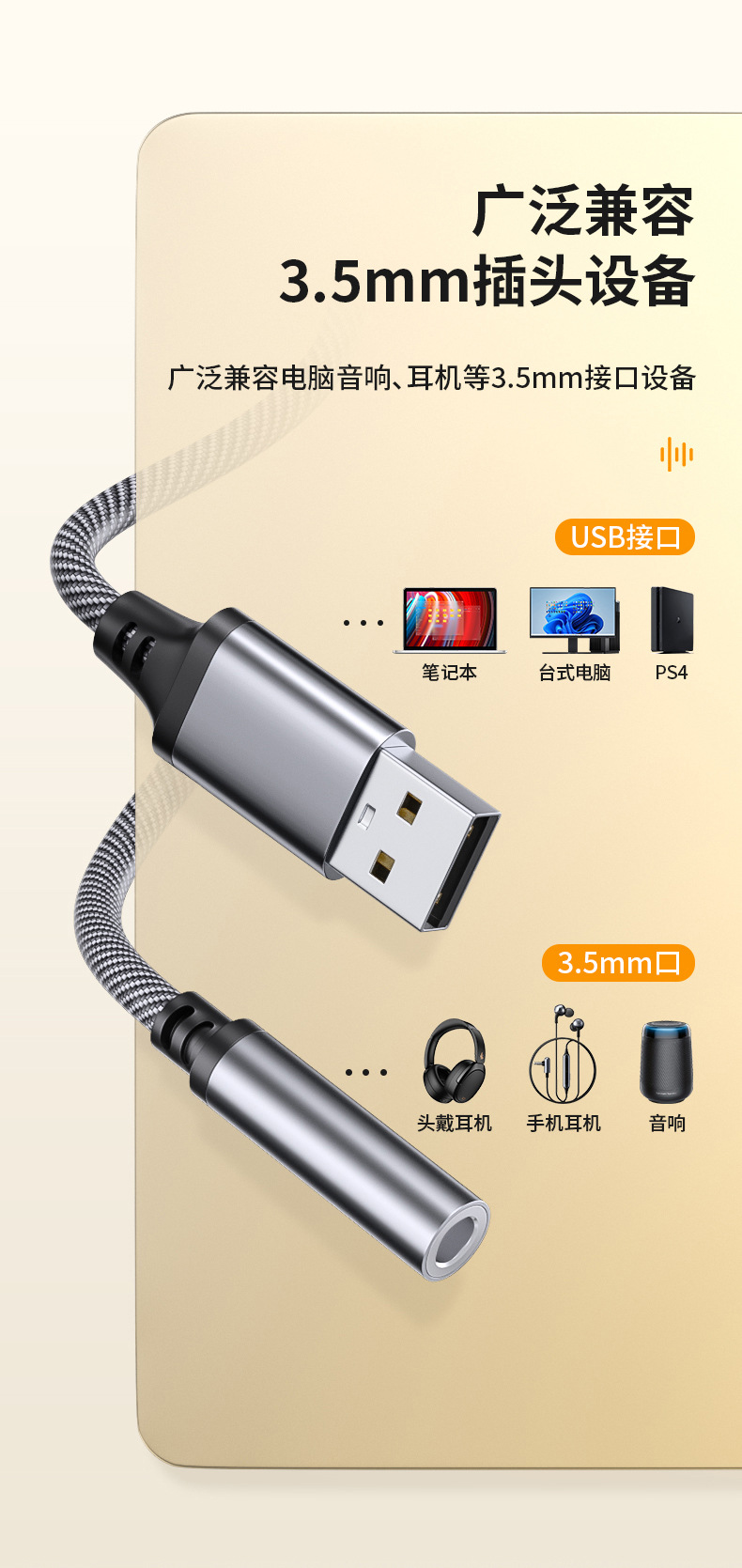 국경 간 USB 오디오 케이블 어댑터 디지털 오디오 헤드폰 케이블 변환기 케이블 컴퓨터에 연결하여 노래 듣기 라인 제어 라이브 방송스토어 가기