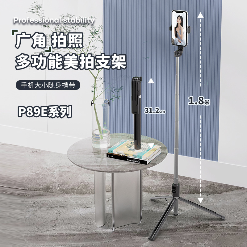 국경 간 폭발 휴대 전화 셀카 스틱 재고 네 다리 라이브 방송 스탠드 카메라 아티팩트 P89E 휴대 전화 셀카 스틱스토어 가기