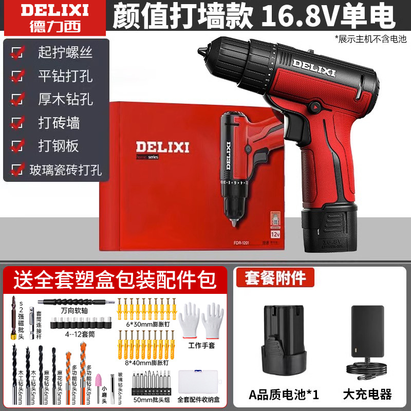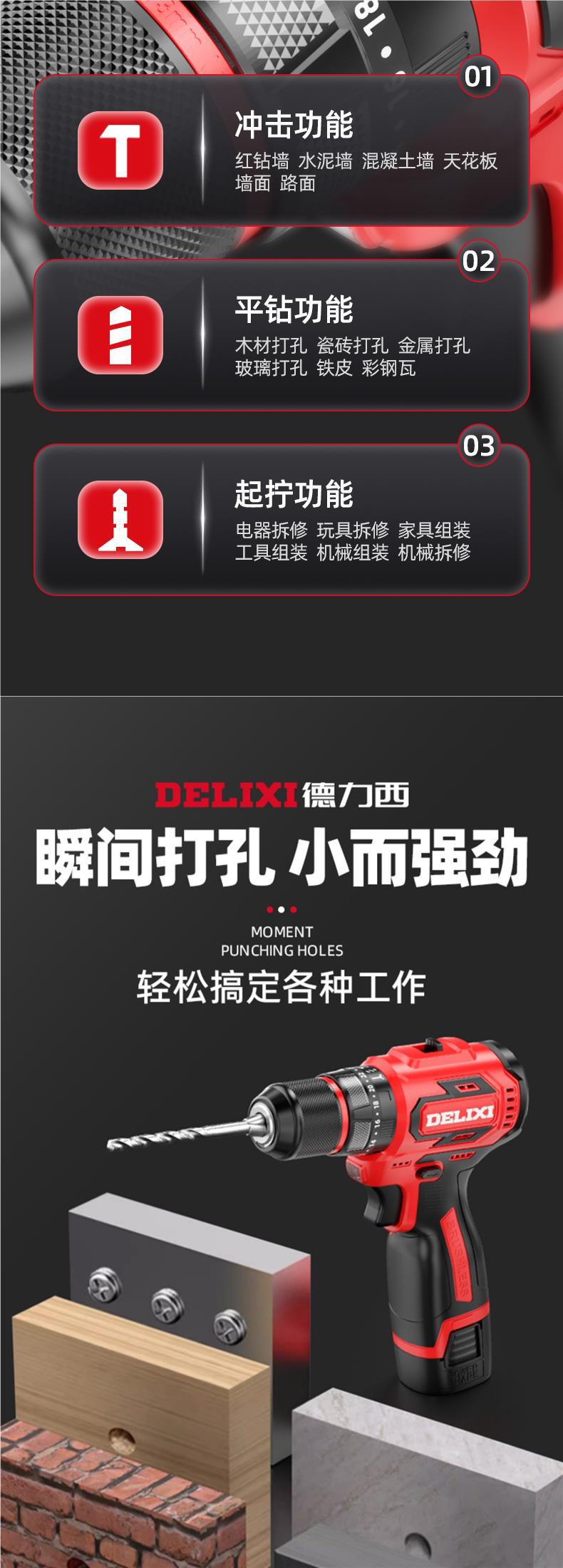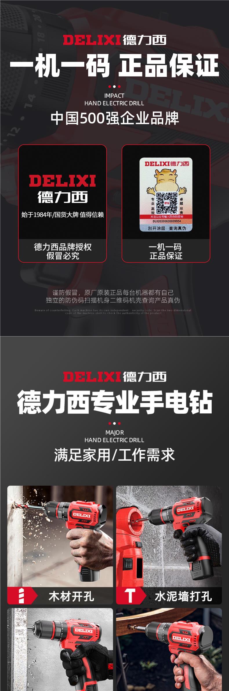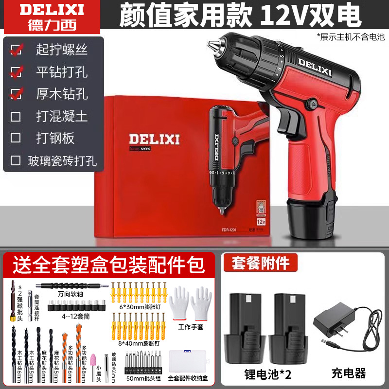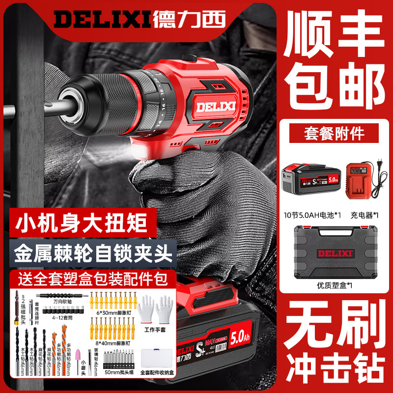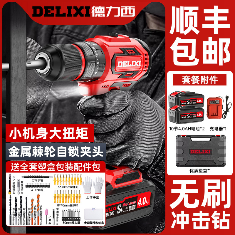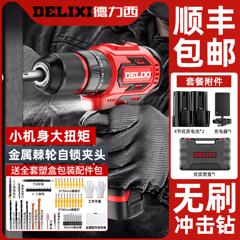 Delixi 핸드 전기 드릴 손 전기 드라이버 총 도구 충격 드릴 가정용 충전식 브러시리스 리튬 배터리 펀치스토어 가기