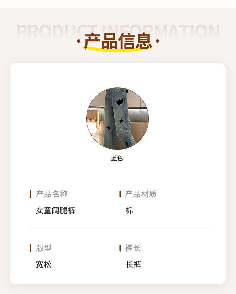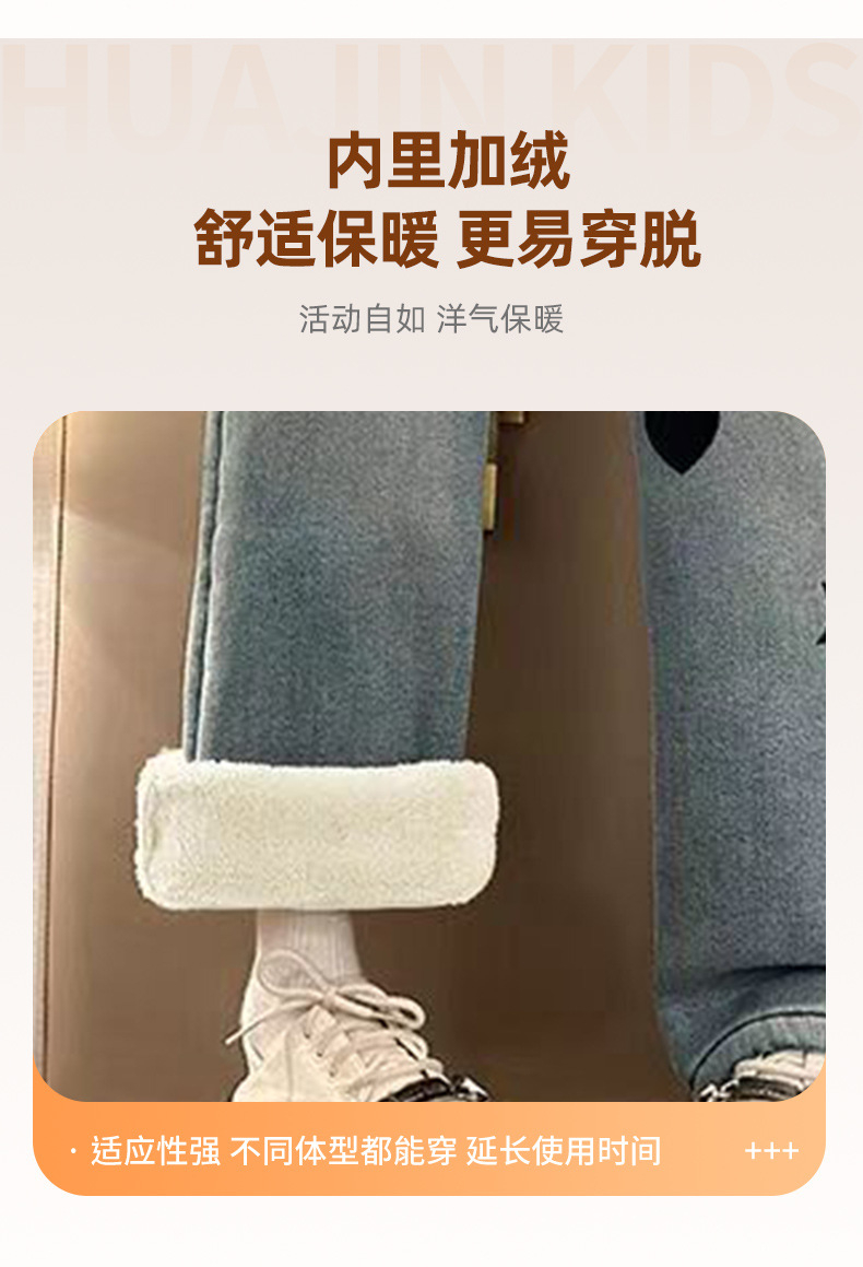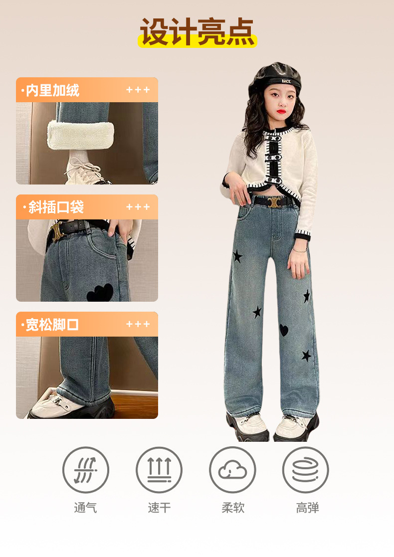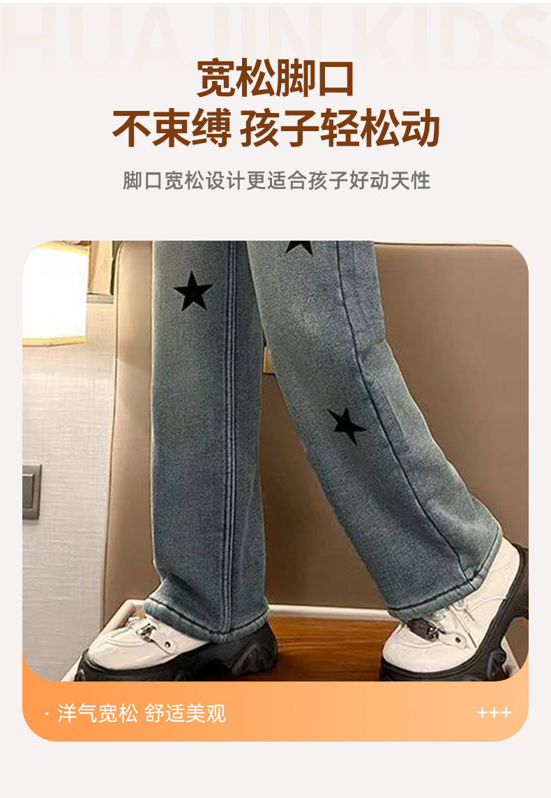 새로운 스타일 서양식 느슨한 어린이 두꺼운 기모 데님 넓은 다리 바지 소녀 기모 바지 넓은 다리 바지