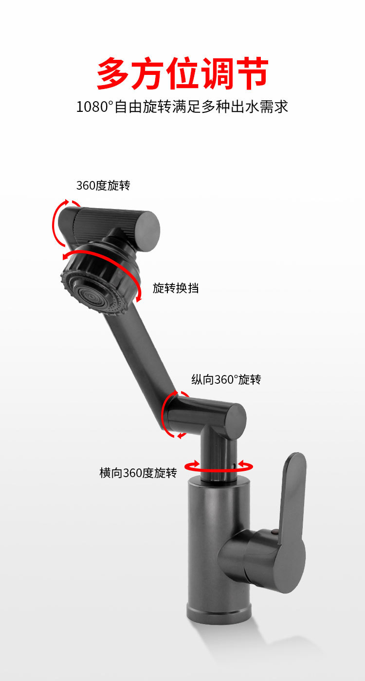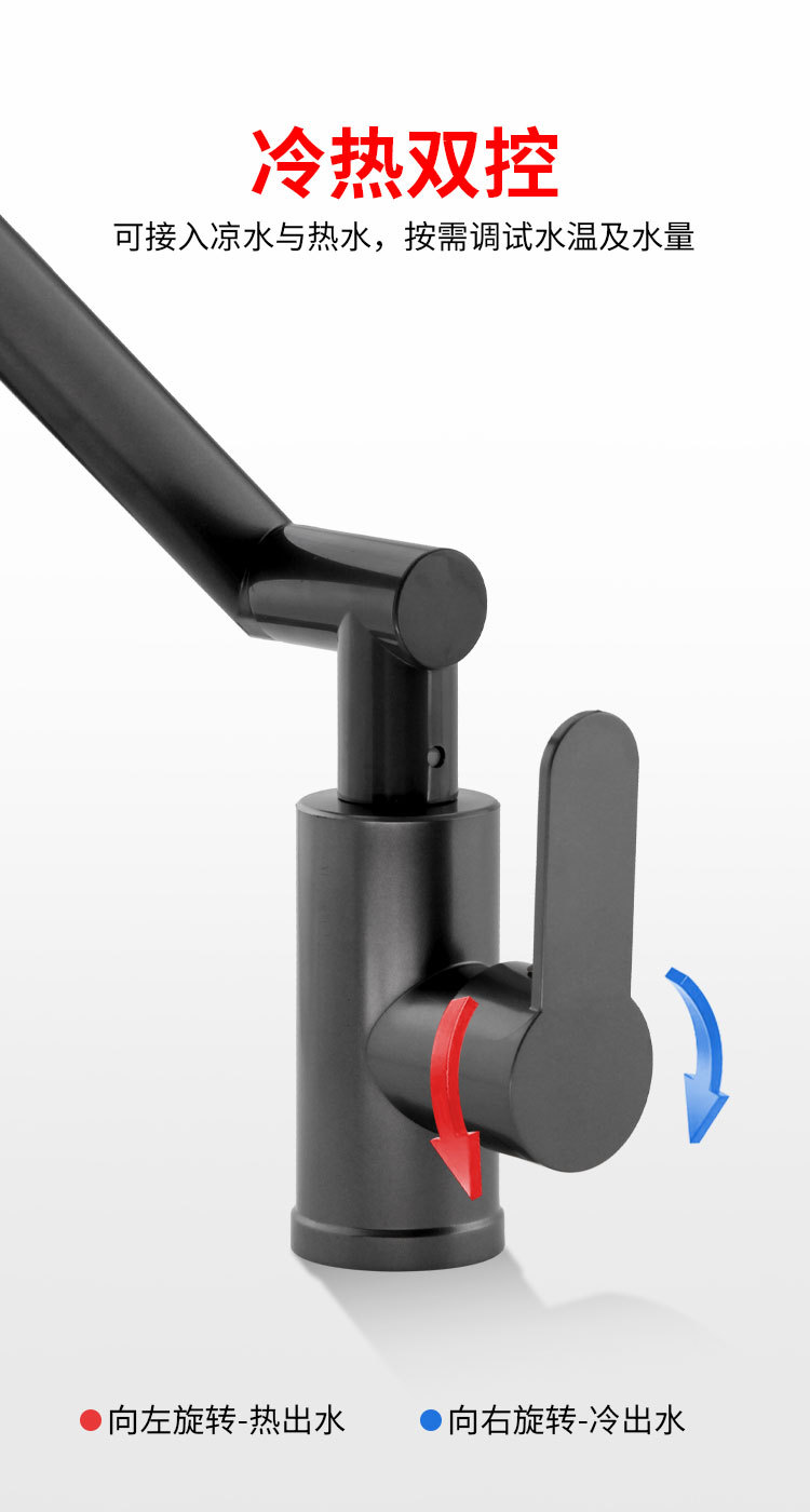 유니버설 스위블 수도꼭지 주방 워시 분지 화장실 기계 팔 욕실 온수 및 냉수 가정용 수도꼭지
