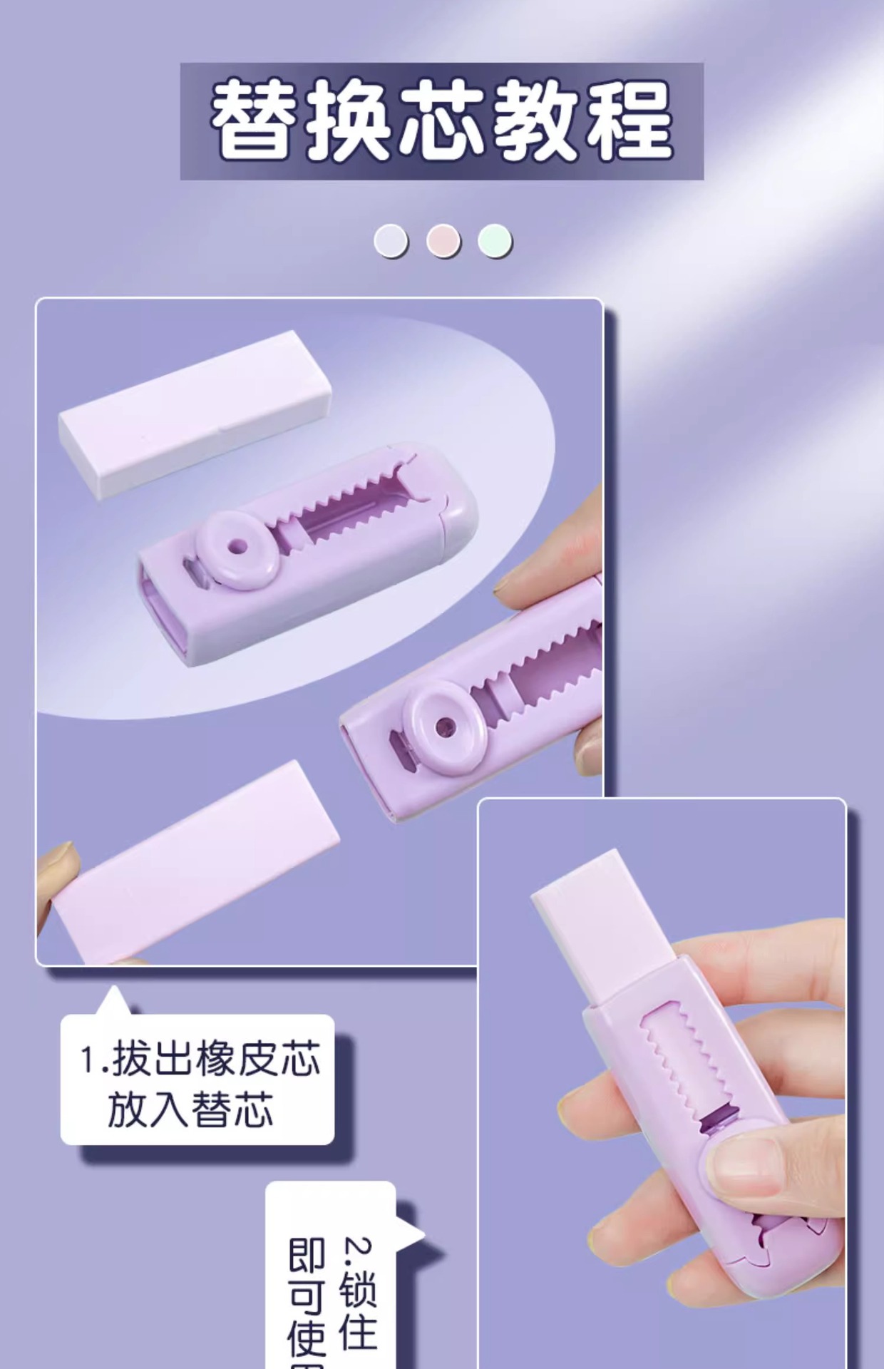 슬라이드형 초등학생용 지우개, 교체 가능한 심, 깨끗하고 흔적이 남지 않으며 부스러기가 적은 다기능 고급 지우개 문구스토어 가기