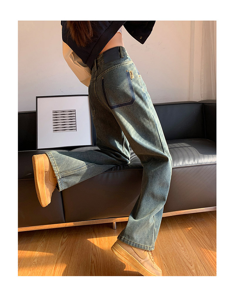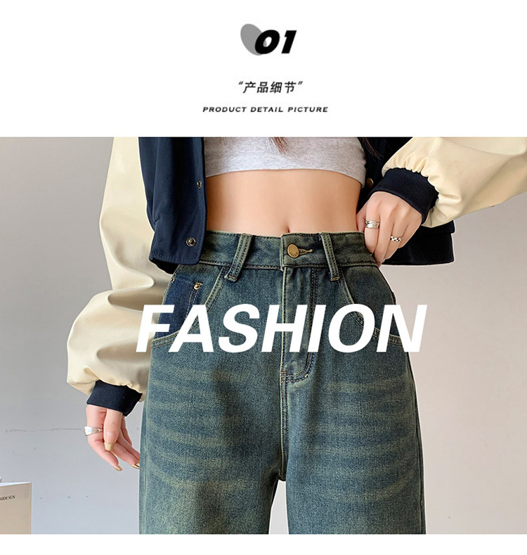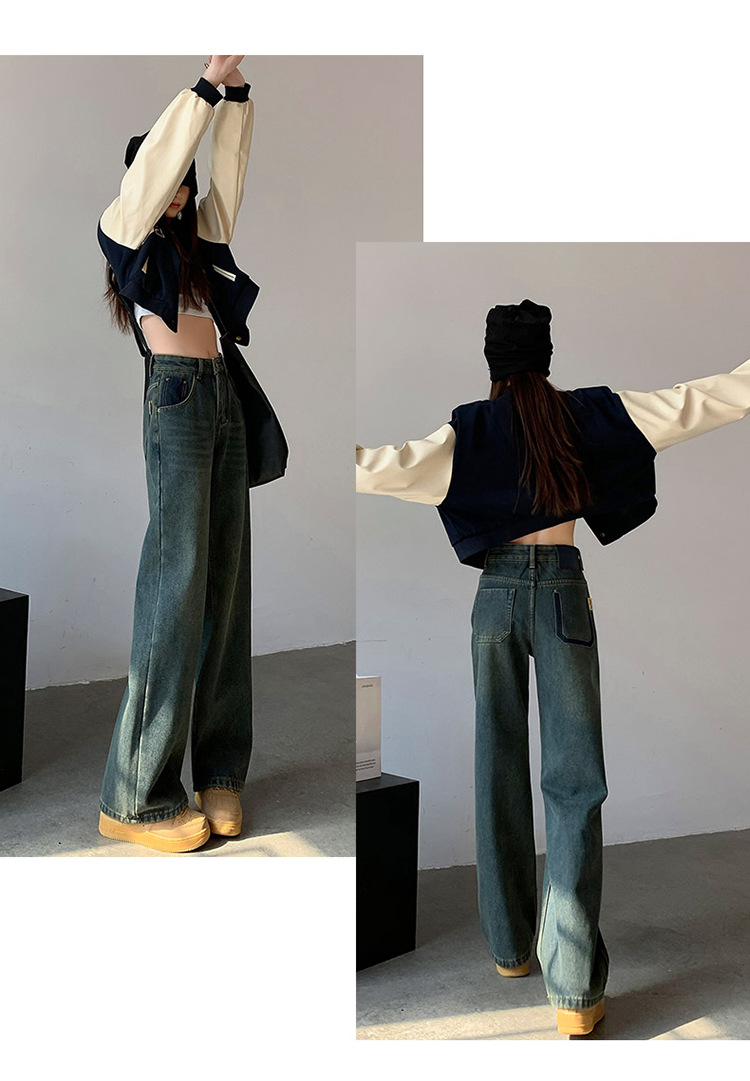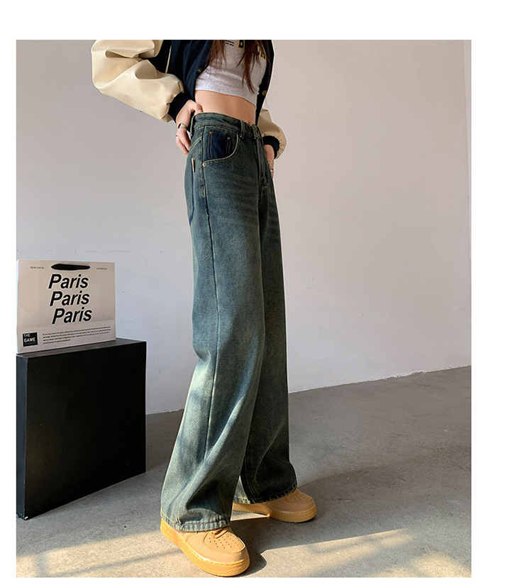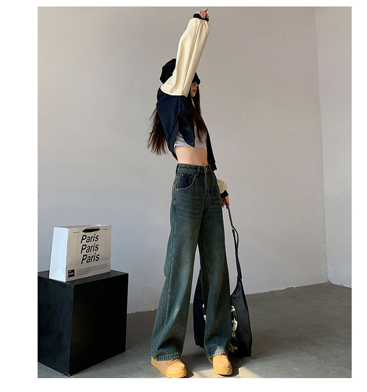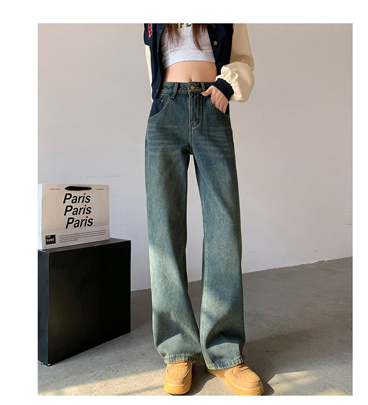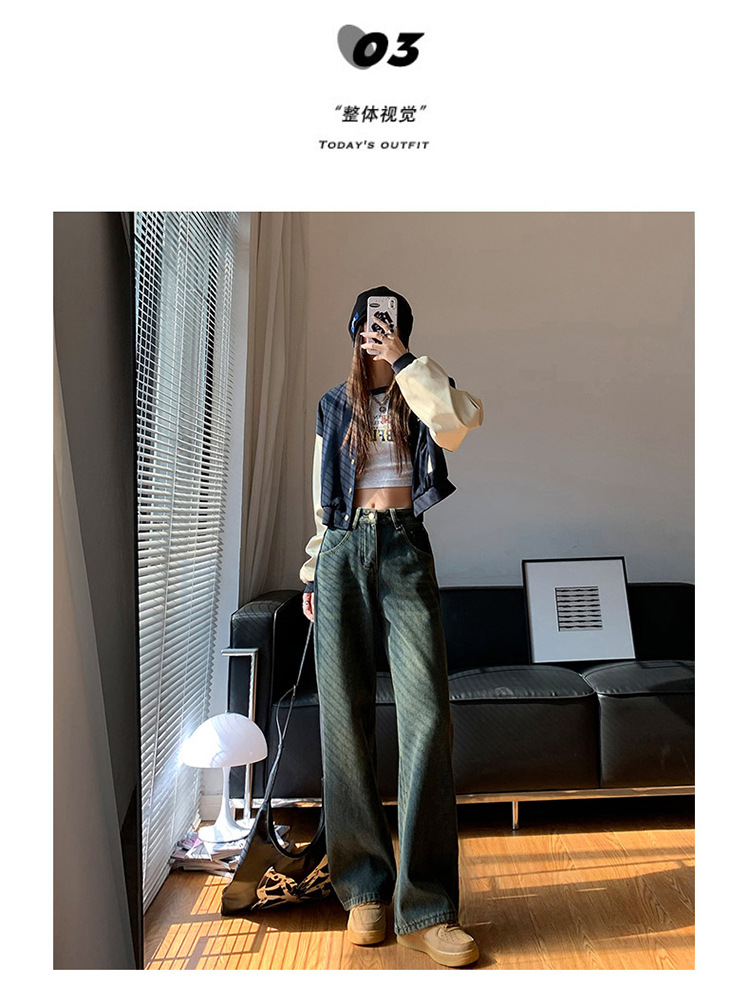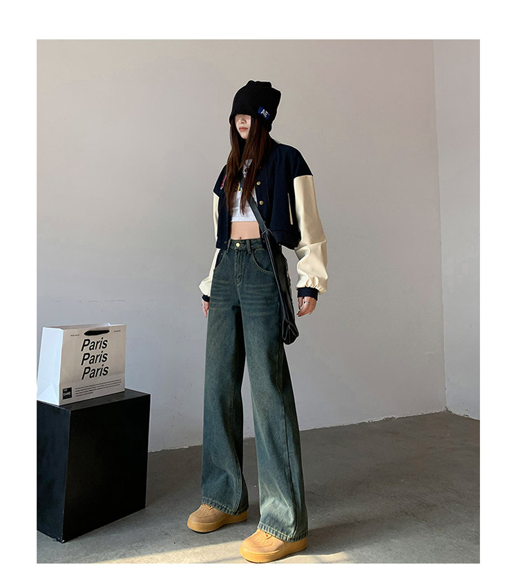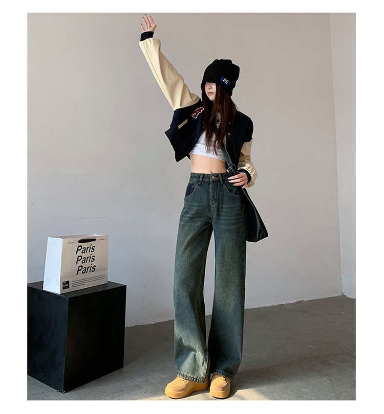 시멘트 회색 기모 청바지 여성의 가을과 겨울 2024 새로운 느슨한 높은 허리 직선 좁은 넓은 다리 바지스토어 가기