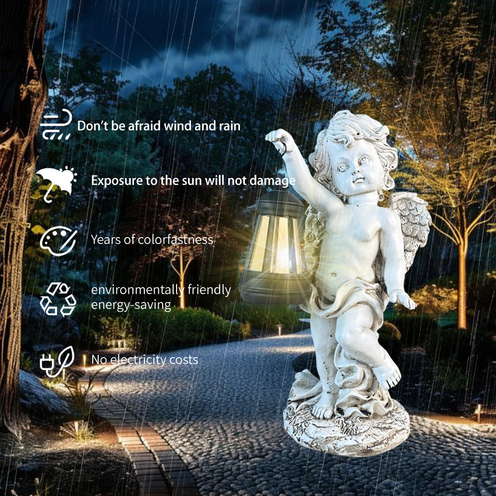 아마존 태양 램프 천사 동상 수지 장식품 정원 장식 국경 안뜰 조경 안뜰 발코니 문