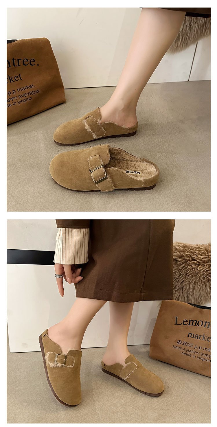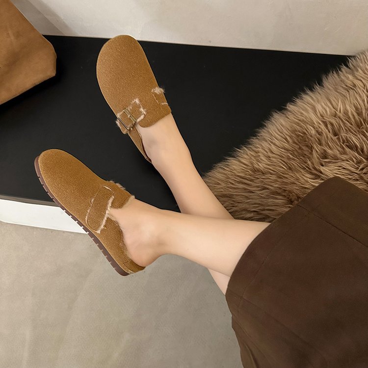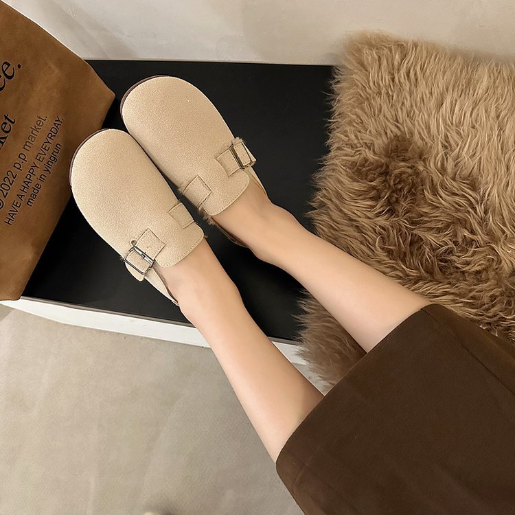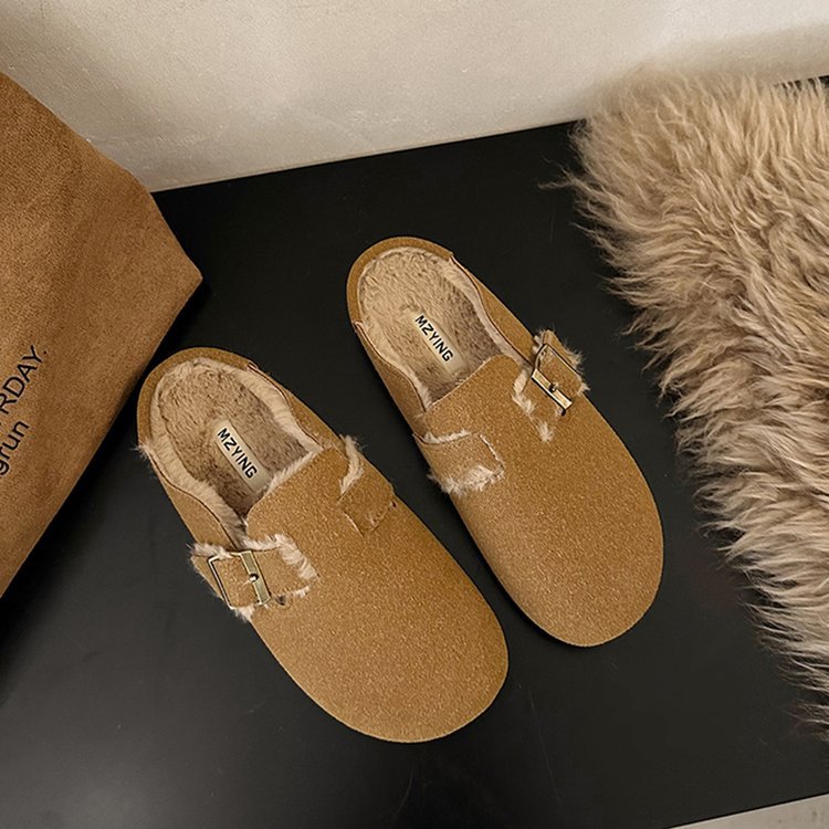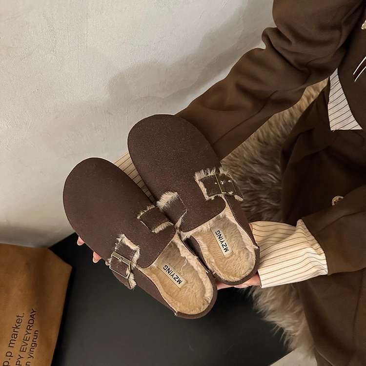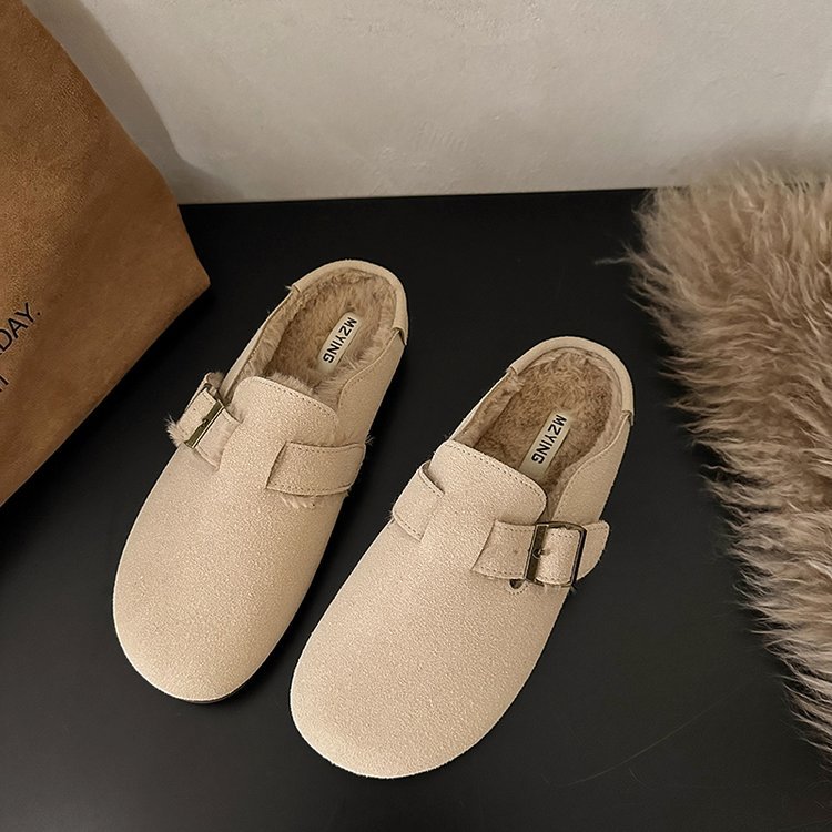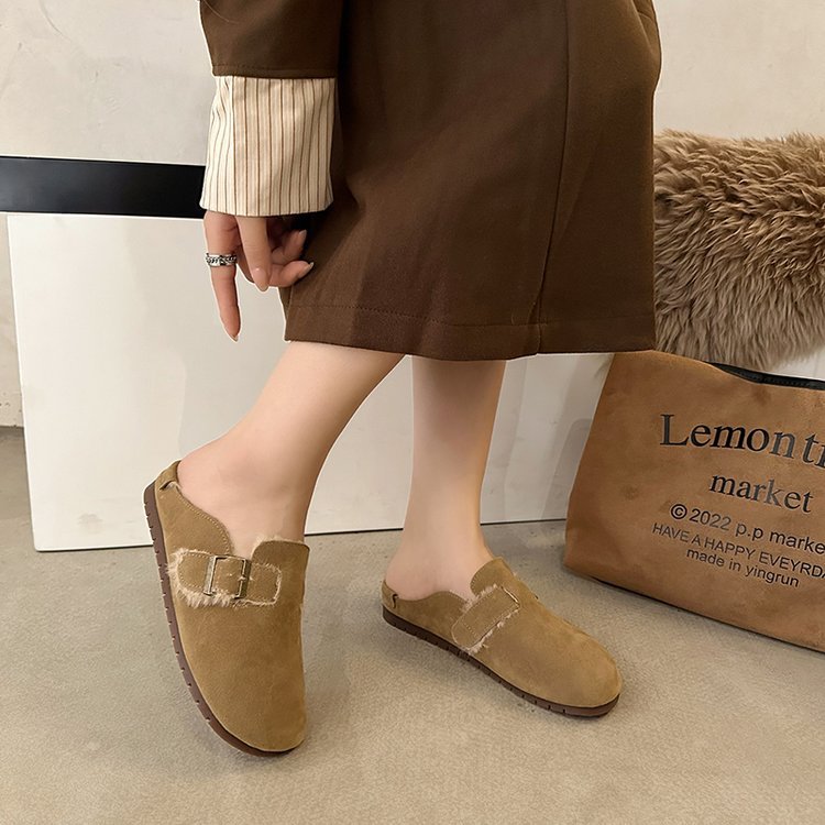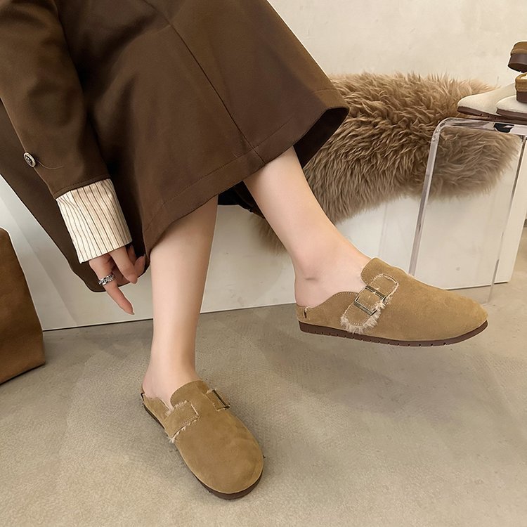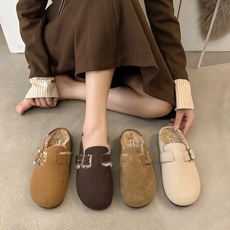 부드러운 밑창 Birkenan 신발 하프 드래그 여성용 가을 및 겨울 아우터웨어 2024 새로운 도착 올 매치 슬립 온 Baotou Birkenan Maomao 면화 슬리퍼