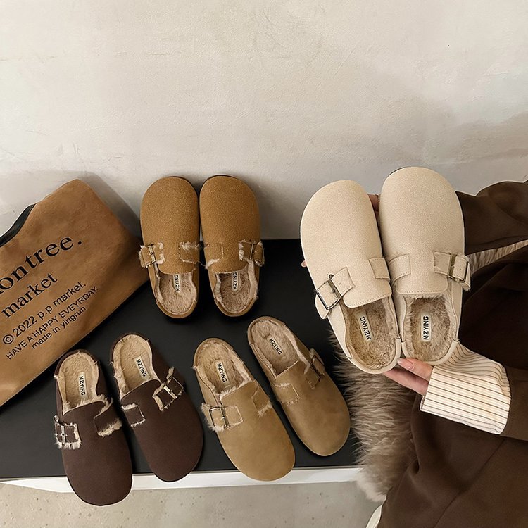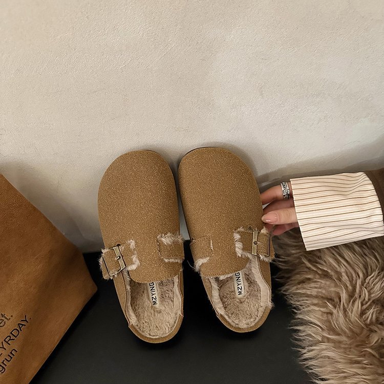 부드러운 밑창 Birkenan 신발 하프 드래그 여성용 가을 및 겨울 아우터웨어 2024 새로운 도착 올 매치 슬립 온 Baotou Birkenan Maomao 면화 슬리퍼스토어 가기