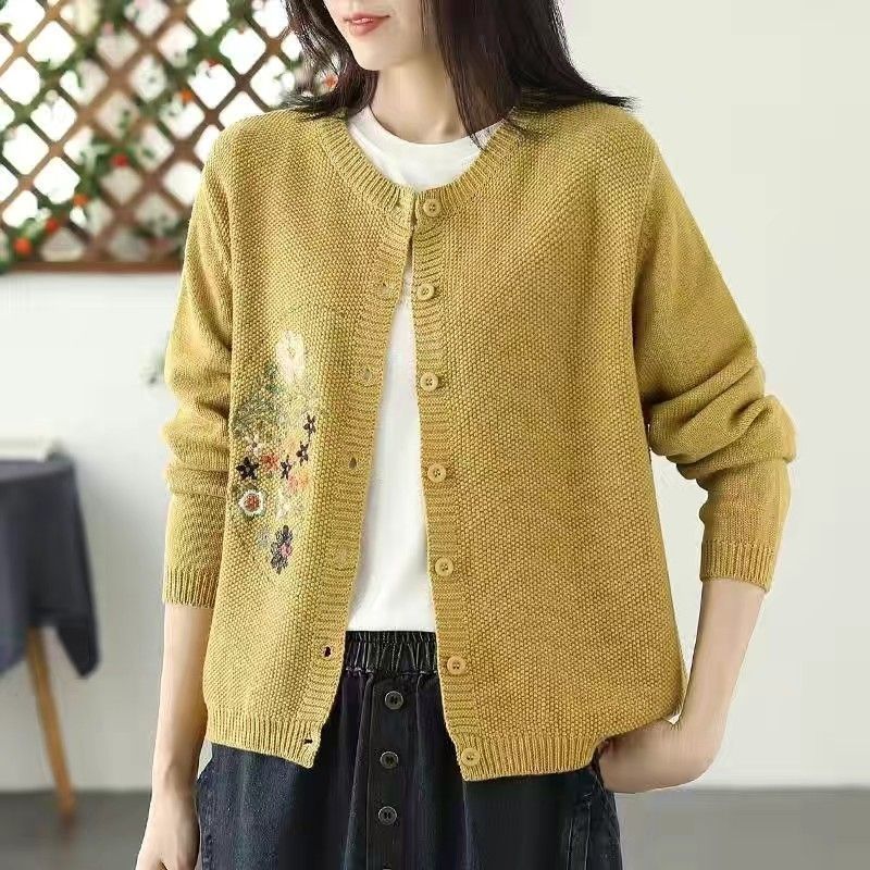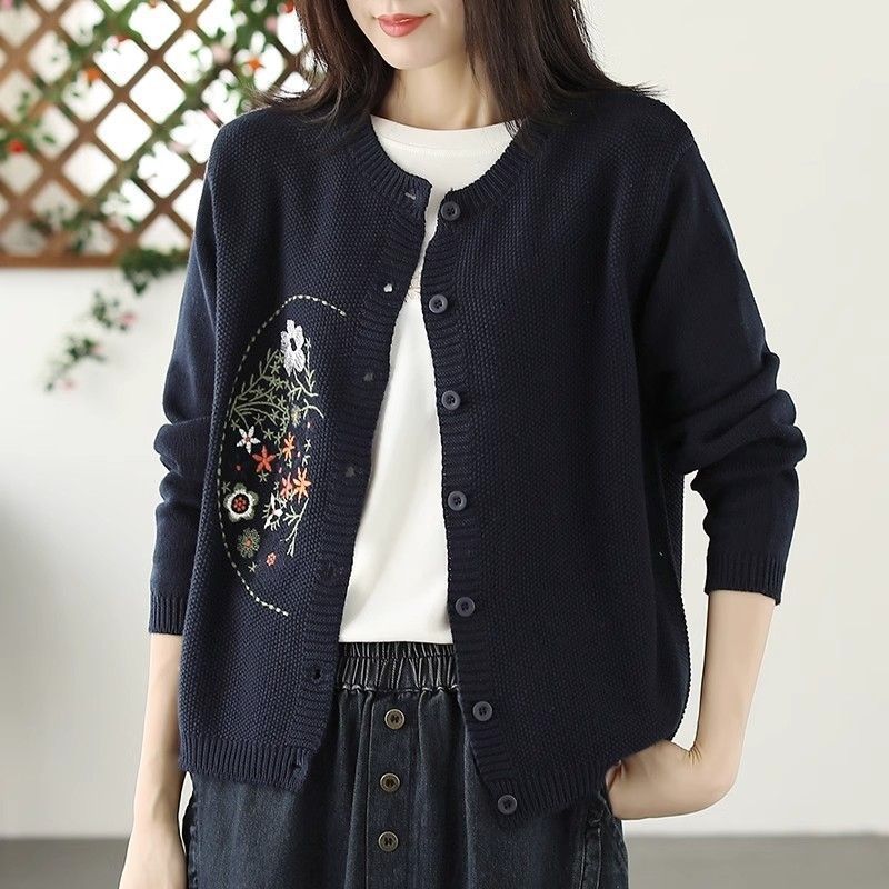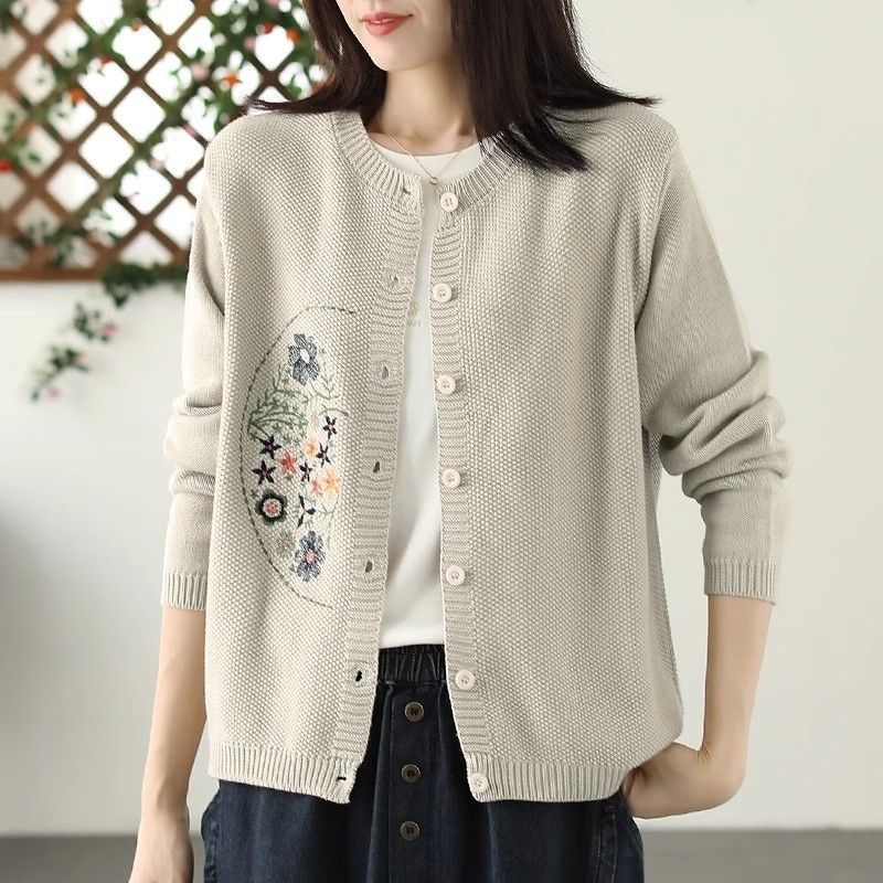 2025 라운드 넥 카디건 코트 여성의 얇은 느슨한 자수 스웨터 짧은 스웨터스토어 가기