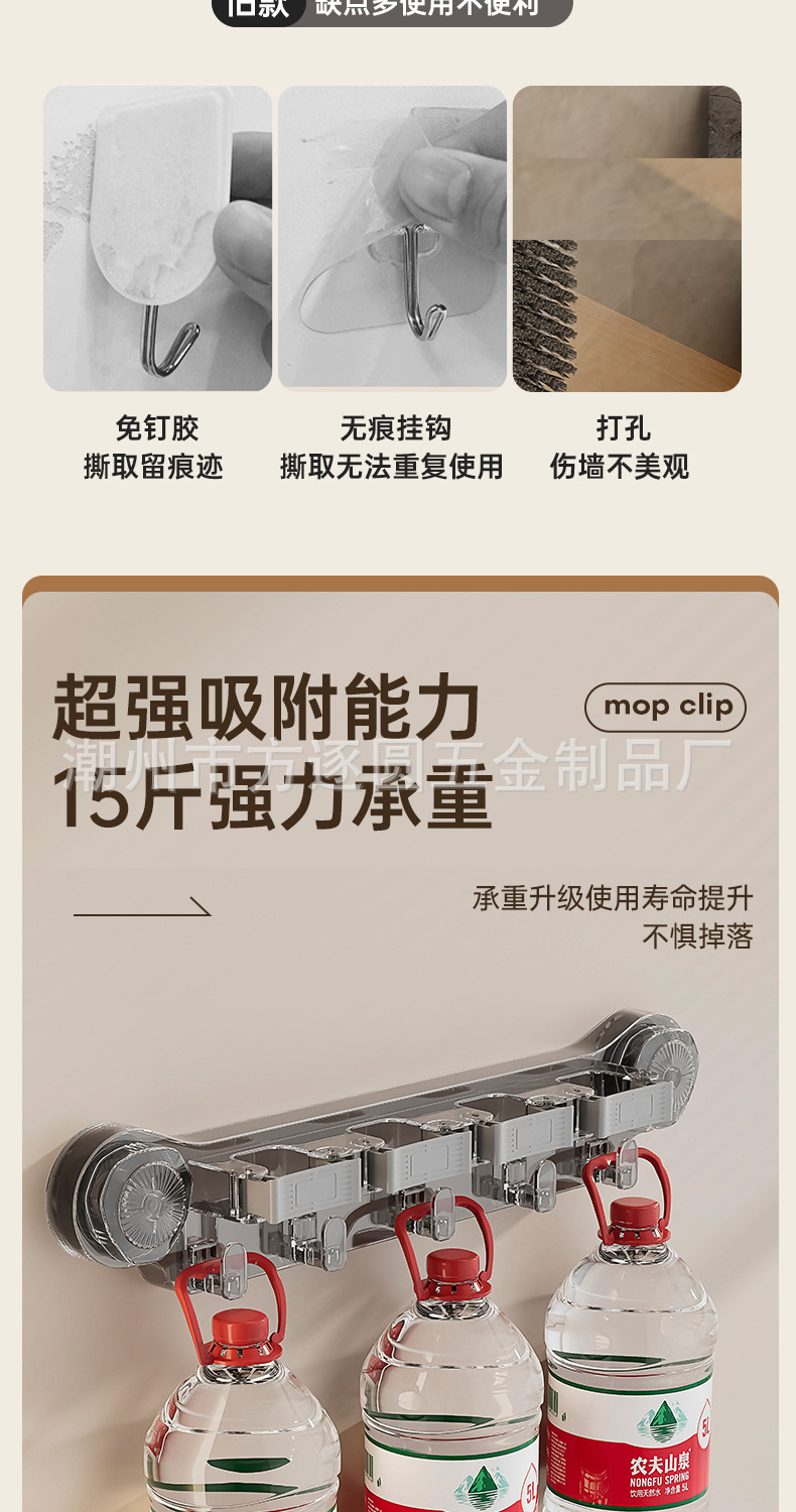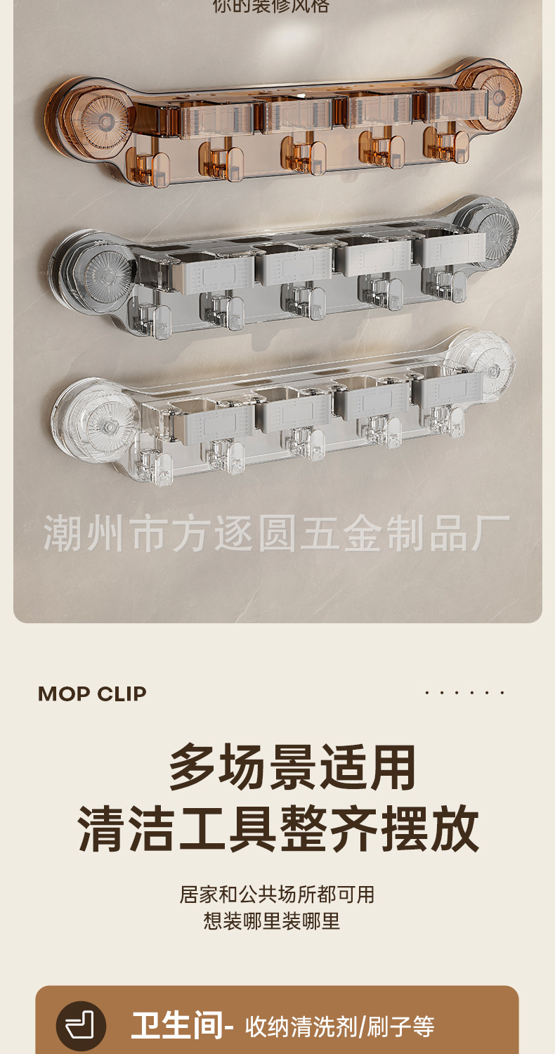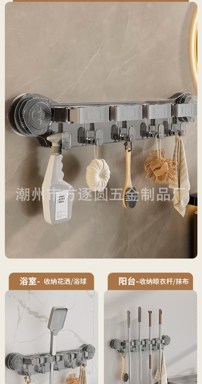 강력한 흡입 컵 걸레 클립 후크 원활한 욕실 다중 사용 보관 랙이있는 행 걸레 클립이있는 천공되지 않은 화장실 클립