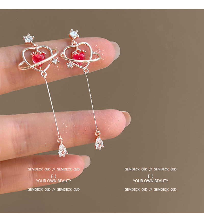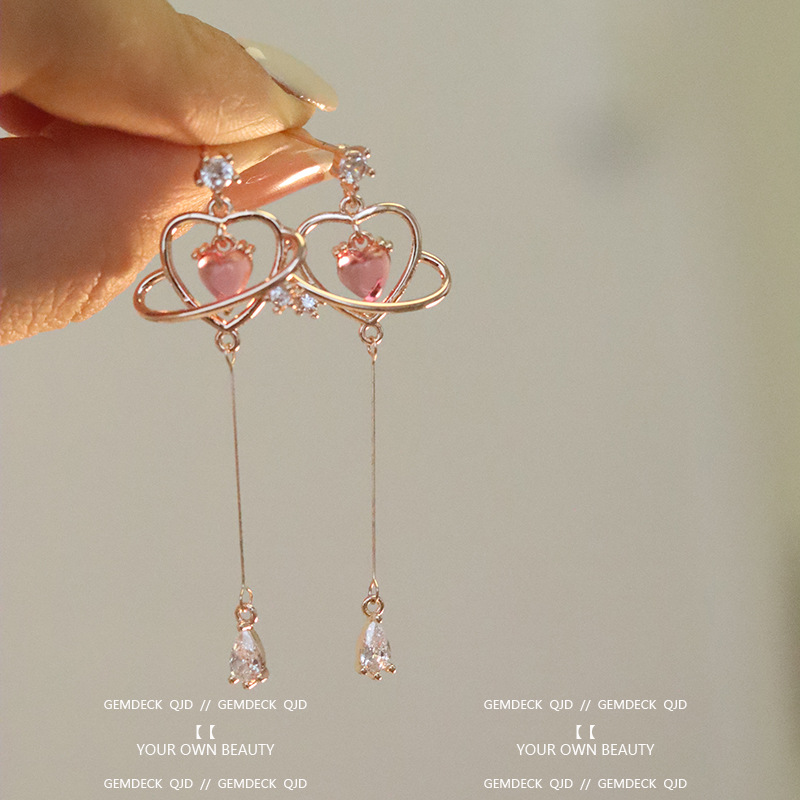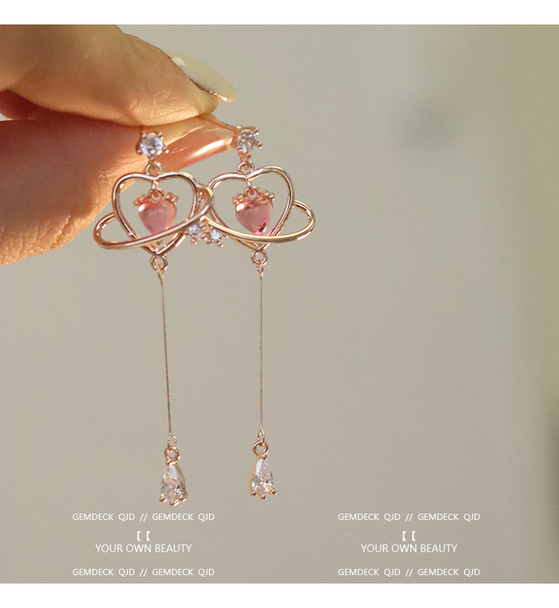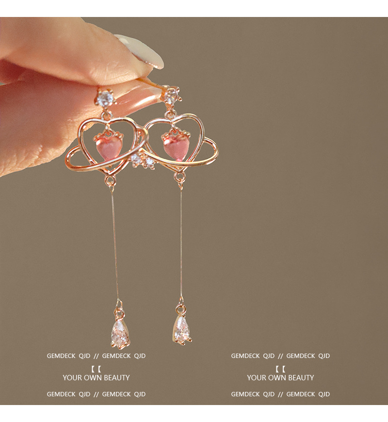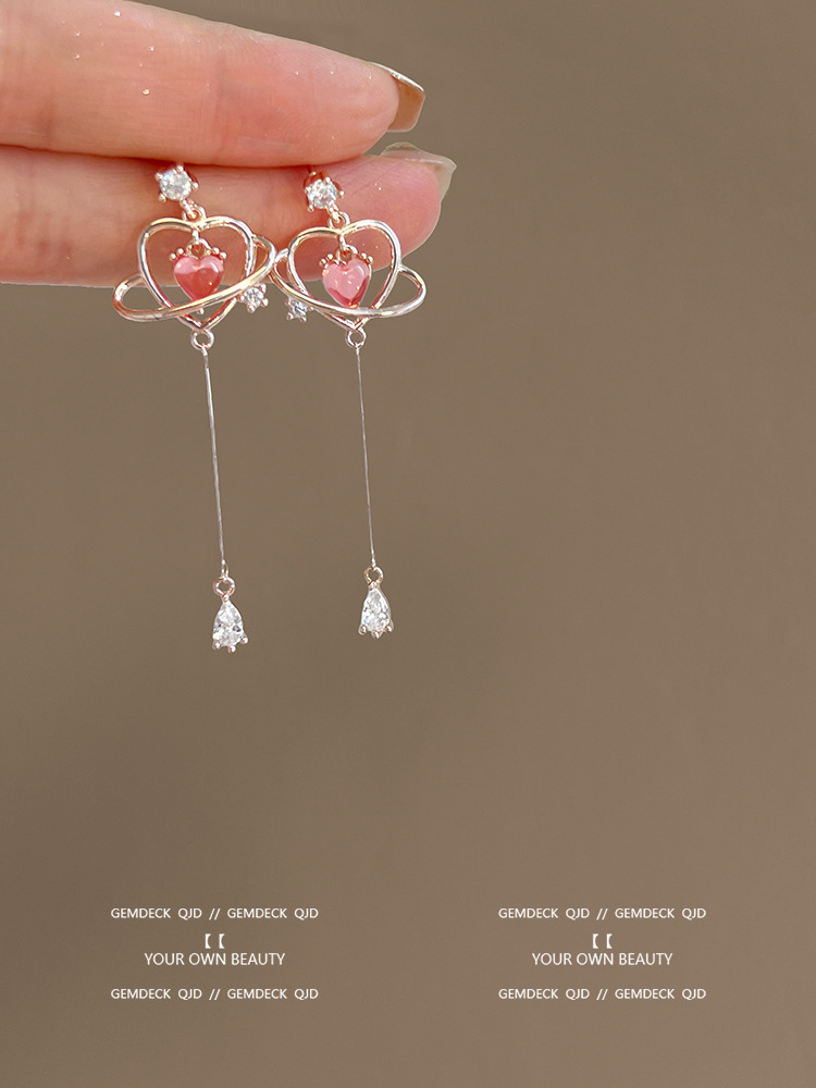 프랑스 빛 럭셔리 사랑 하트 크리스탈 귀걸이 여성 틈새 디자인 하이 엔드 긴 지르콘 술 펜던트 귀걸이 도매스토어 가기