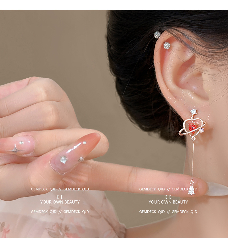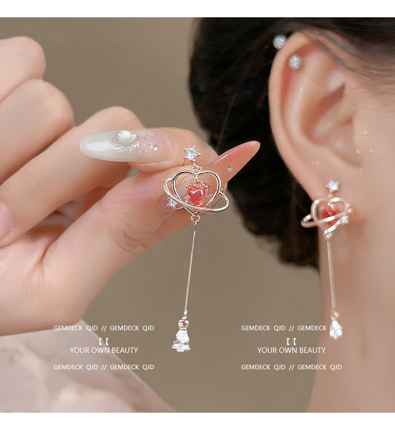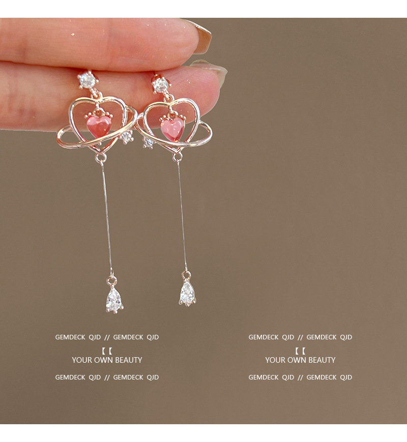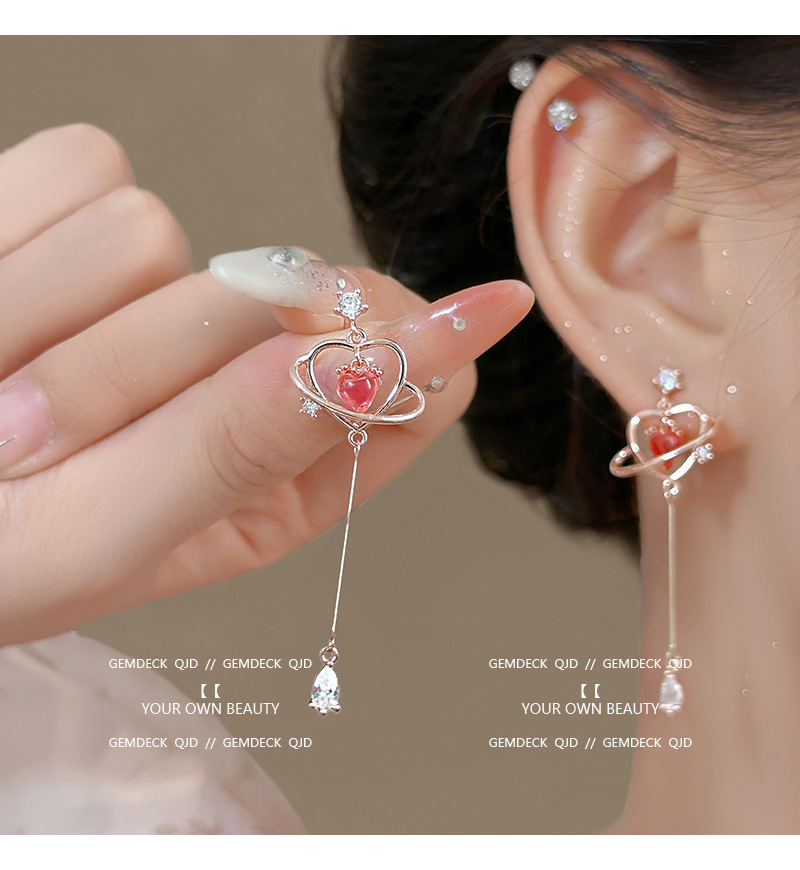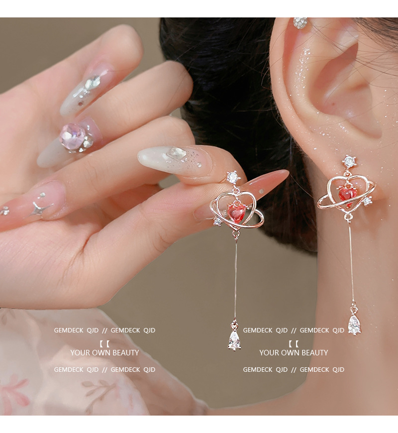 프랑스 빛 럭셔리 사랑 하트 크리스탈 귀걸이 여성 틈새 디자인 하이 엔드 긴 지르콘 술 펜던트 귀걸이 도매스토어 가기