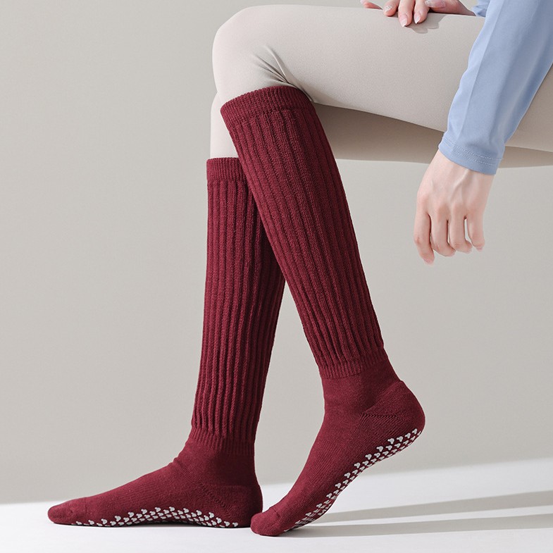 테리 요가 양말 낮은 다리 양말 가을과 겨울 두꺼운 미끄럼 방지 러닝 로프 건너 뛰기 스포츠 피트니스 송아지 두꺼운 바늘 코일 양말