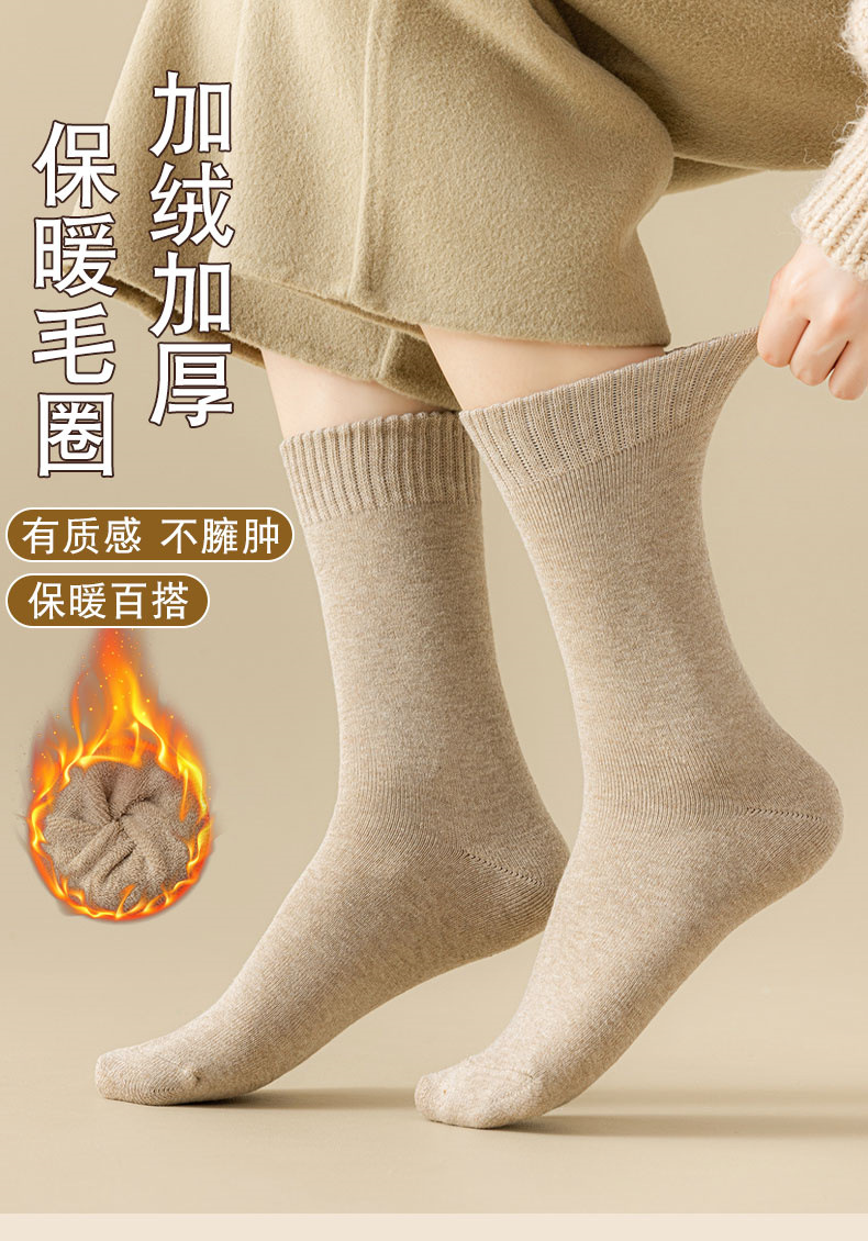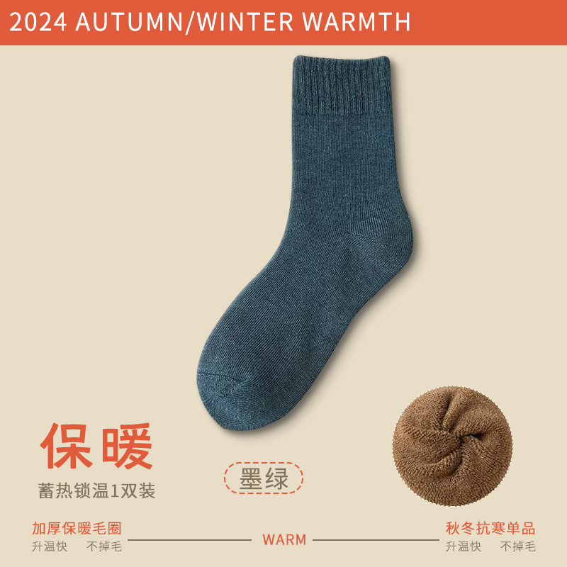 양말 남자의 중간 튜브 양말 남자의 가을과 겨울 기모 두꺼운 따뜻한 테리 수건 양말 겨울 단색 긴 튜브 면화 양말