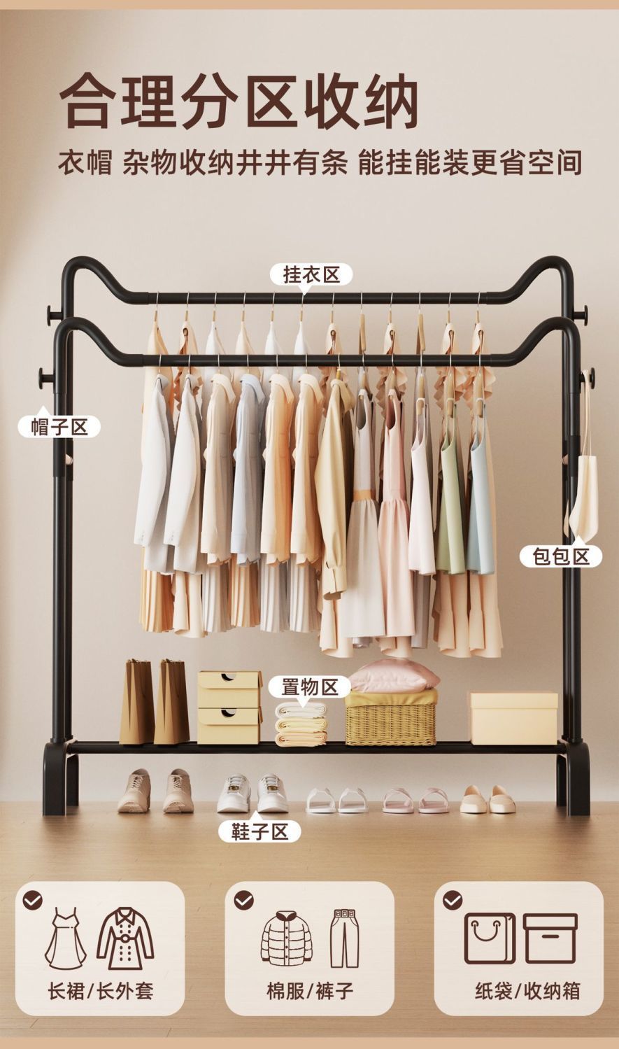 간단한 옷 랙 바닥-스탠딩 접이식 발코니 의류 랙 가정용 침실 의류 랙 접이식 옷 랙스토어 가기