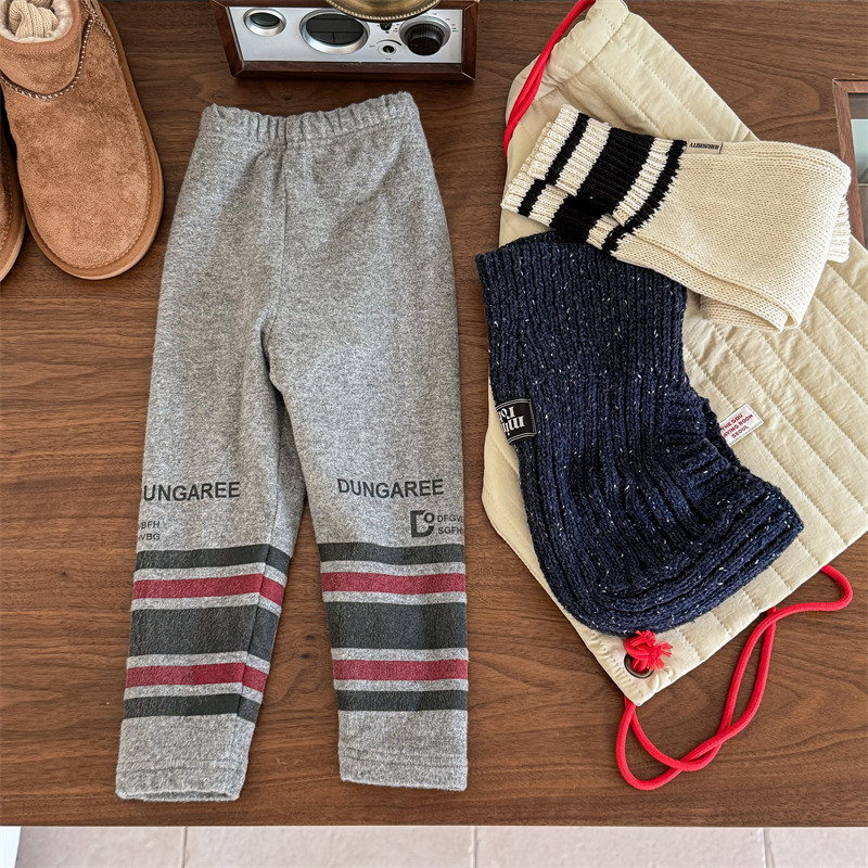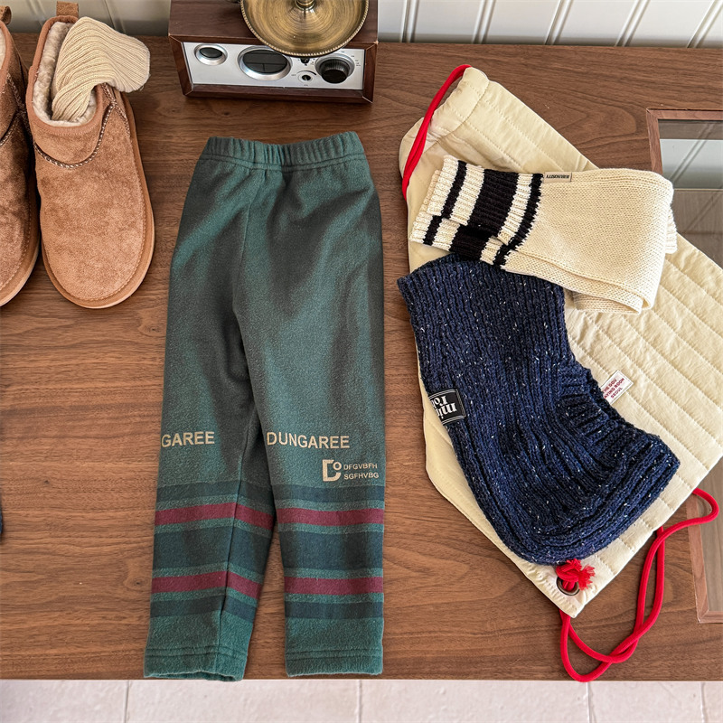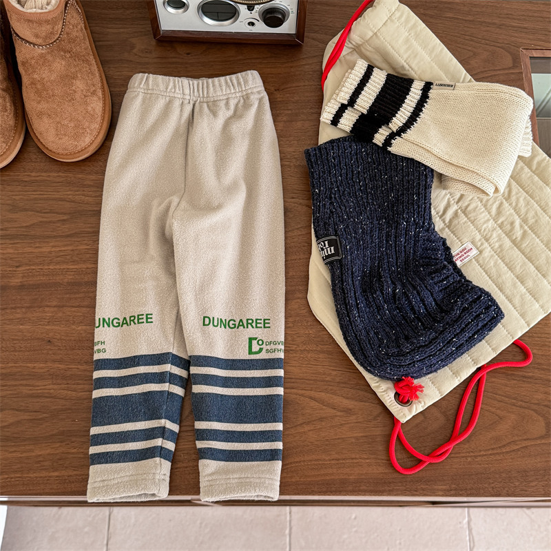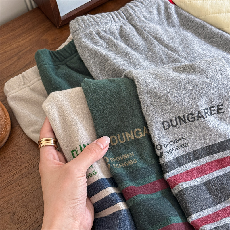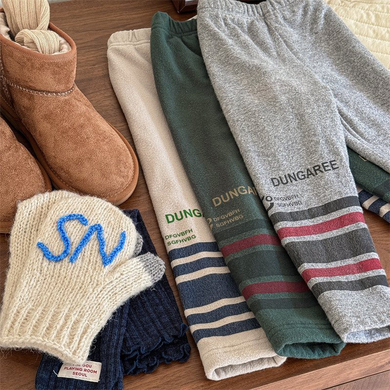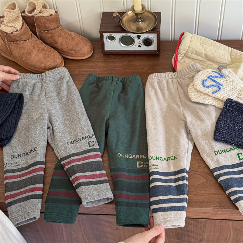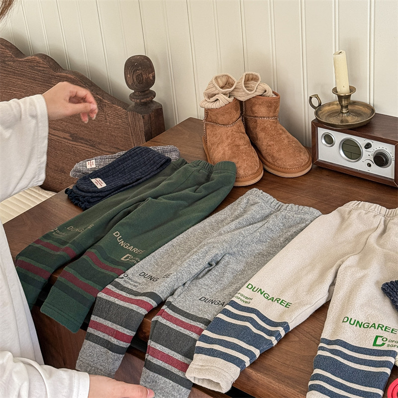 2024 가을/겨울 어린이 기모 레깅스 소년과 소녀 컬러 스트립 편지 인쇄 서양식 따뜻한 레깅스 바지스토어 가기