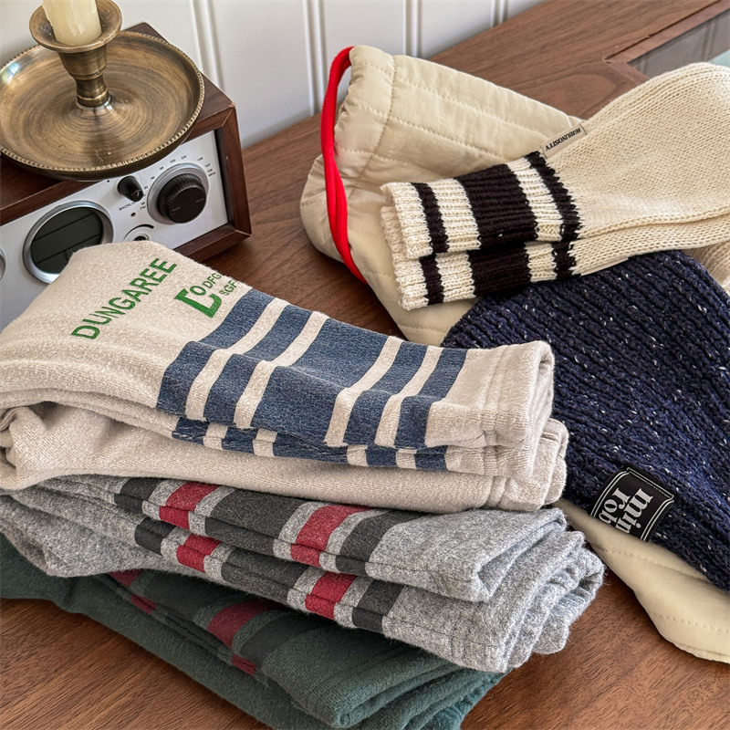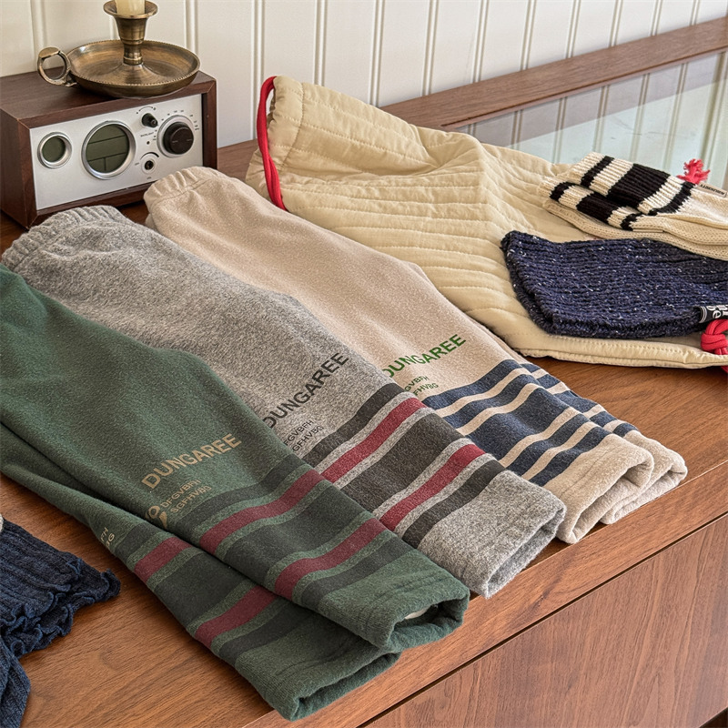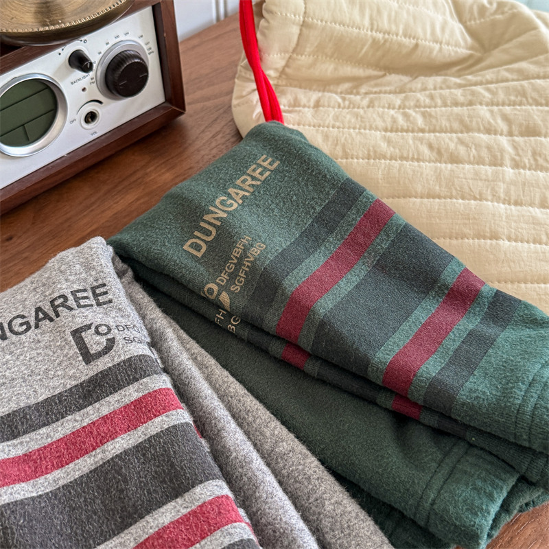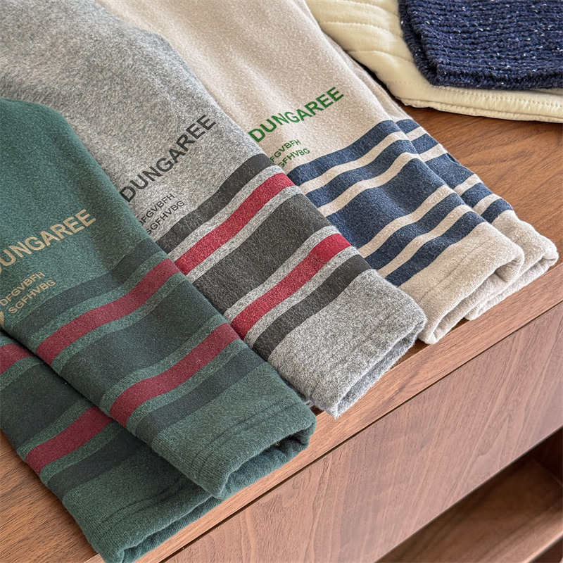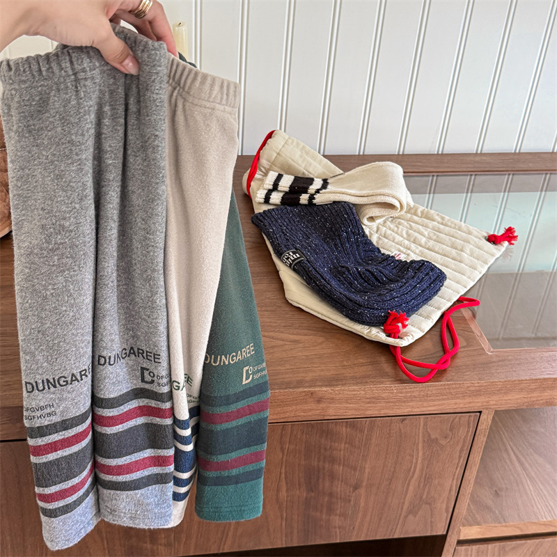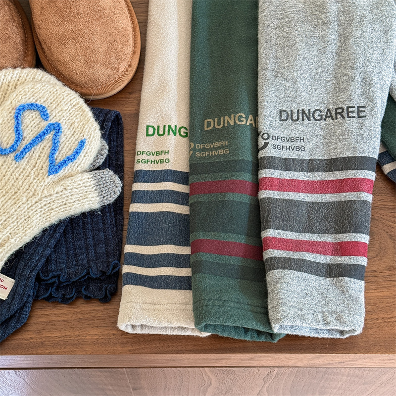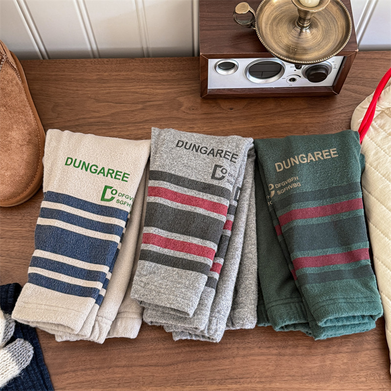 2024 가을/겨울 어린이 기모 레깅스 소년과 소녀 컬러 스트립 편지 인쇄 서양식 따뜻한 레깅스 바지스토어 가기