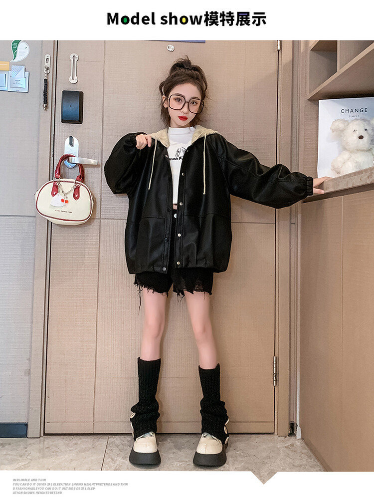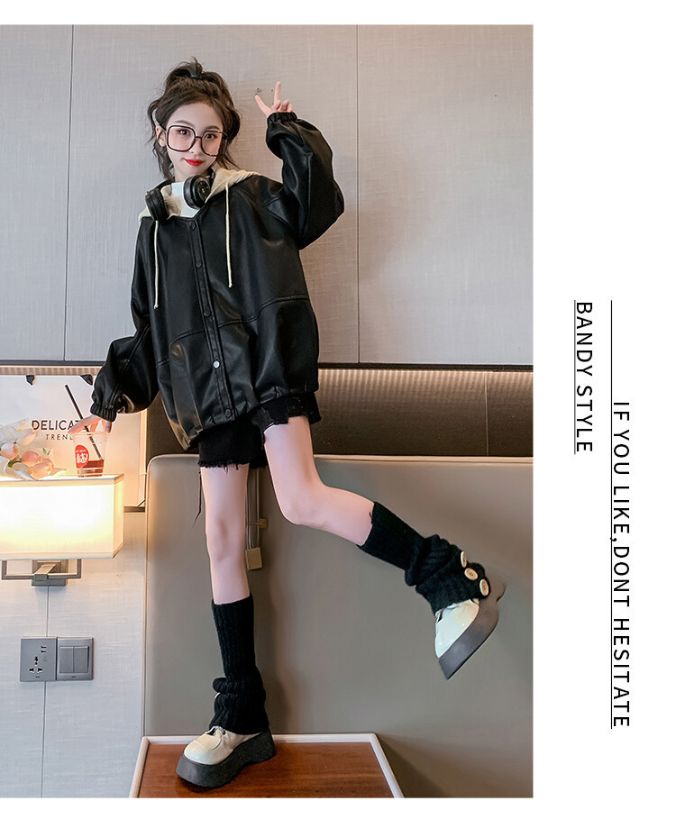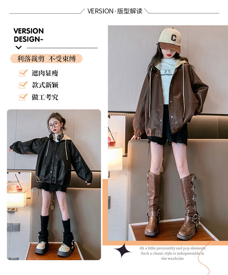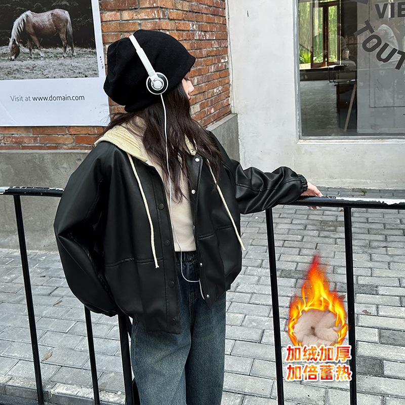 소녀 코트 가을 겨울 2024 새로운 서양식 아동복 대형 어린이 최고 어린이 가죽 기모 두꺼운 재킷스토어 가기