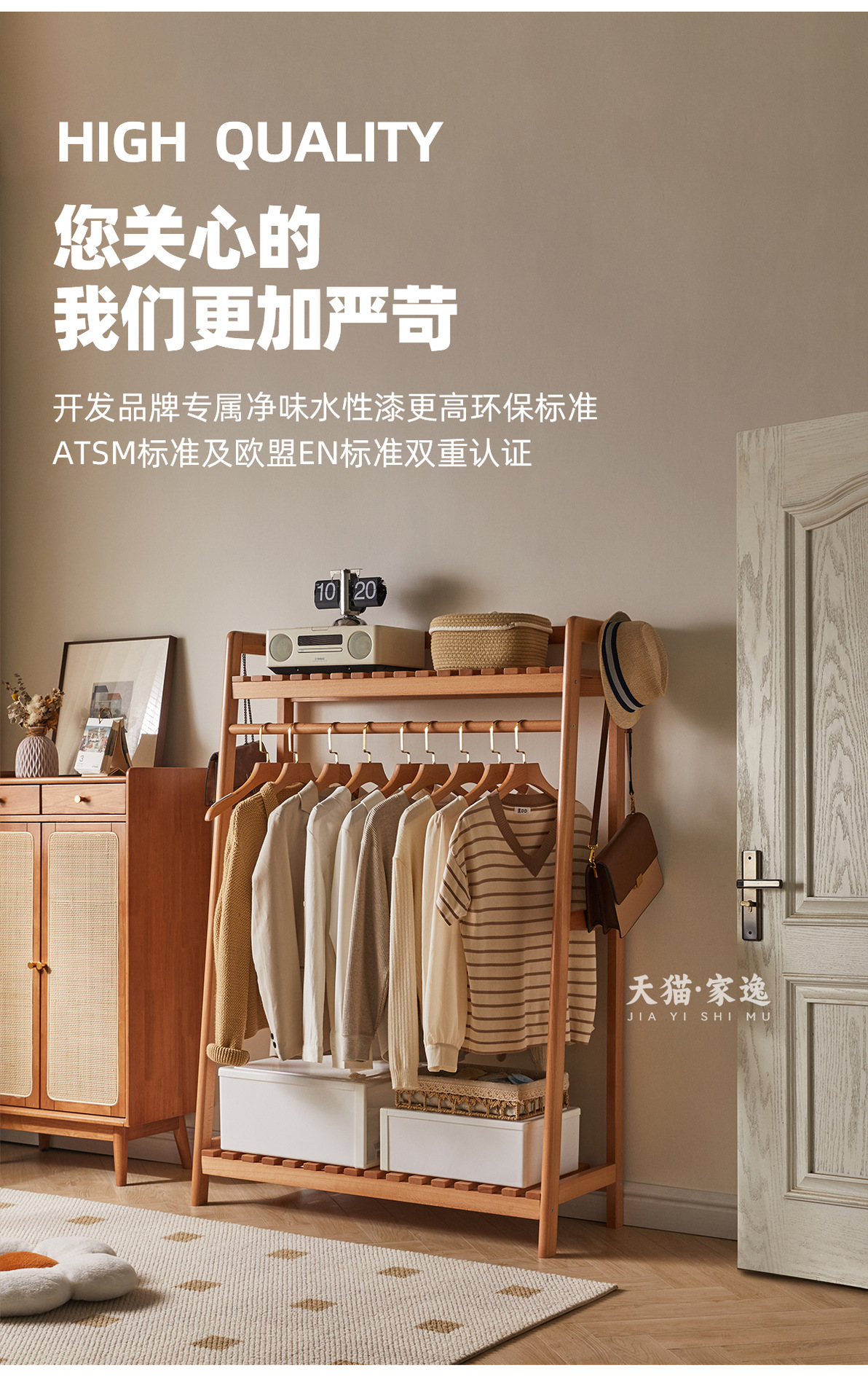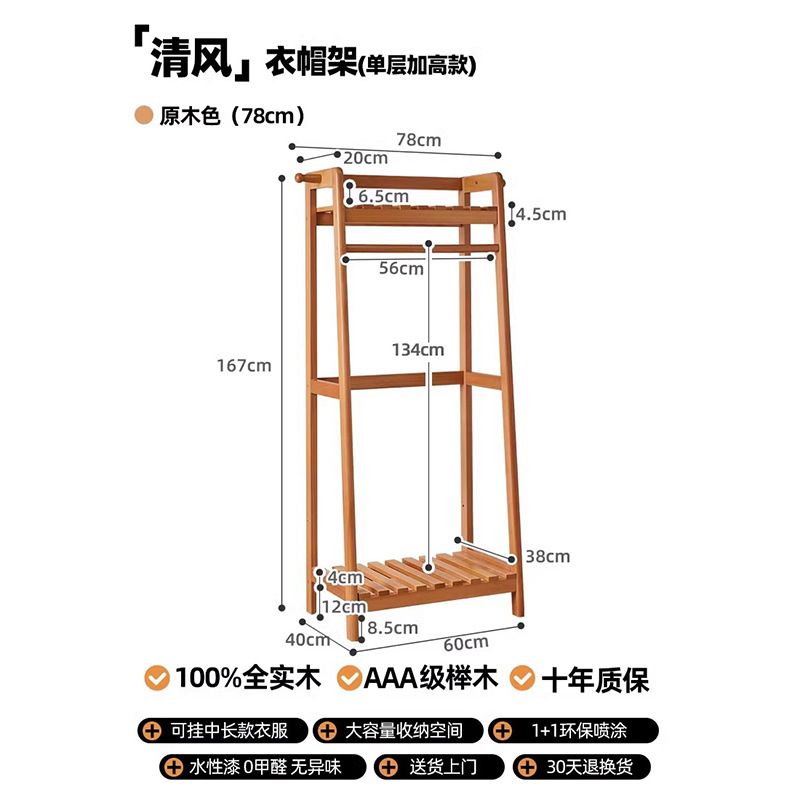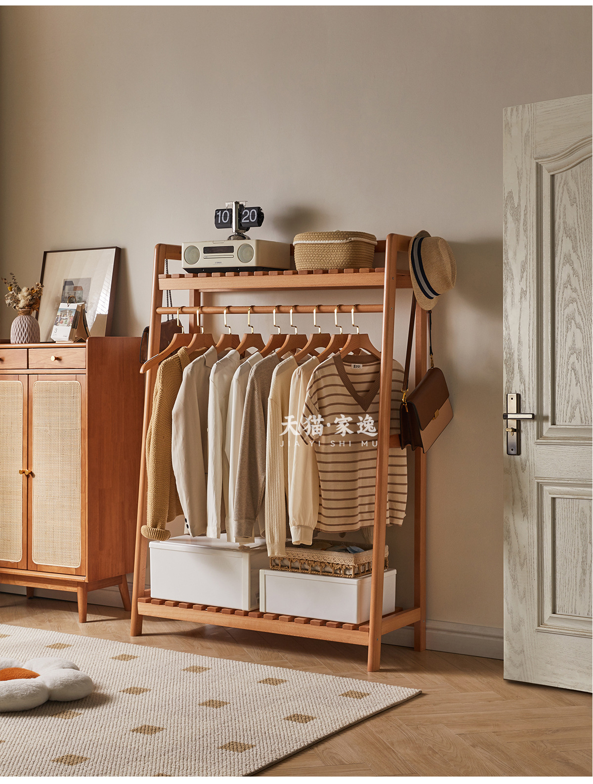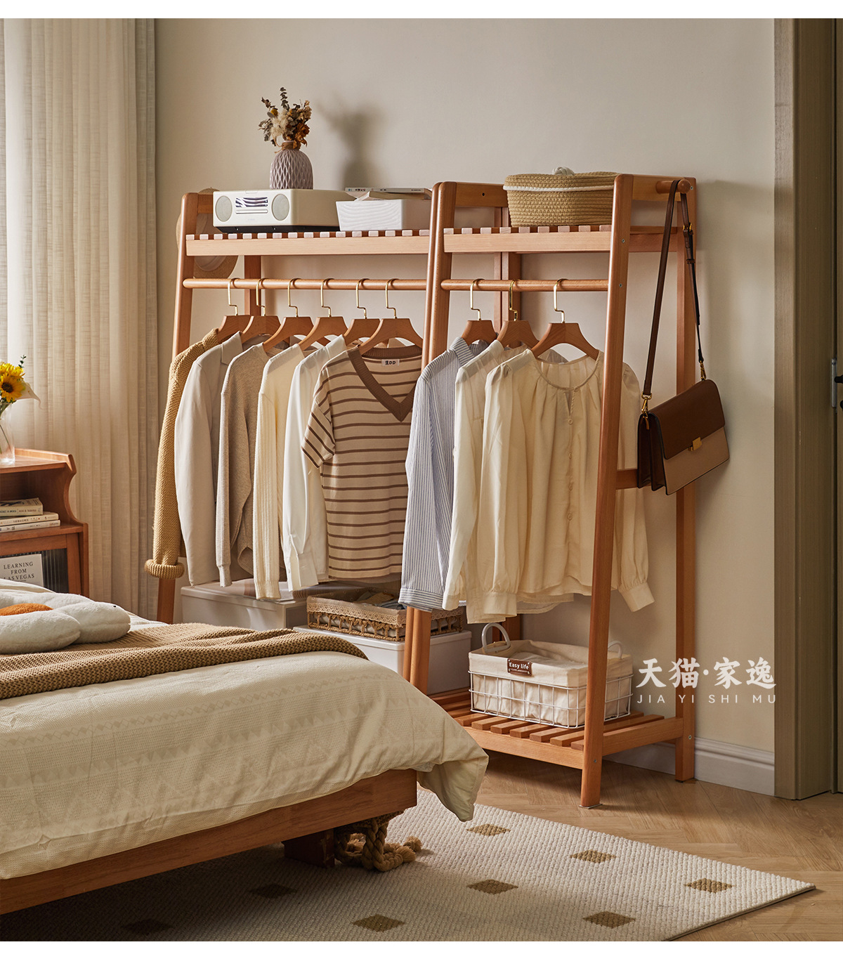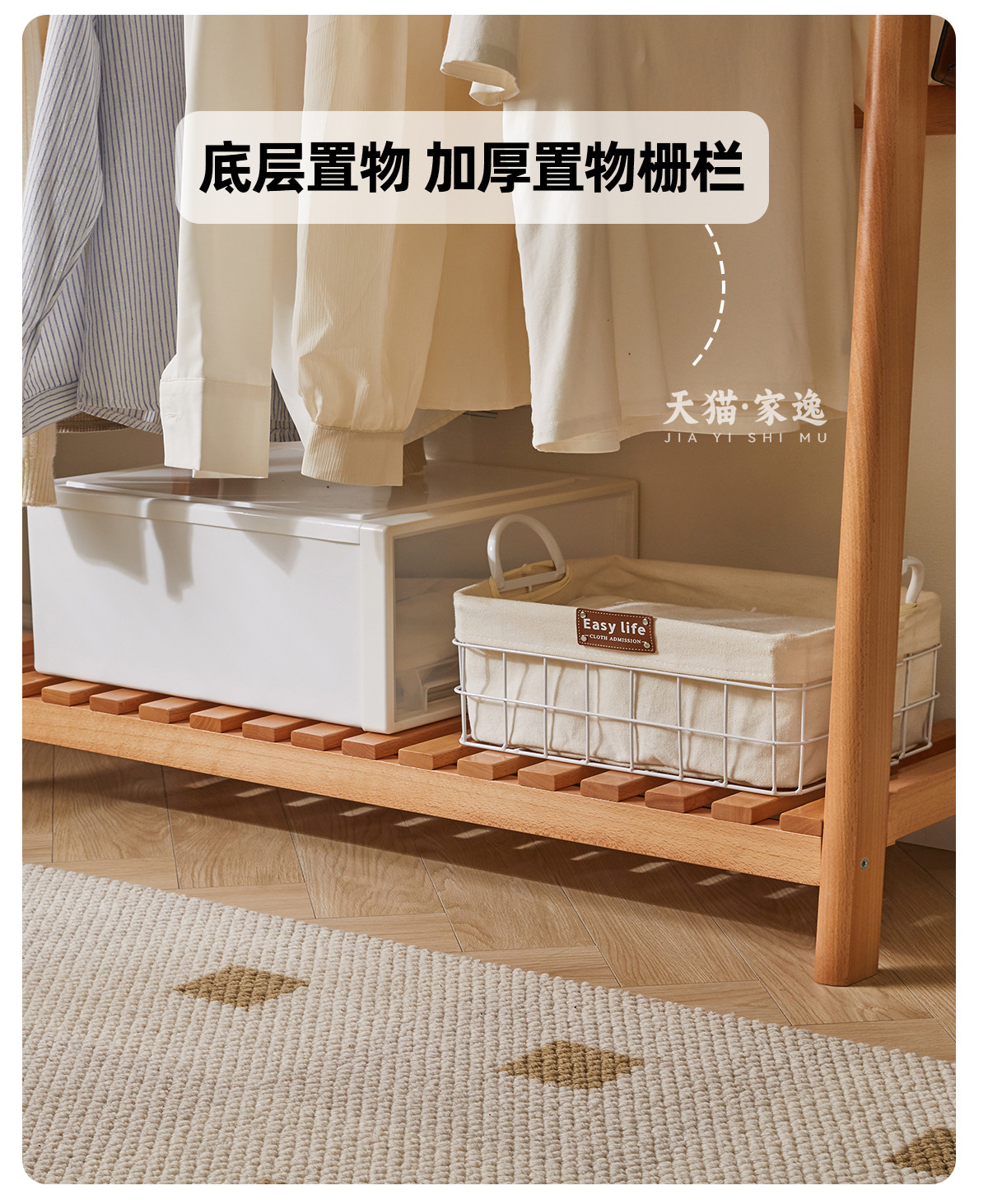 너도밤 나무 옷걸이 바닥 침실 코트 랙 솔리드 우드 룸 건조 랙 침대 옆 강하고 튼튼한 옷 랙