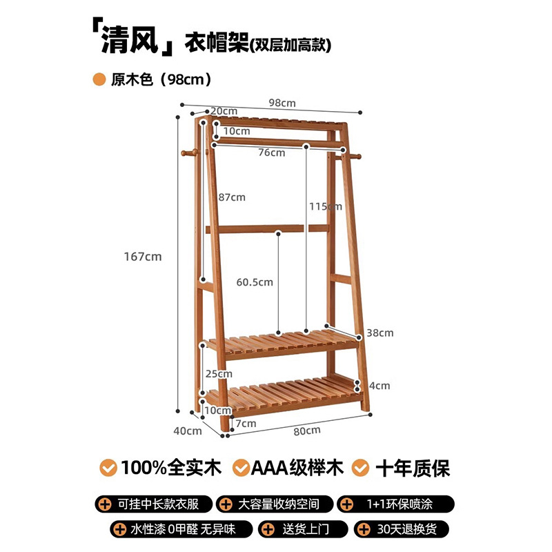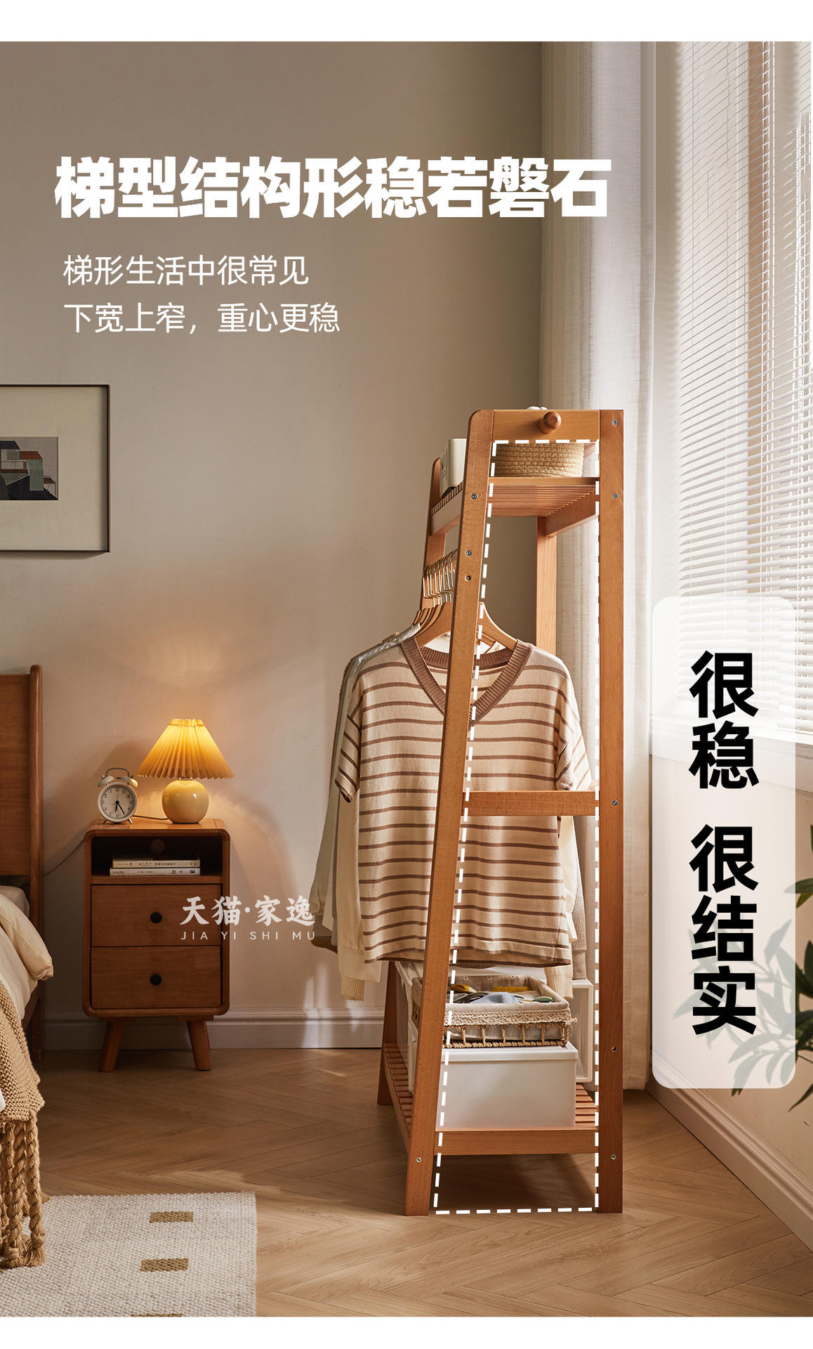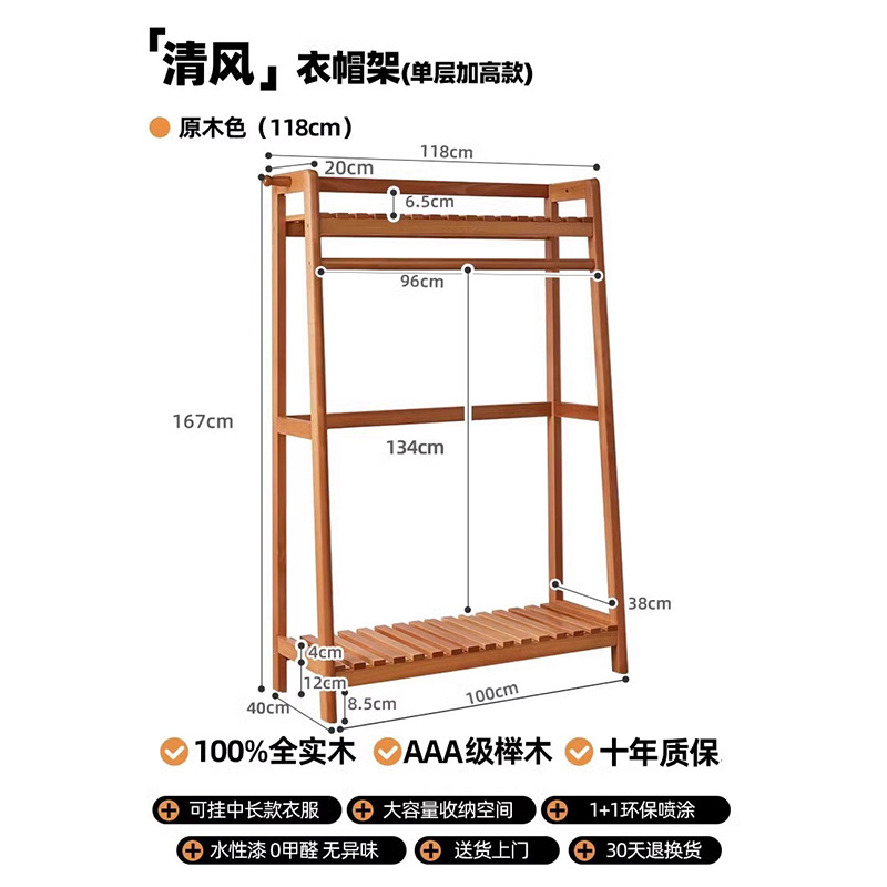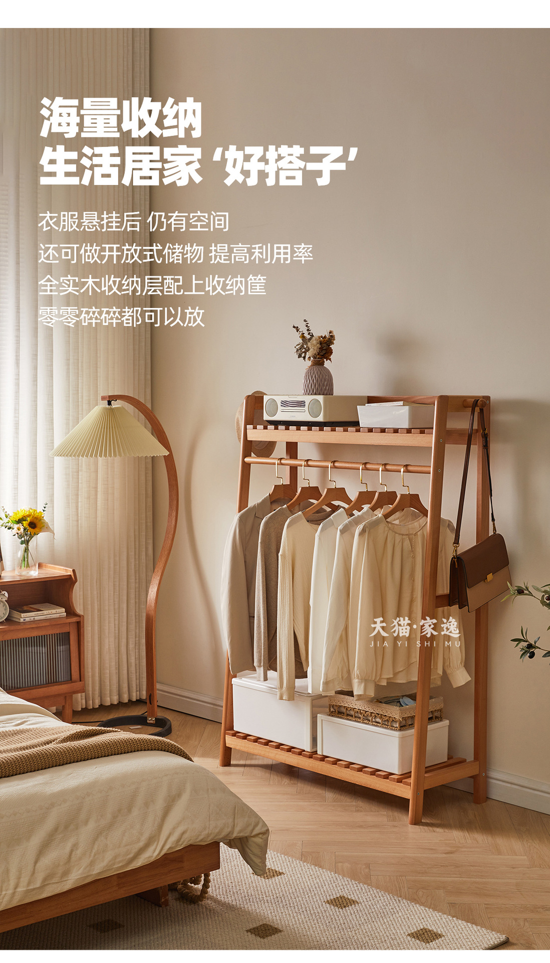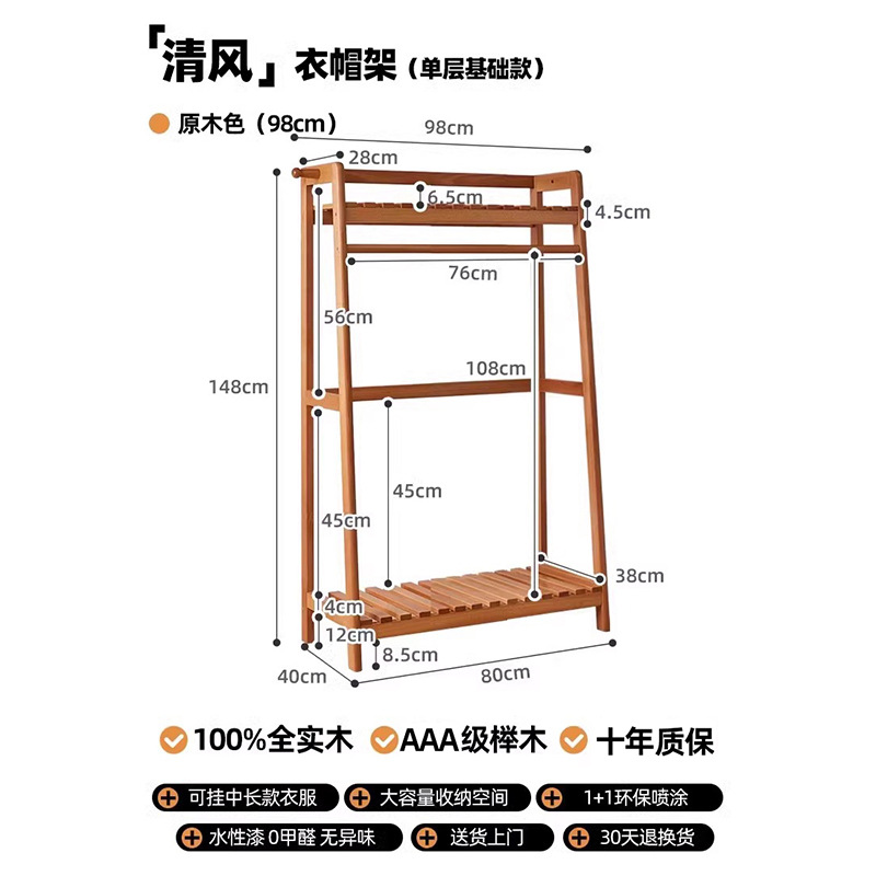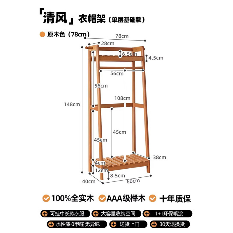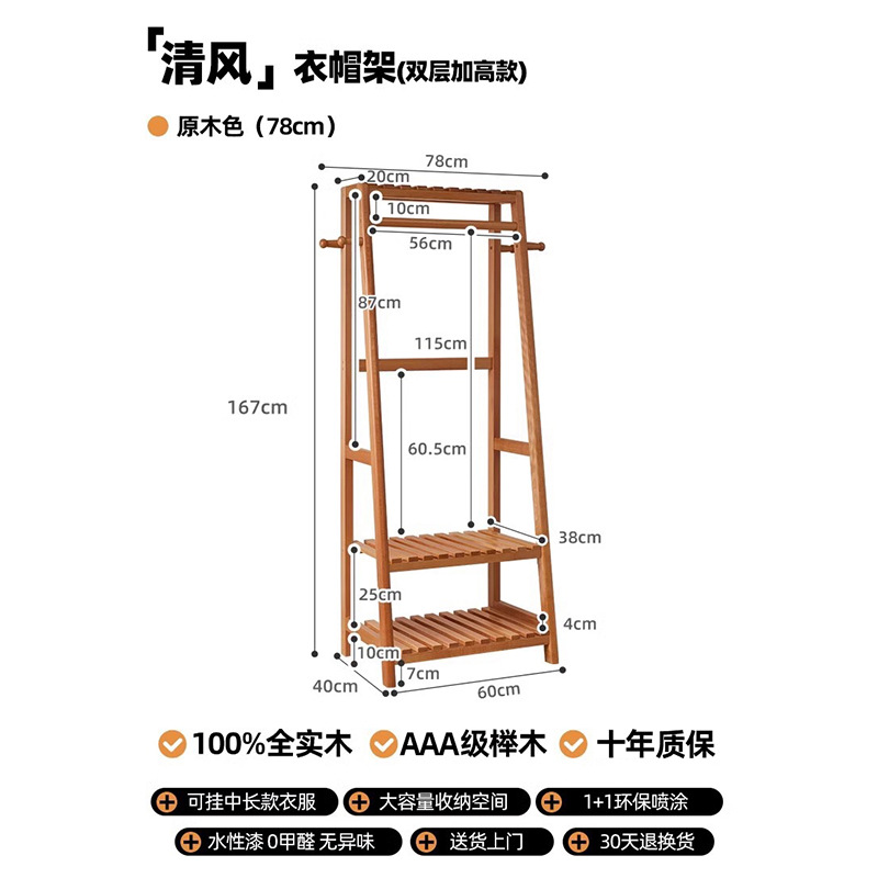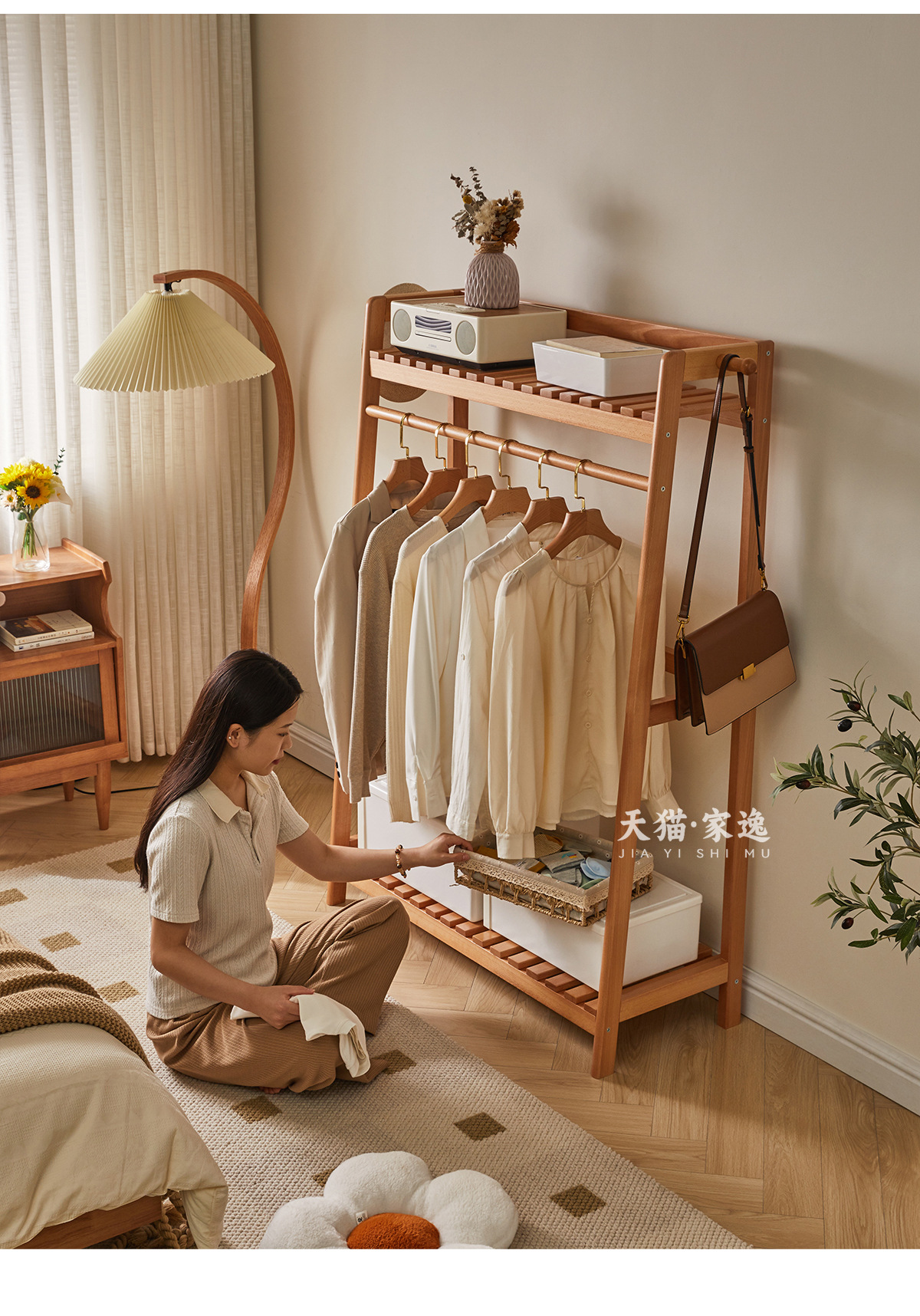 너도밤 나무 옷걸이 바닥 침실 코트 랙 솔리드 우드 룸 건조 랙 침대 옆 강하고 튼튼한 옷 랙