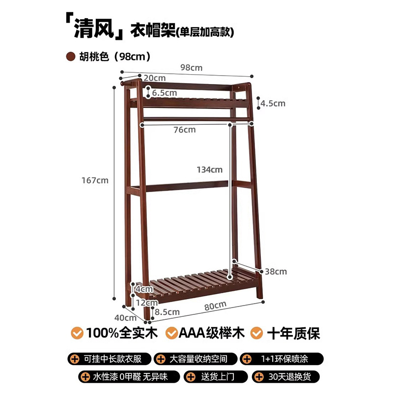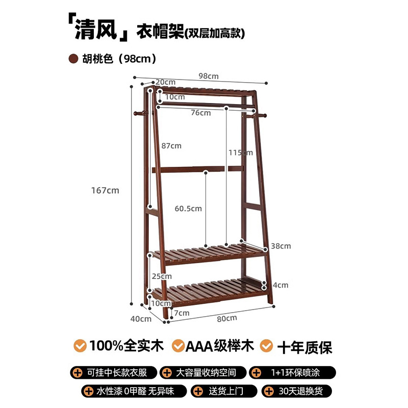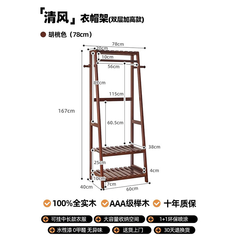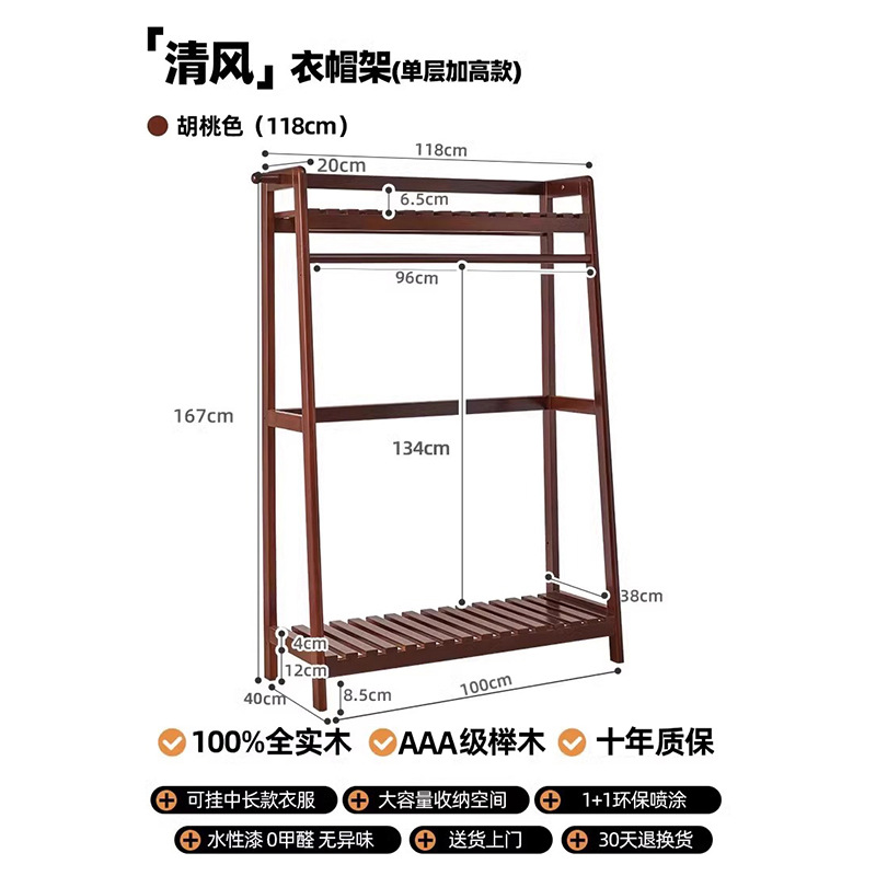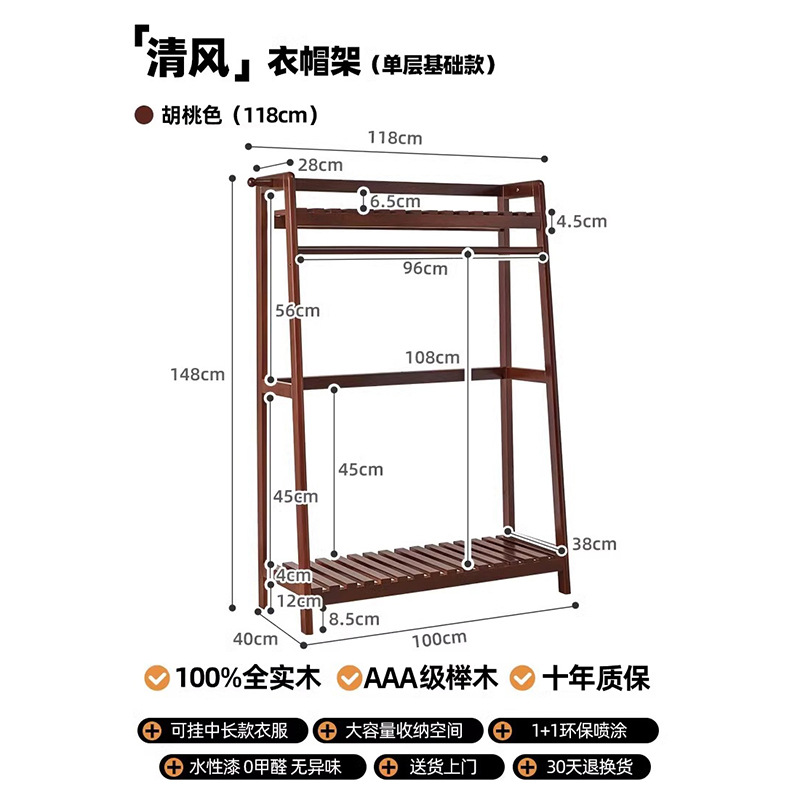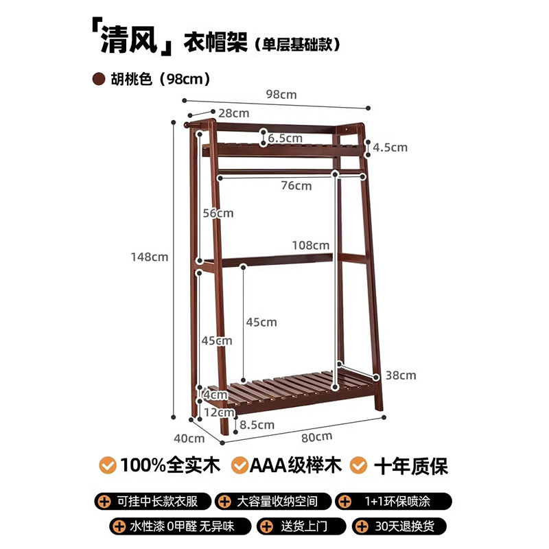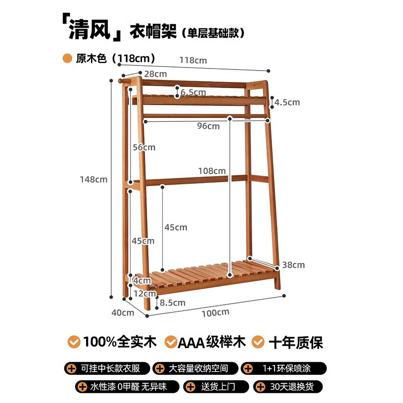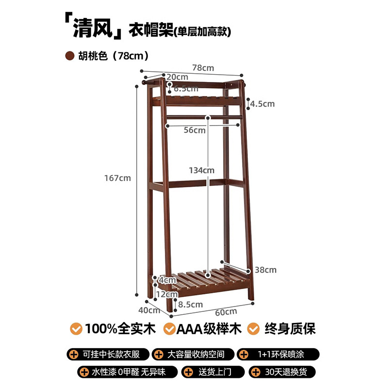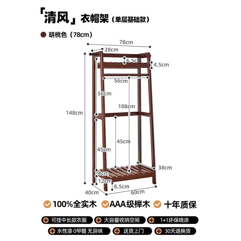 너도밤 나무 옷걸이 바닥 침실 코트 랙 솔리드 우드 룸 건조 랙 침대 옆 강하고 튼튼한 옷 랙