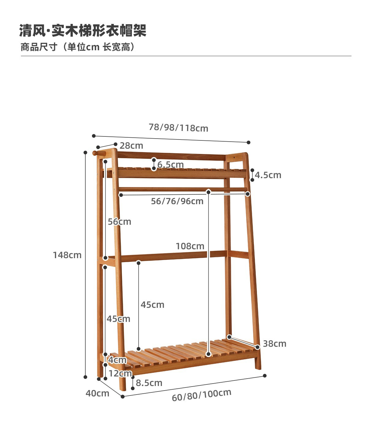 • 클래식 호두나무 사다리꼴 옷걸이 118cm [독일산 너도밤나무 원목, 배송 서비스]