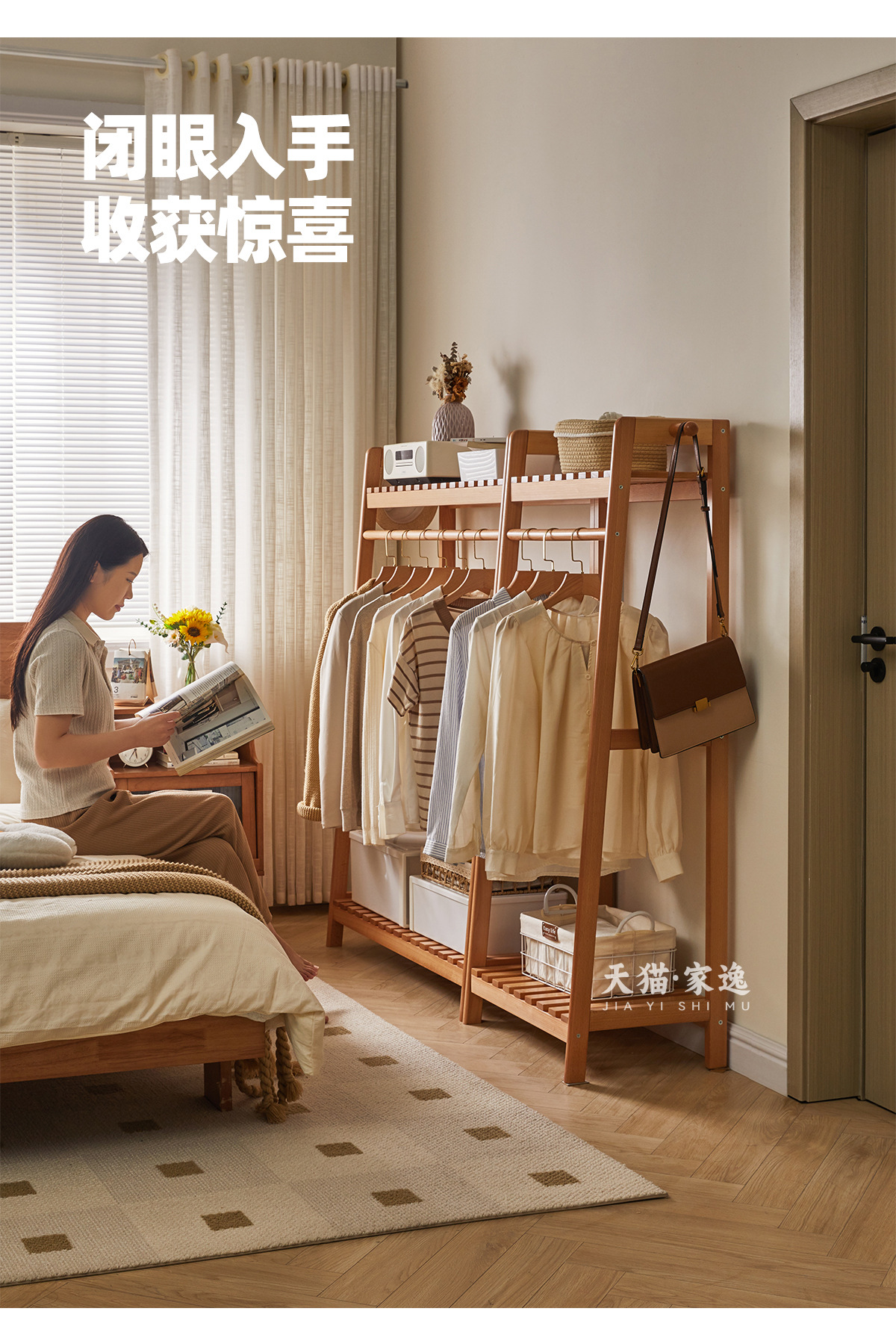 너도밤 나무 옷걸이 바닥 침실 코트 랙 솔리드 우드 룸 건조 랙 침대 옆 강하고 튼튼한 옷 랙스토어 가기