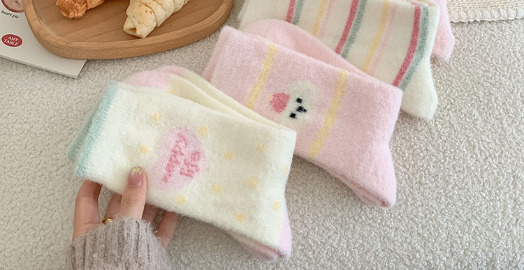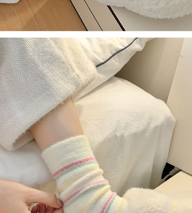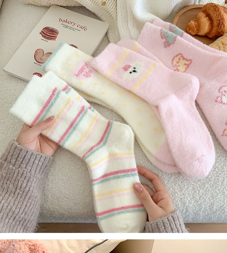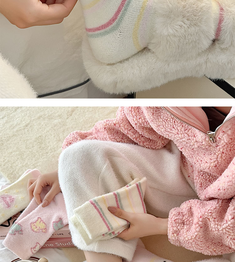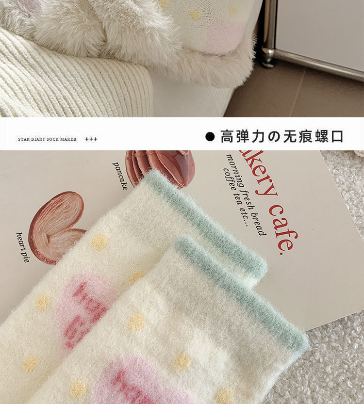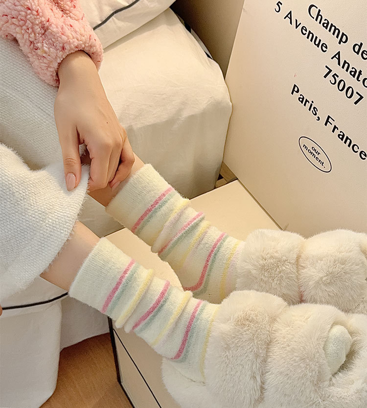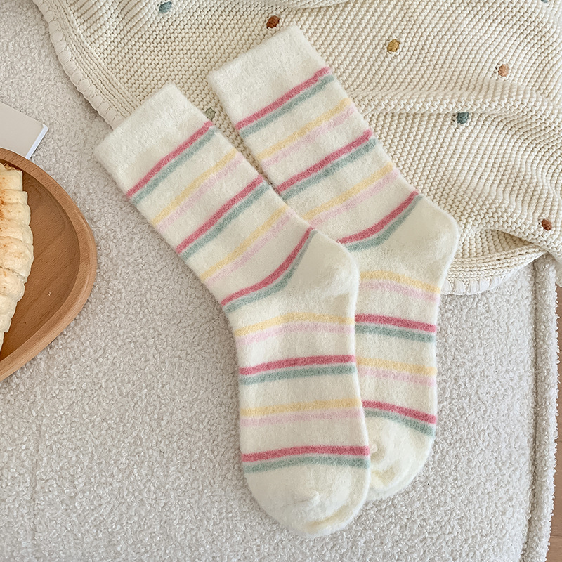 밍크 벨벳 양말 여성 스트라이프 튜브 양말 가을과 겨울 기모 두꺼운 따뜻한 일본 귀여운 달콤한 더미 양말 여성스토어 가기