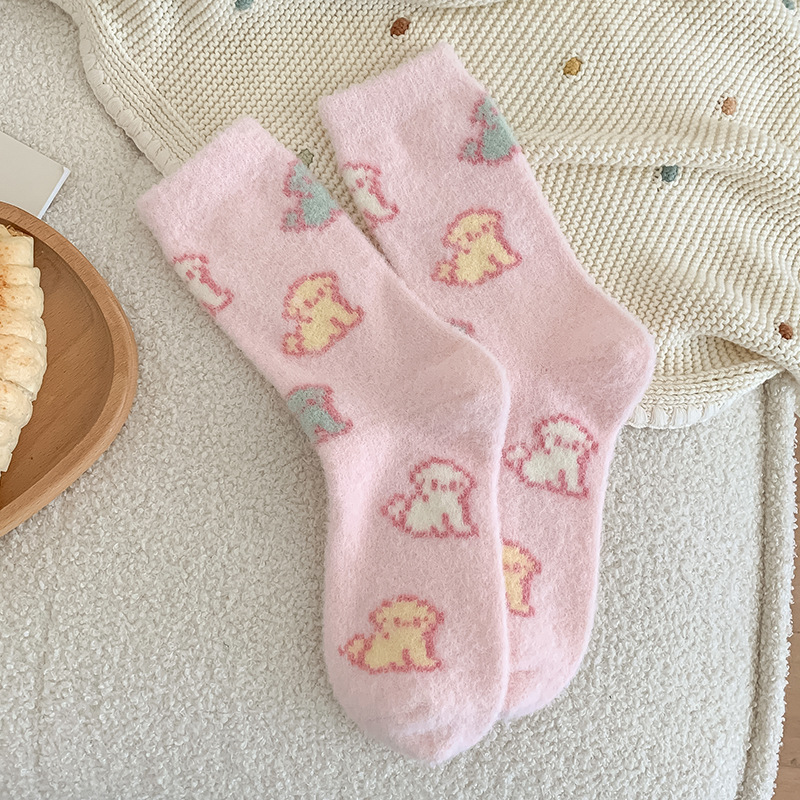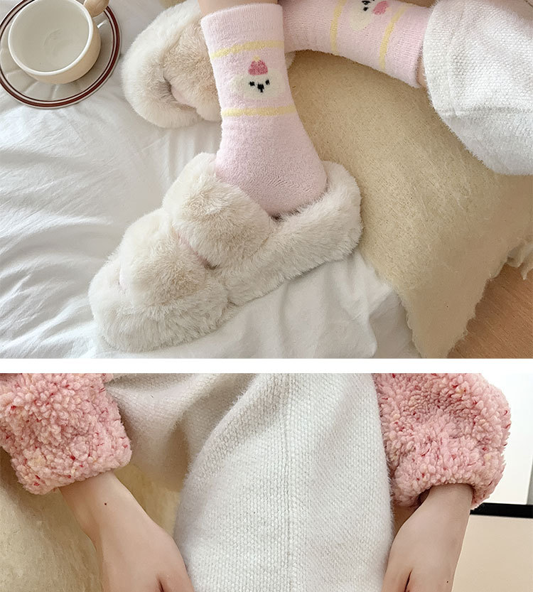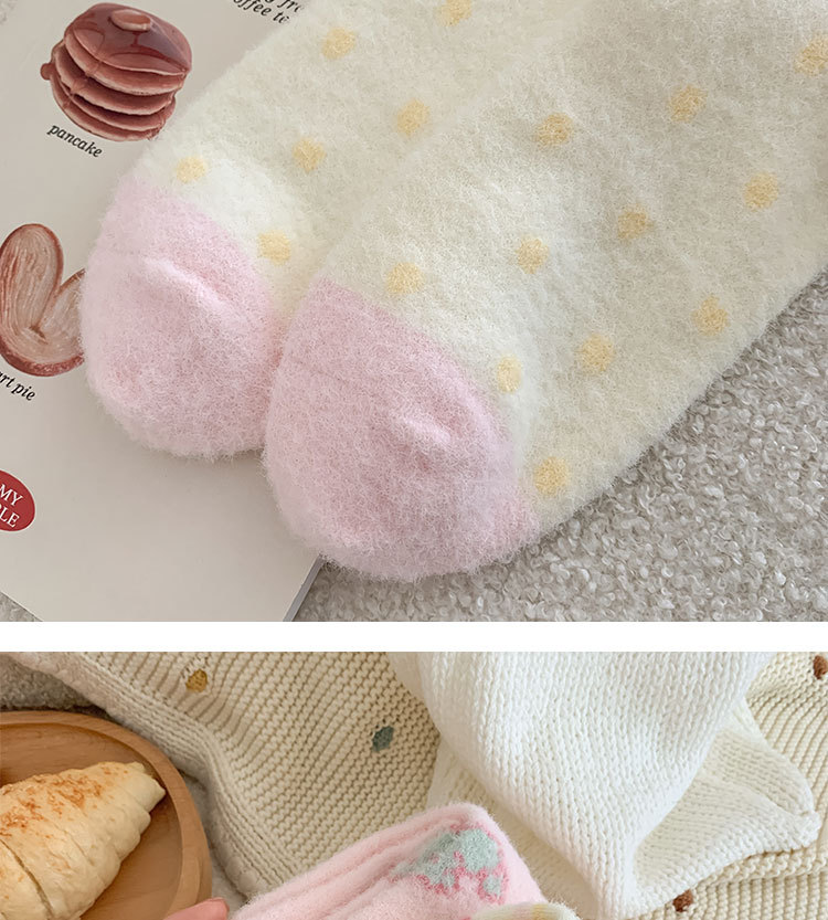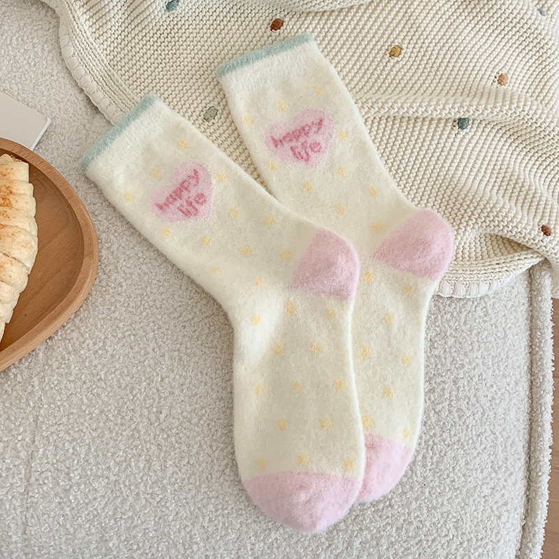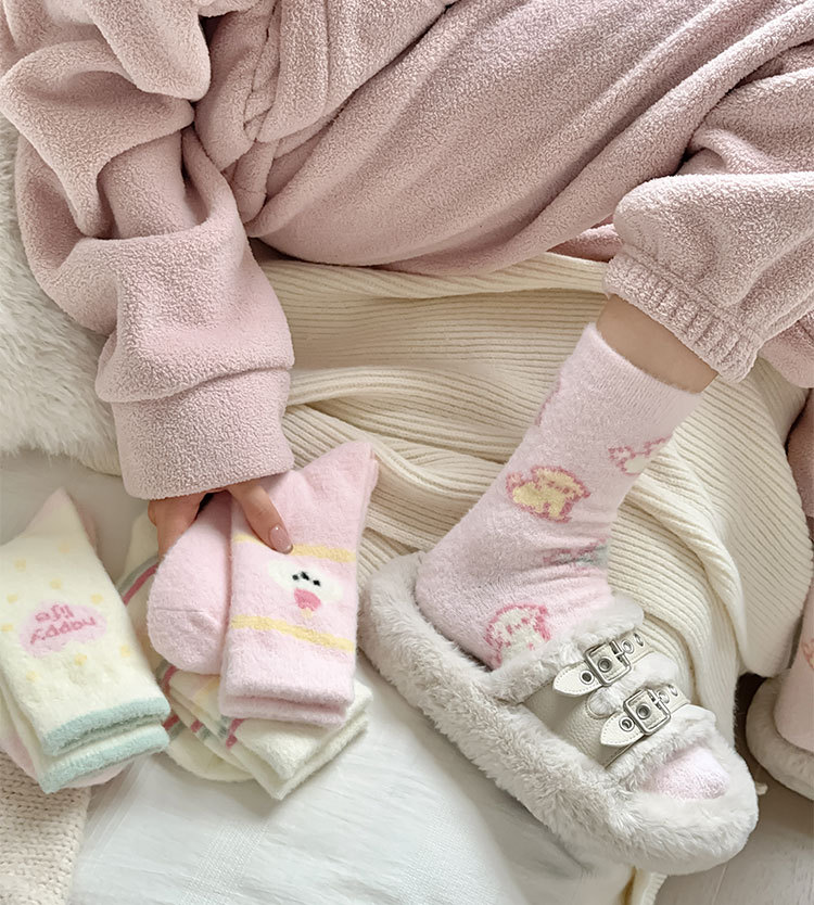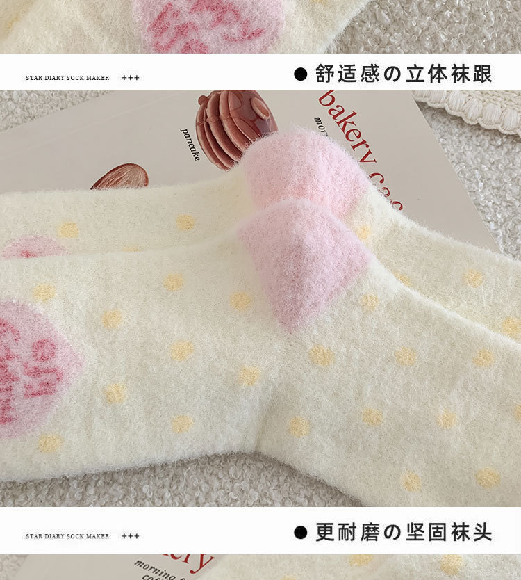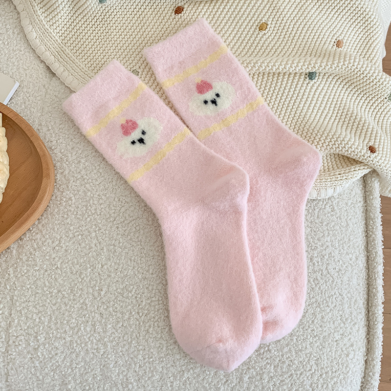 밍크 벨벳 양말 여성 스트라이프 튜브 양말 가을과 겨울 기모 두꺼운 따뜻한 일본 귀여운 달콤한 더미 양말 여성스토어 가기