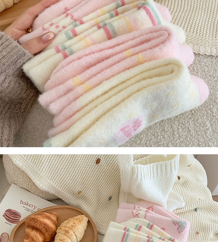밍크 벨벳 양말 여성 스트라이프 튜브 양말 가을과 겨울 기모 두꺼운 따뜻한 일본 귀여운 달콤한 더미 양말 여성