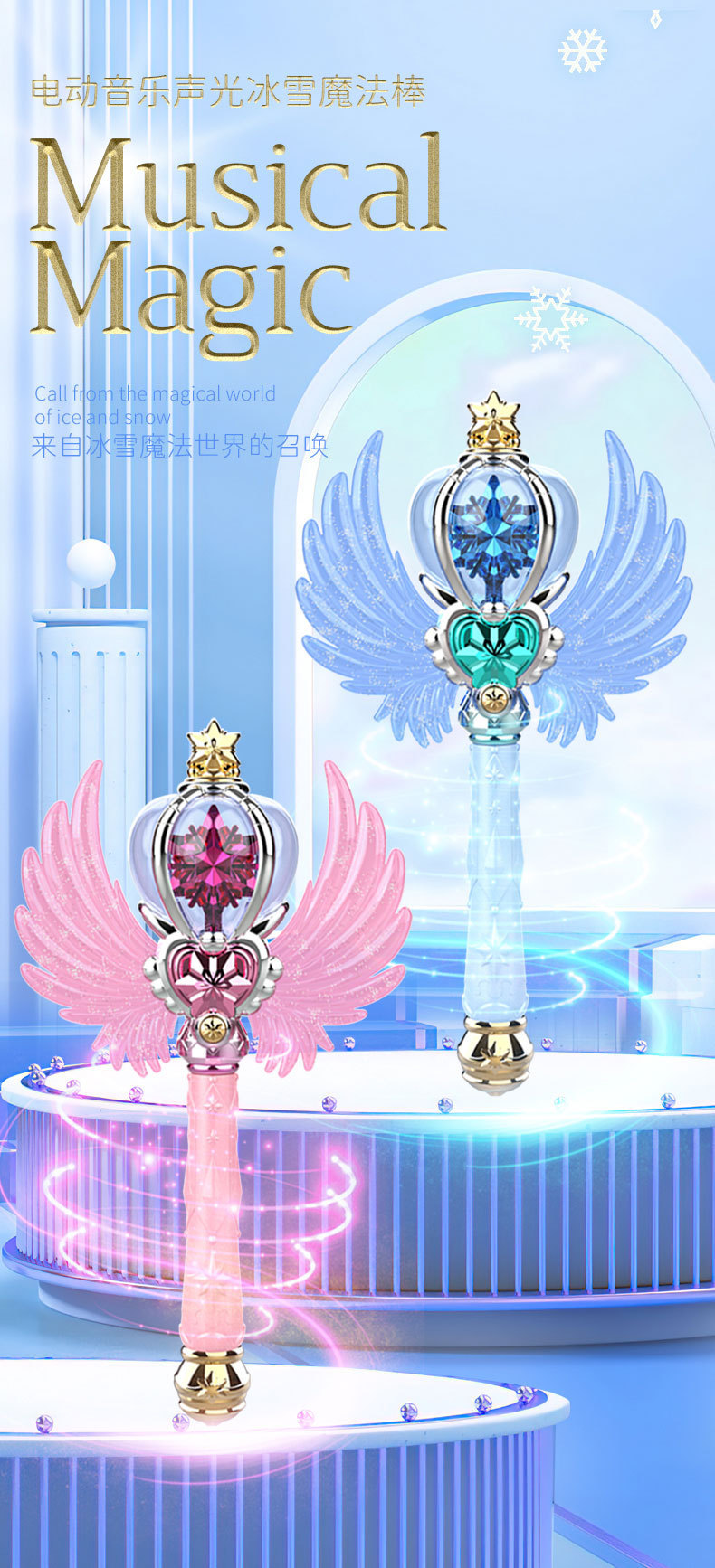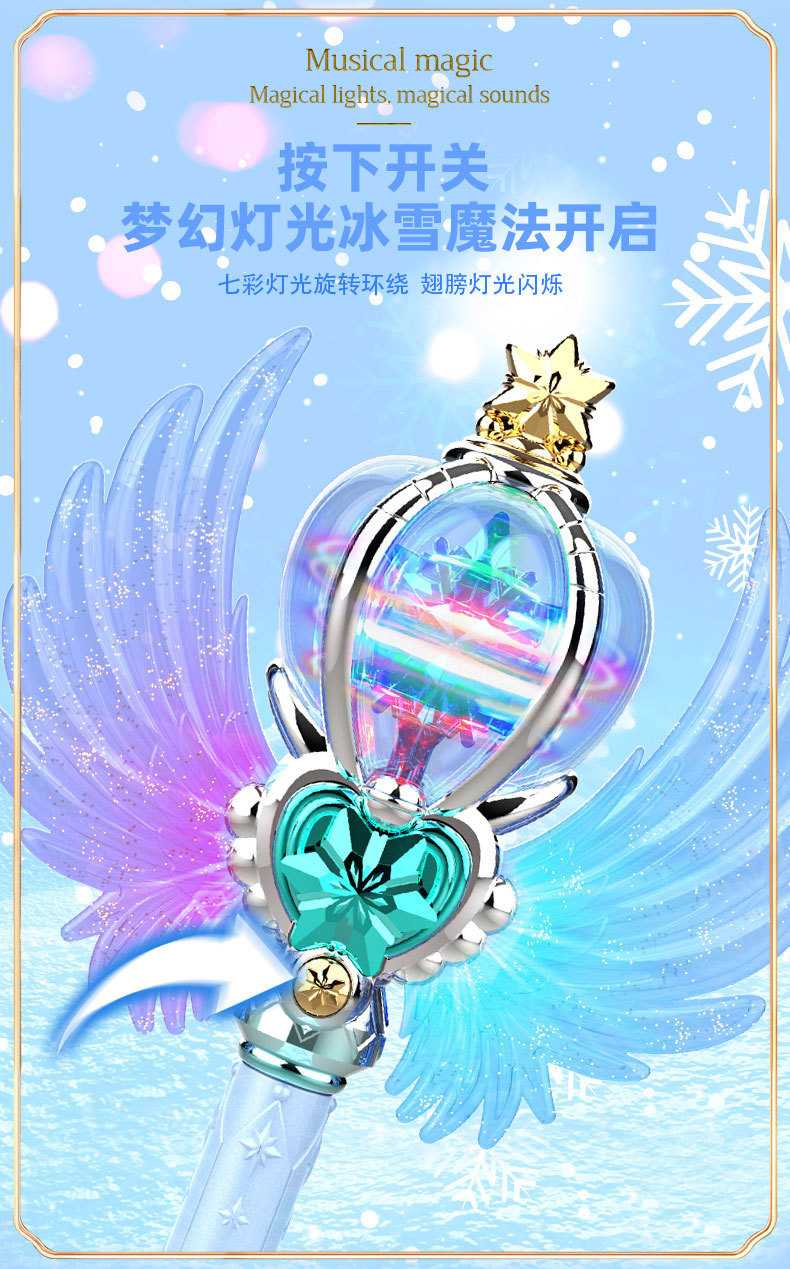 라이트 뮤직 스타 매직 스틱 얼음과 스노우 핸드 헬드 빛나는 요정 스틱 전기 라이트 셉터 소녀 어린이 장난감