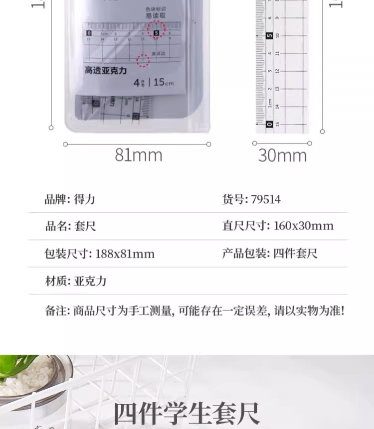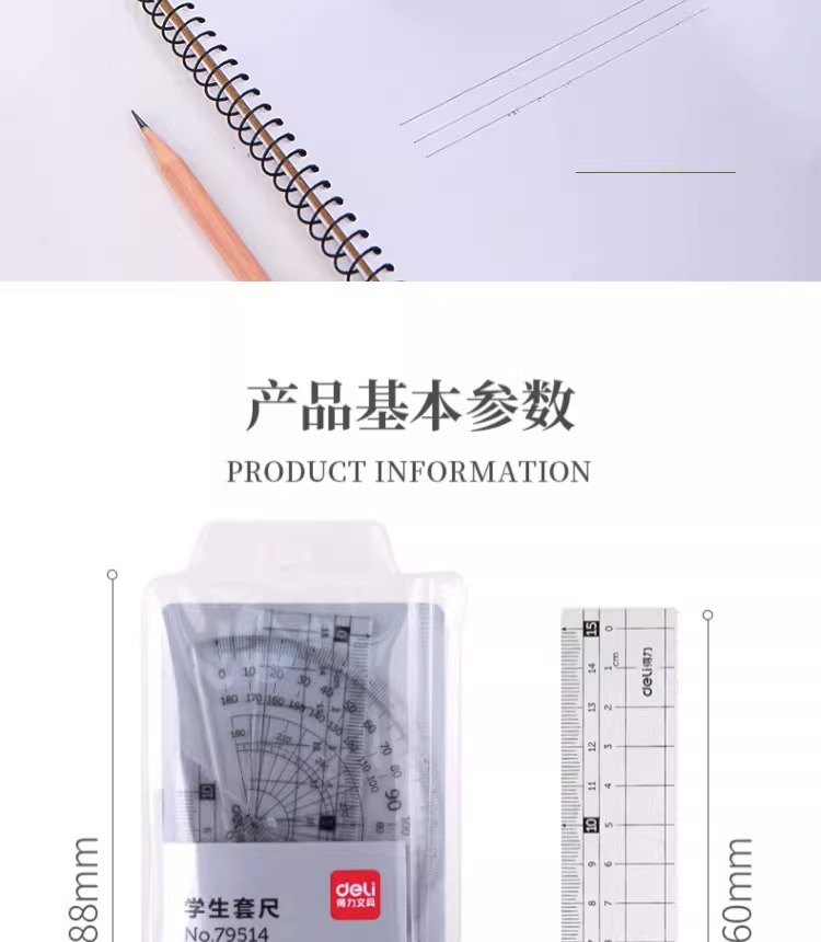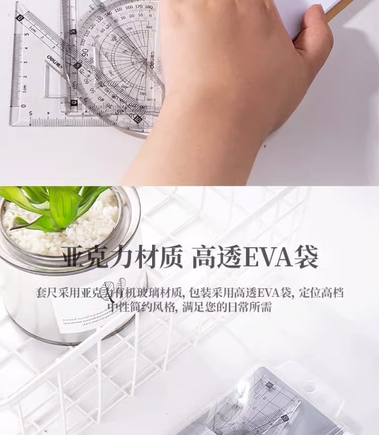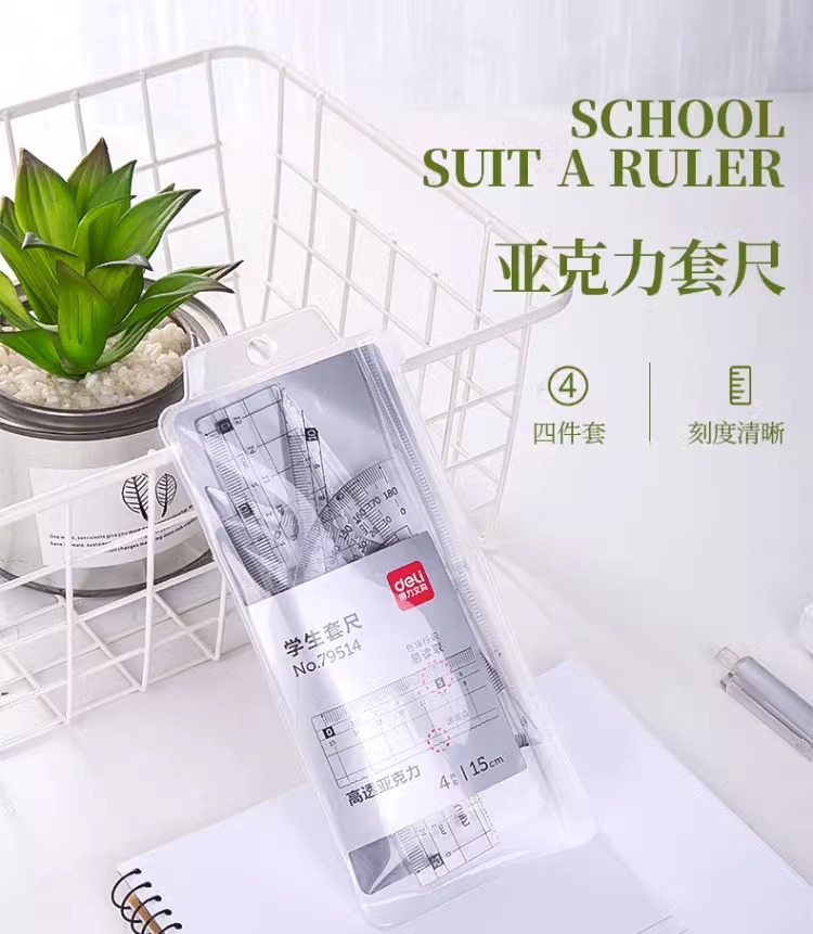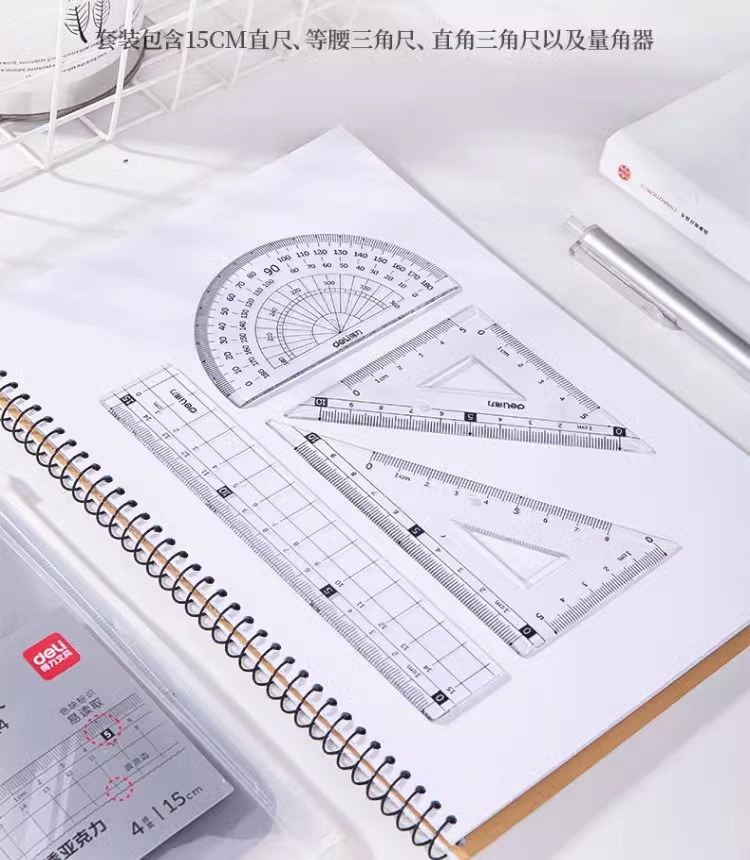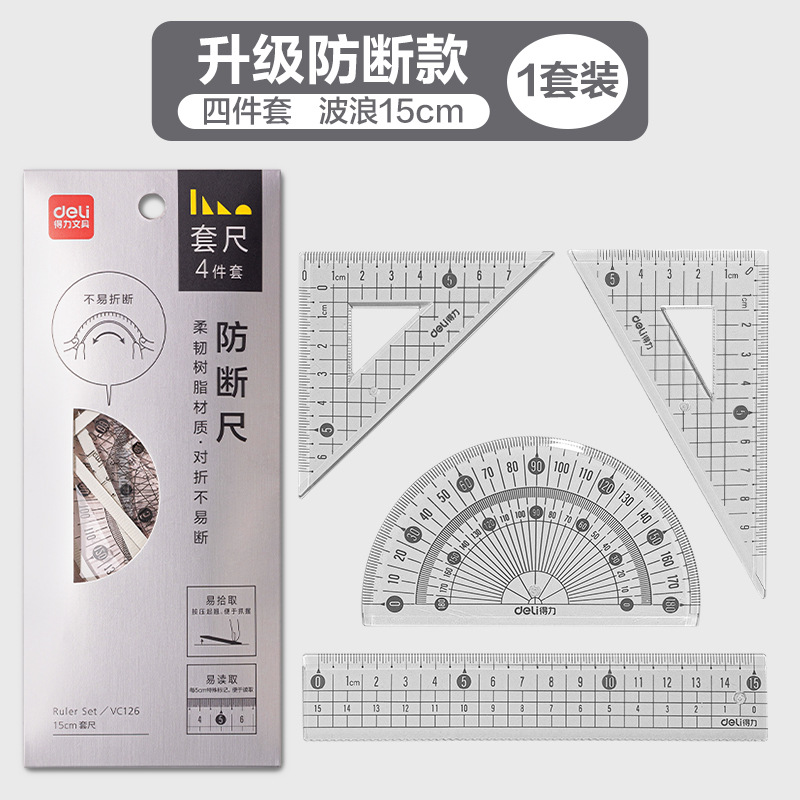 델리 79514 아크릴 세트 통치자 15cm 학생 시험 그림 세트 통치자 문구 학생 세트 통치자스토어 가기