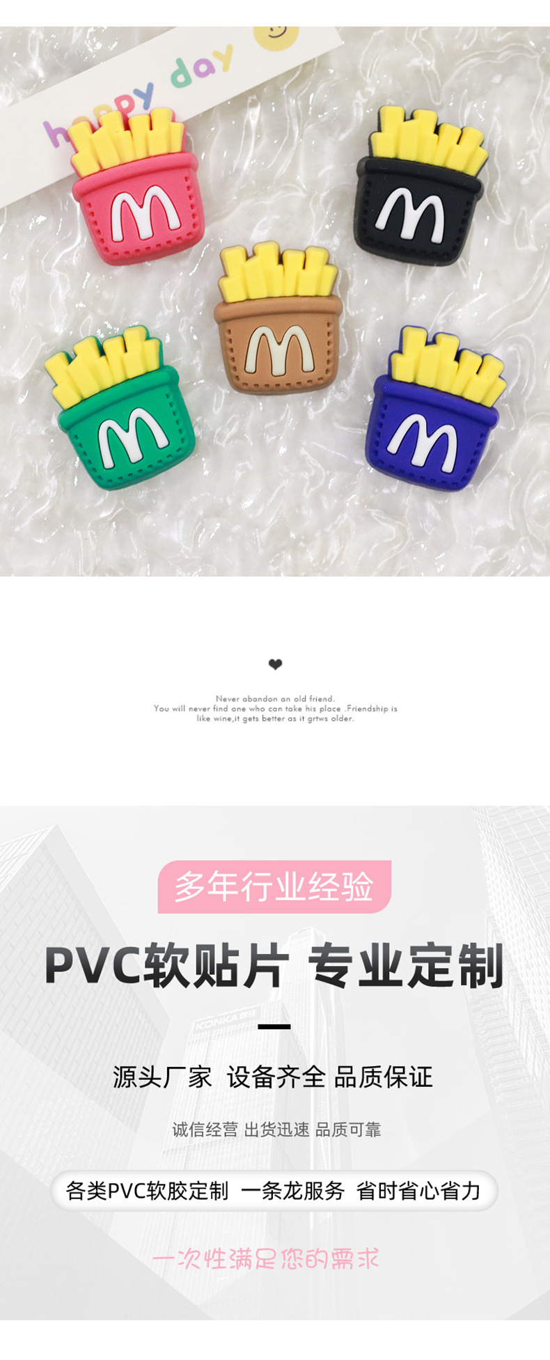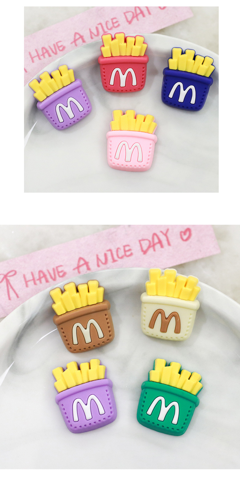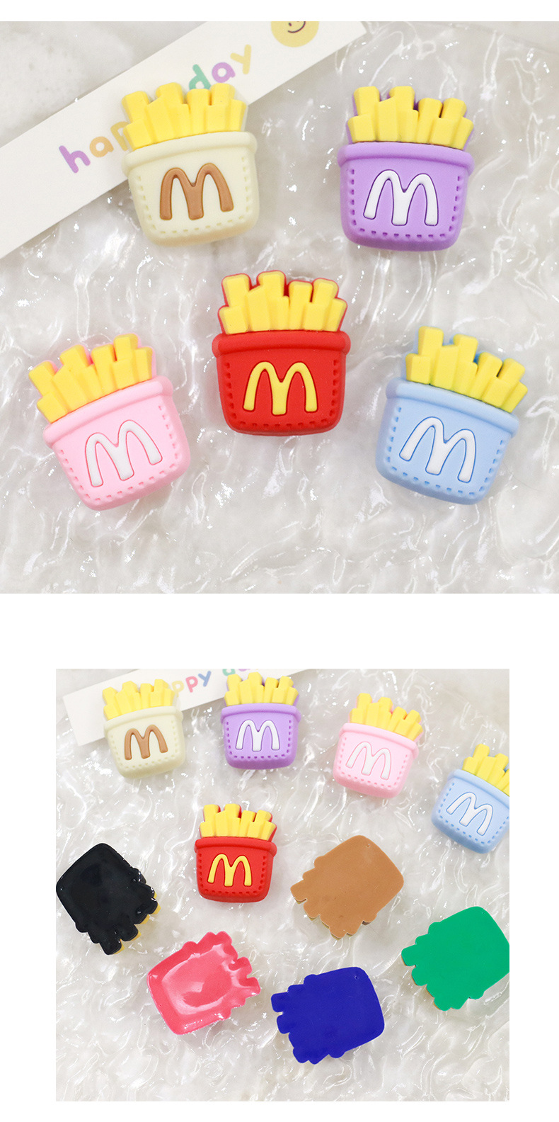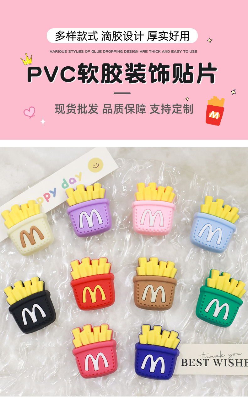 시뮬레이션 식품 및 플레이 M 프렌치 프라이 PVC 소프트 접착 패치 액세서리 휴대 전화 케이스 구멍 신발 코튼 신발 버클 컵 스티커