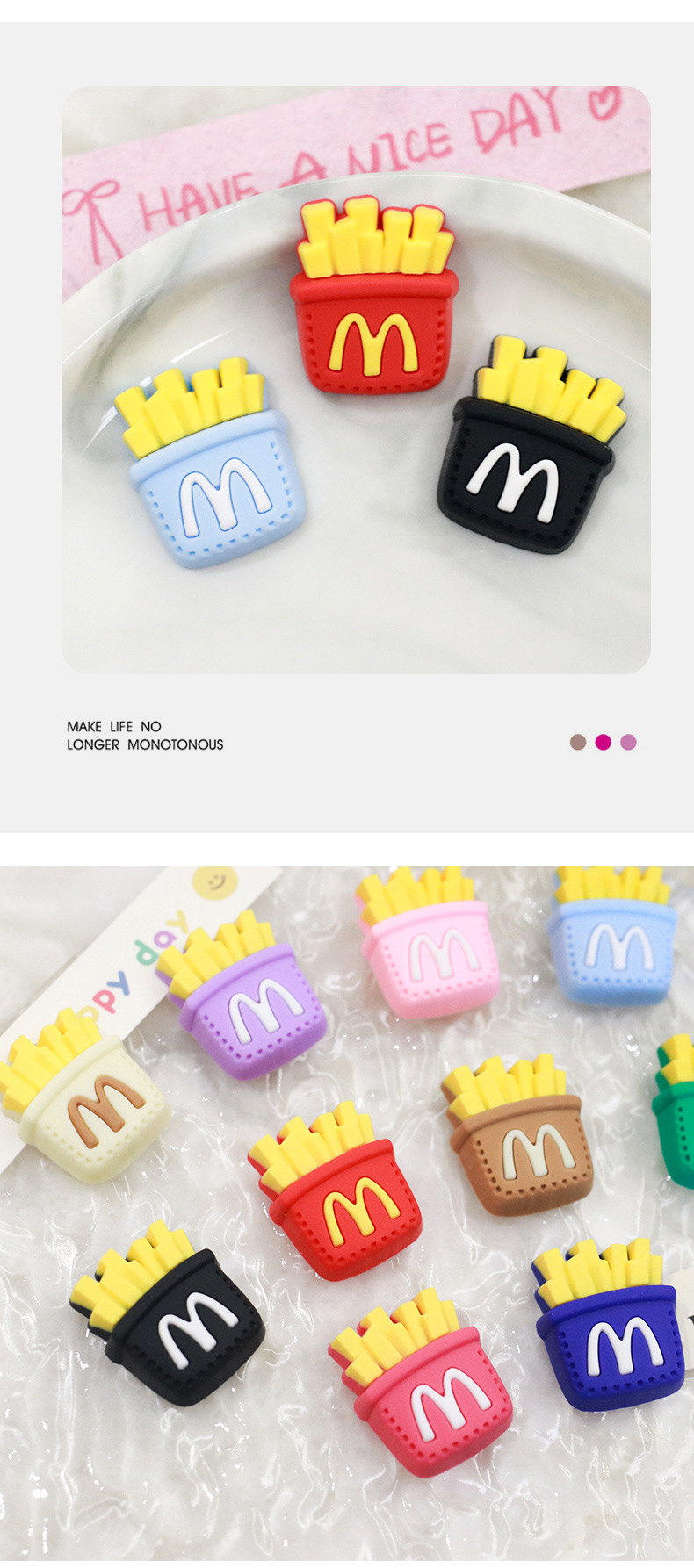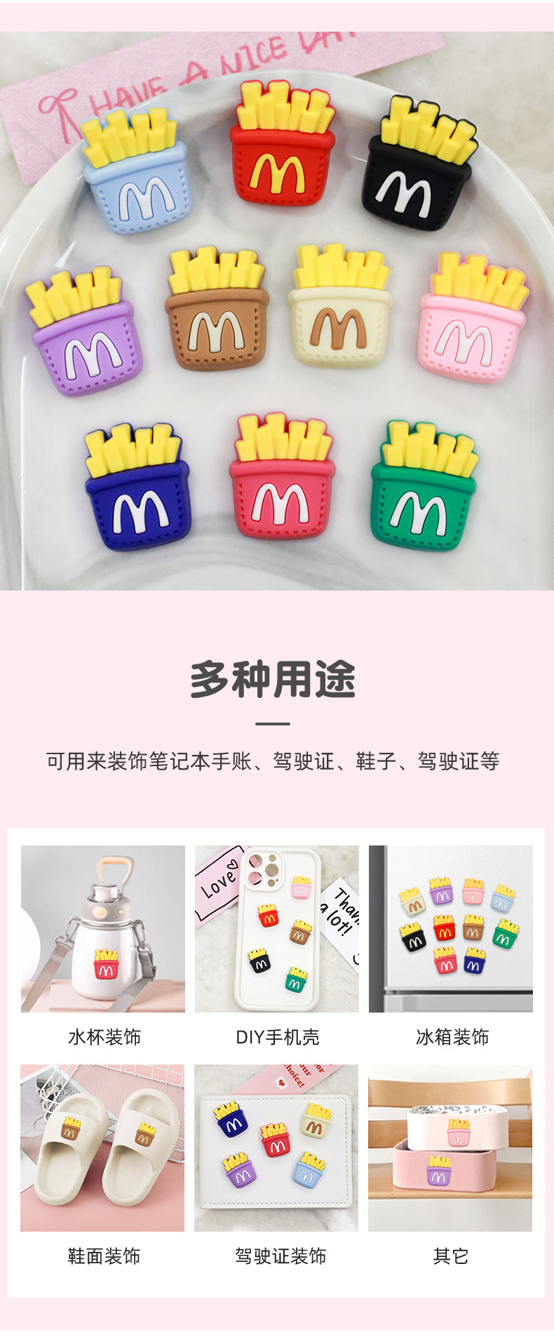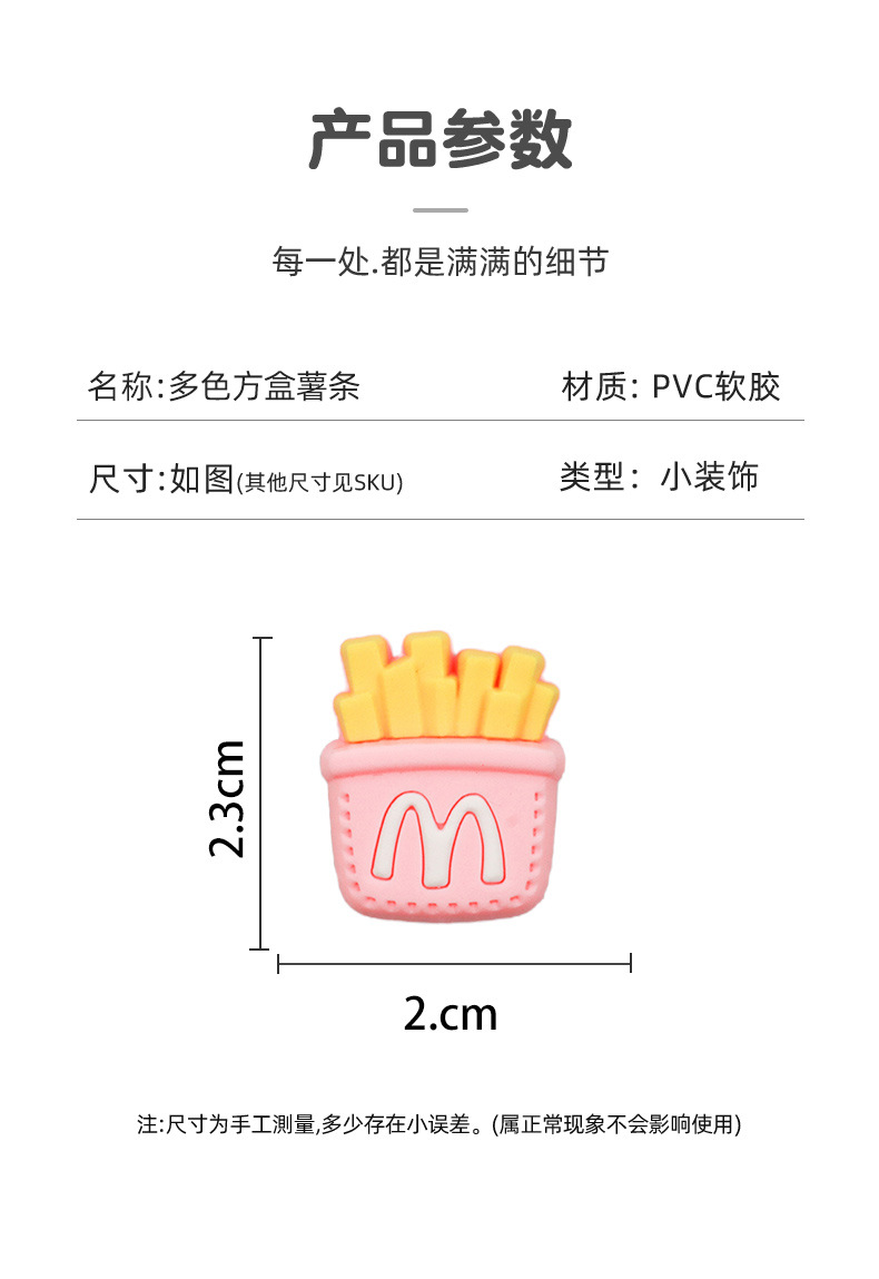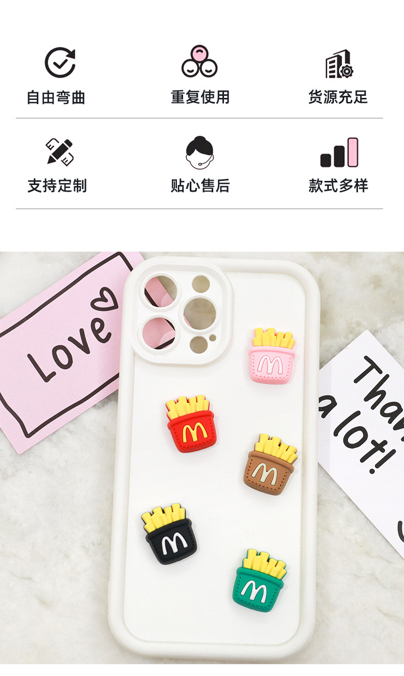 시뮬레이션 식품 및 플레이 M 프렌치 프라이 PVC 소프트 접착 패치 액세서리 휴대 전화 케이스 구멍 신발 코튼 신발 버클 컵 스티커