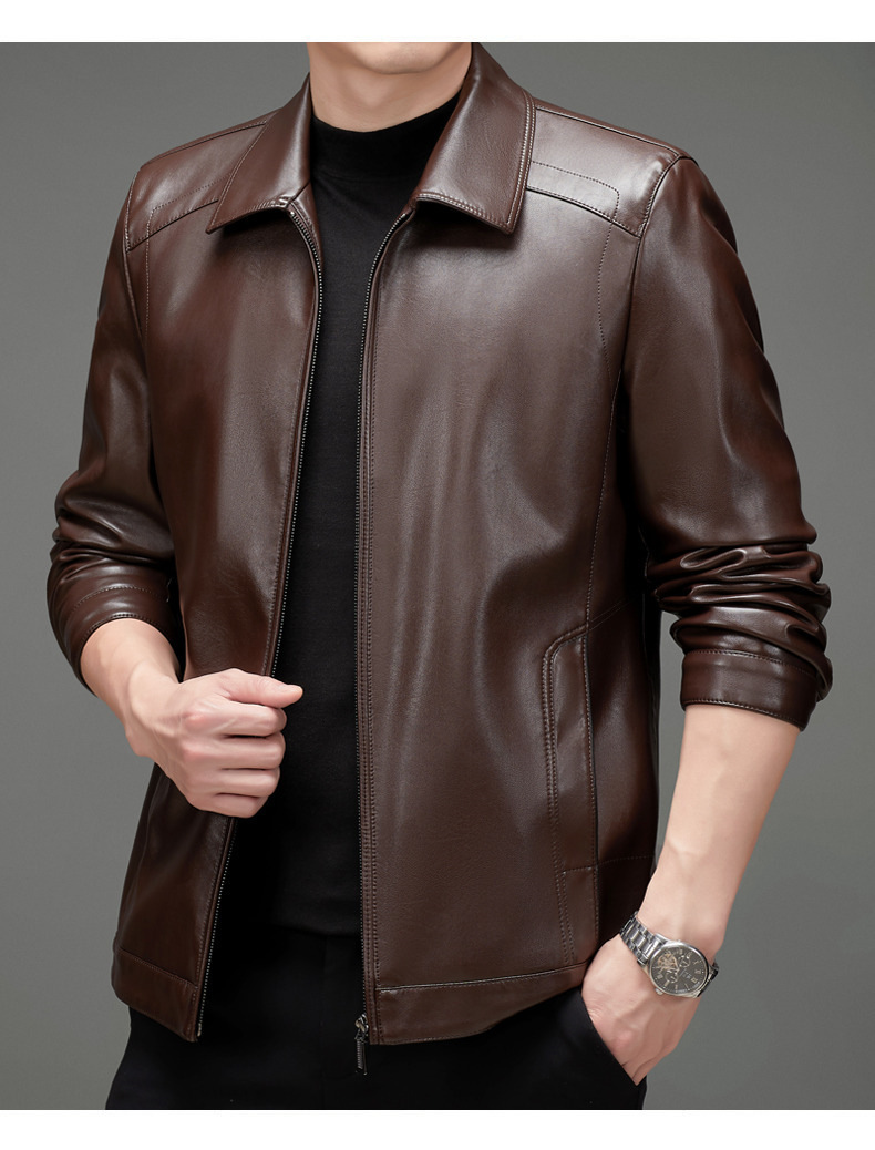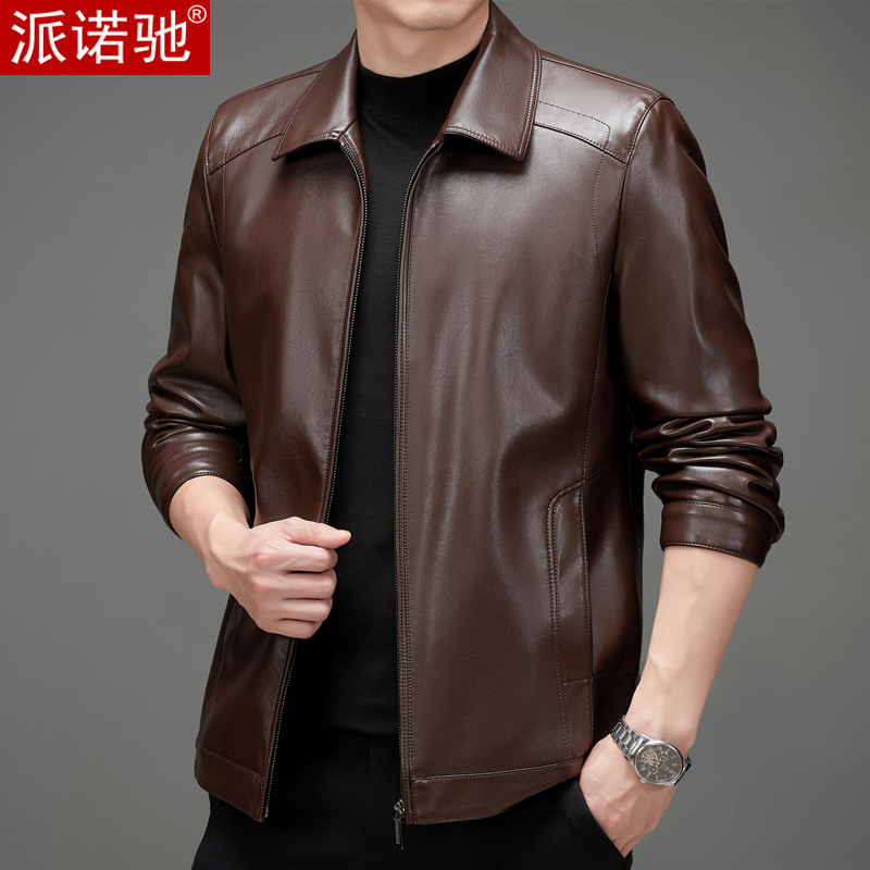 코트 재킷 가죽 자켓 중년 의류 봄과 가을 느슨한 새 남자 아빠 중년 가죽 캐주얼 의류스토어 가기