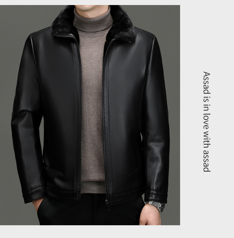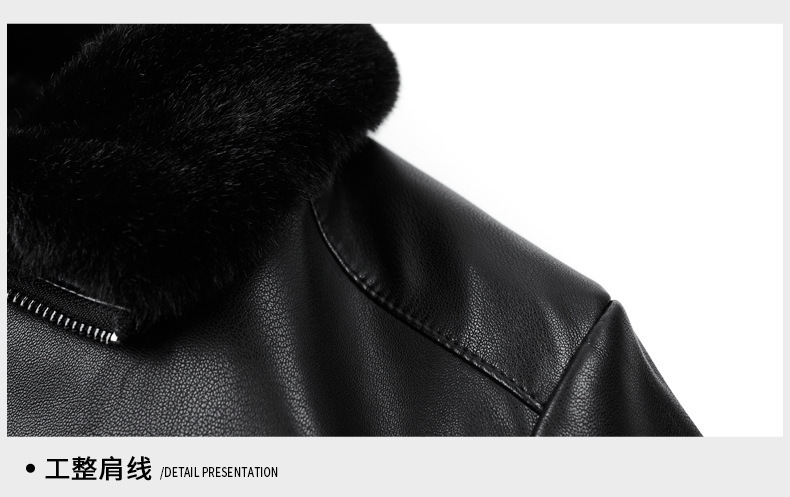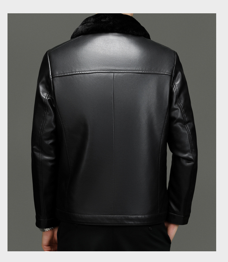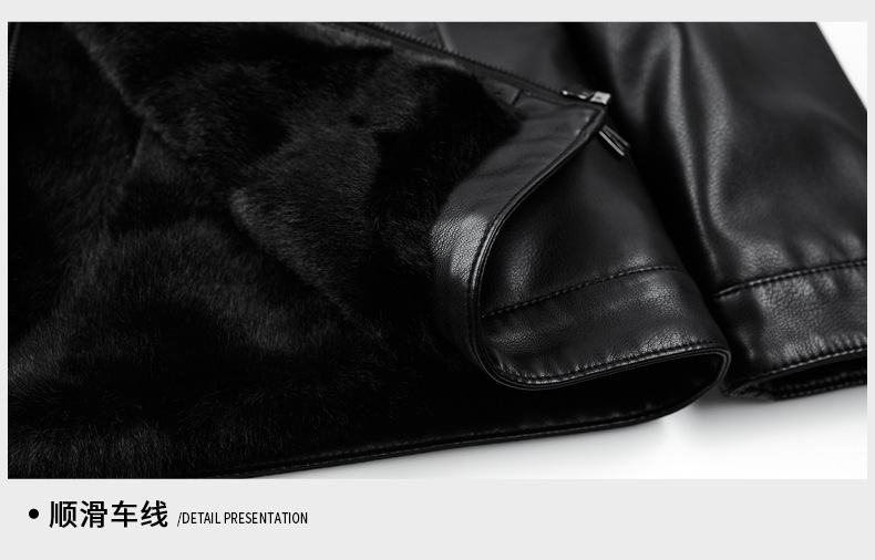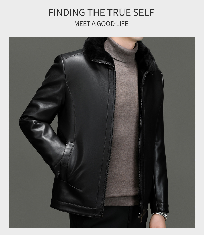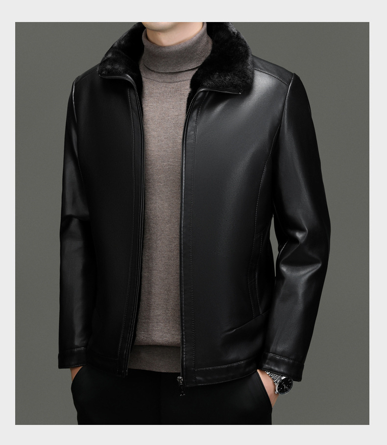 • 블랙 라펠 가죽 재킷 + 모피 칼라 - 벨벳과 두꺼운 스타일