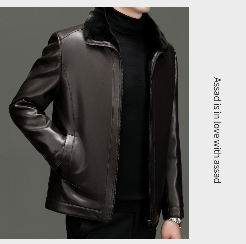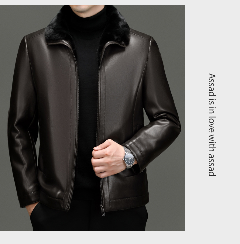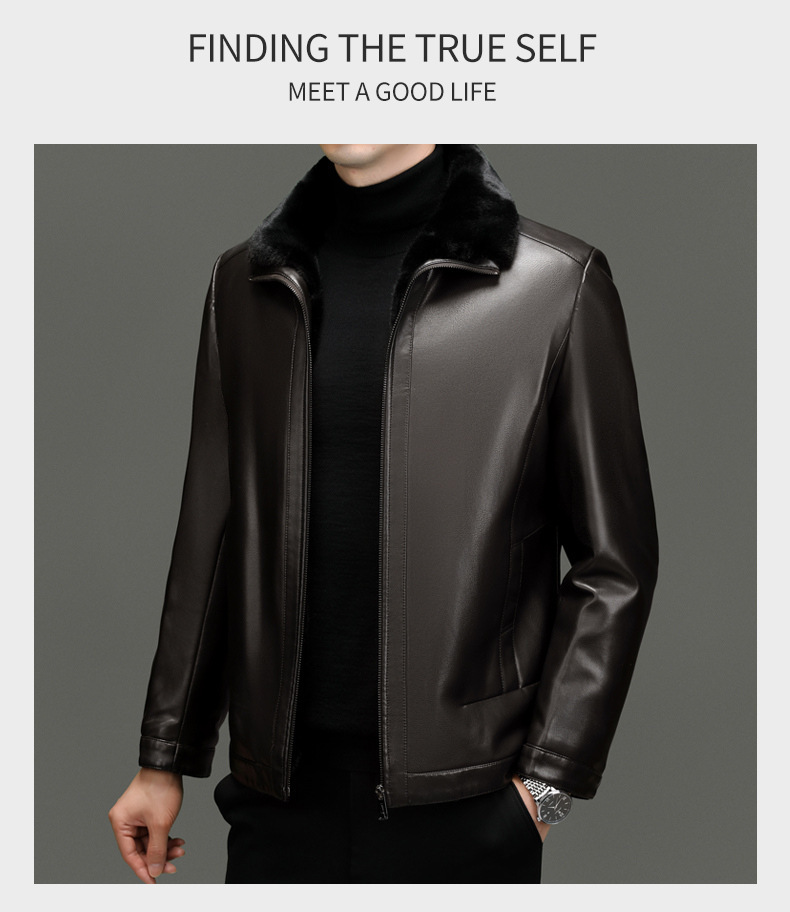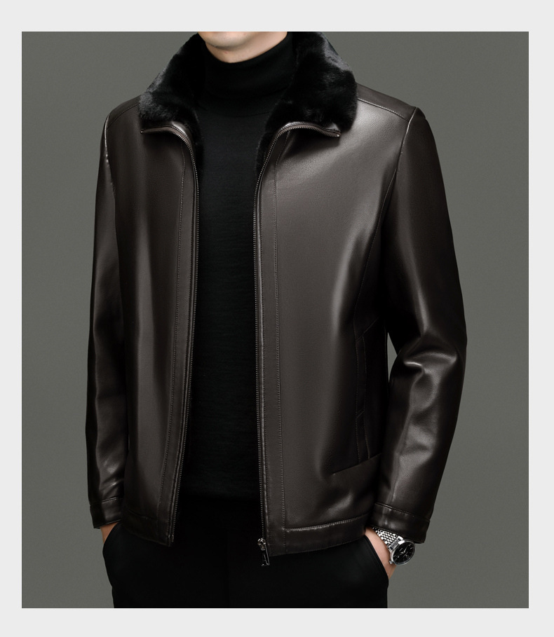 • 브라운 라펠 가죽 재킷 + 모피 칼라 - 벨벳과 두꺼운 스타일