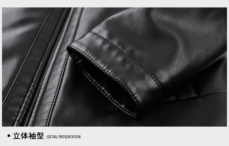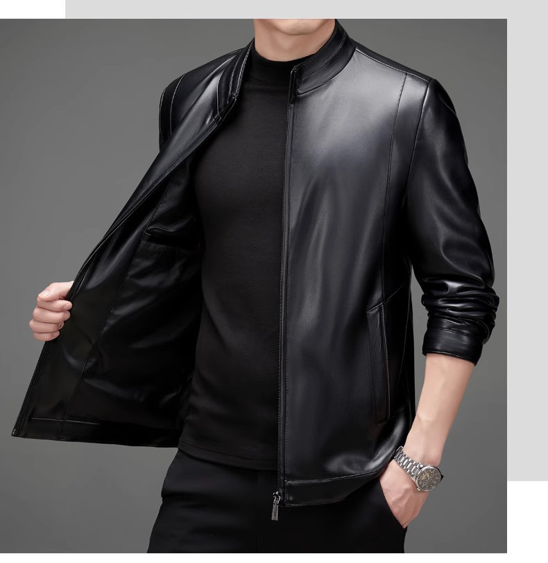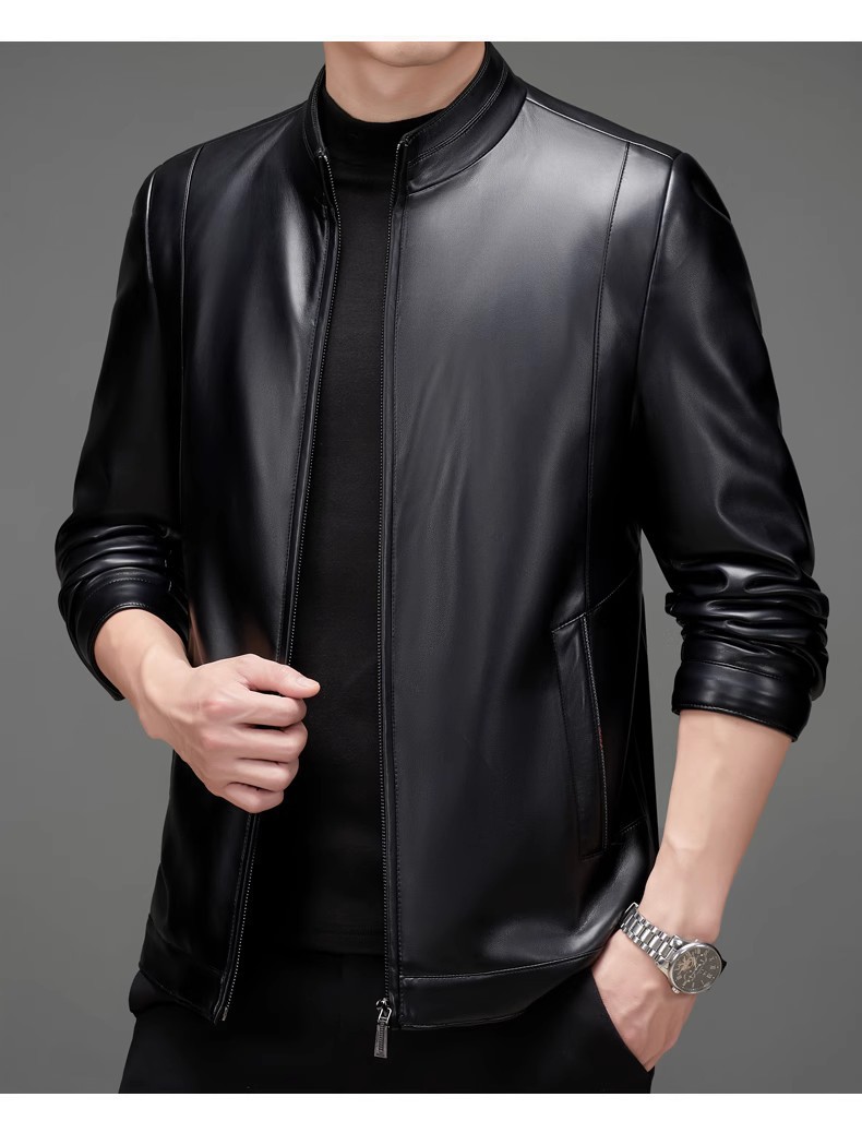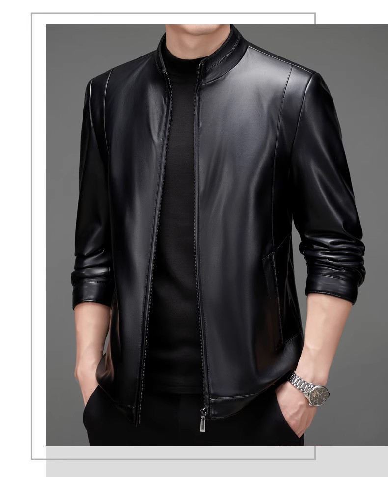 • 검정색 스탠드 칼라 가죽 재킷 - 기모 안감